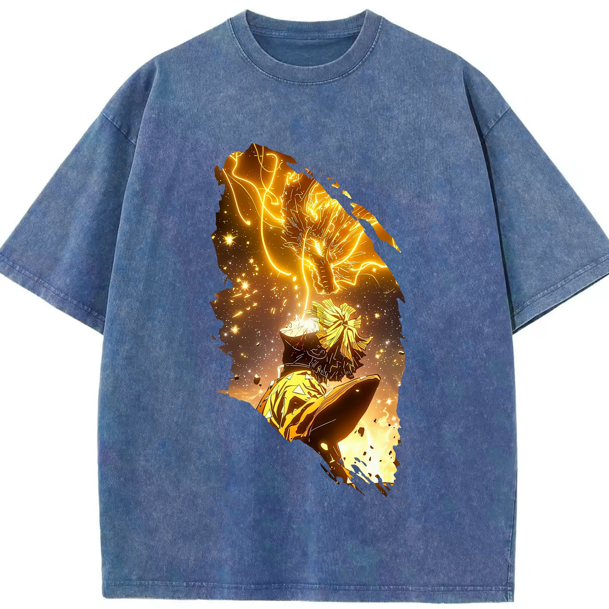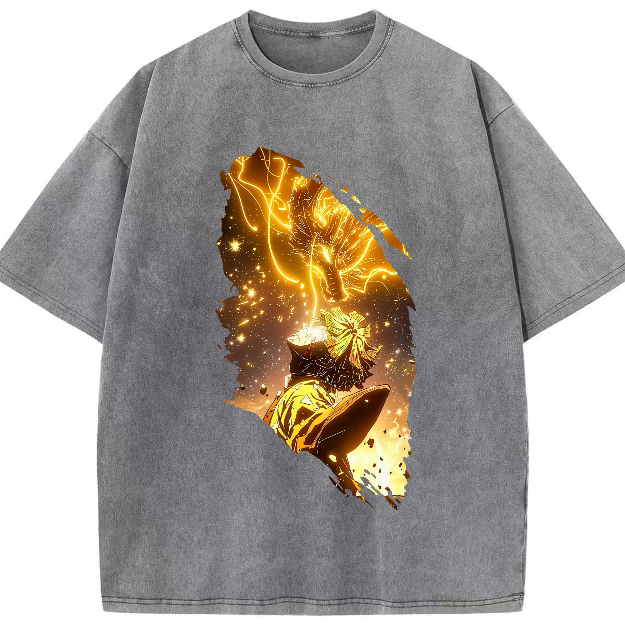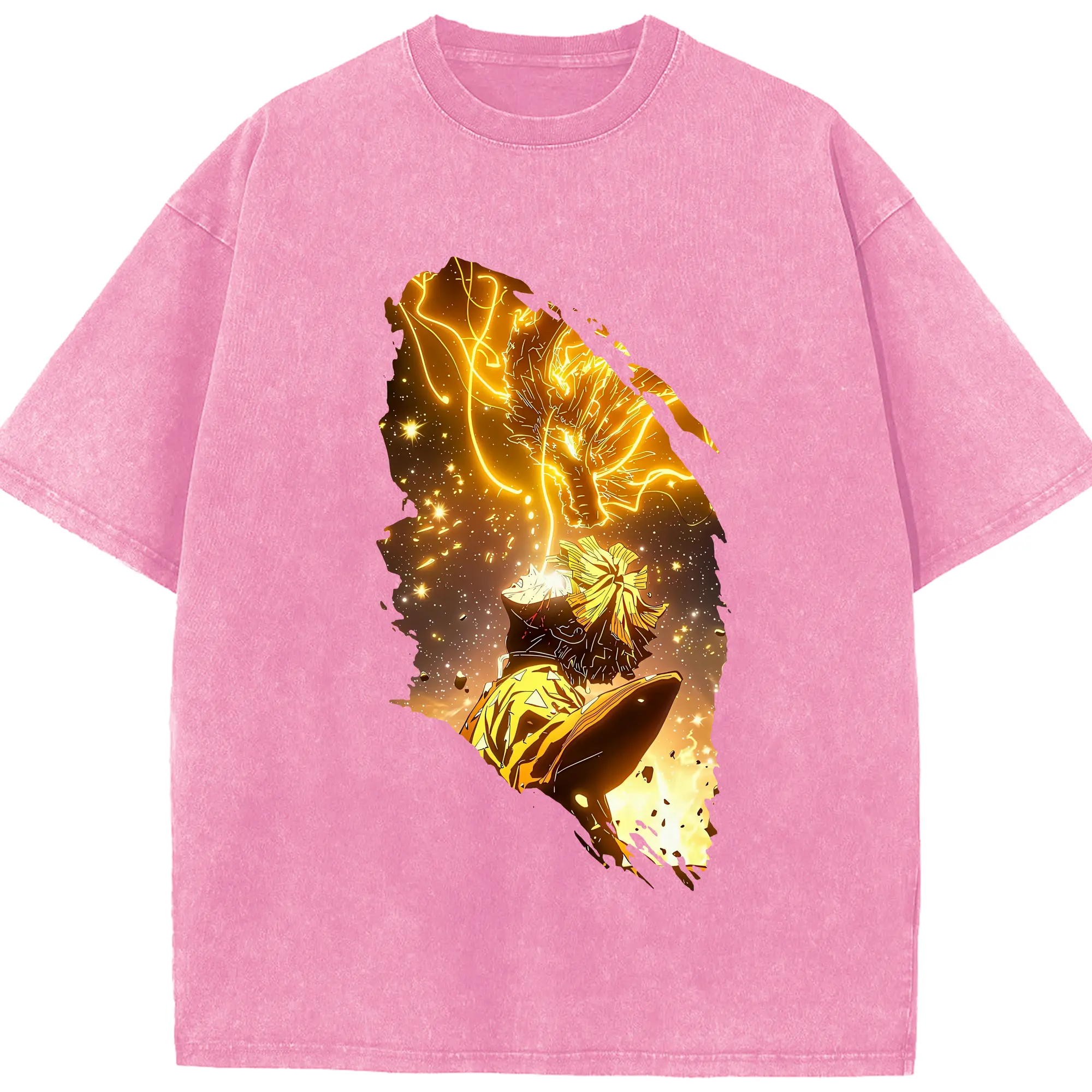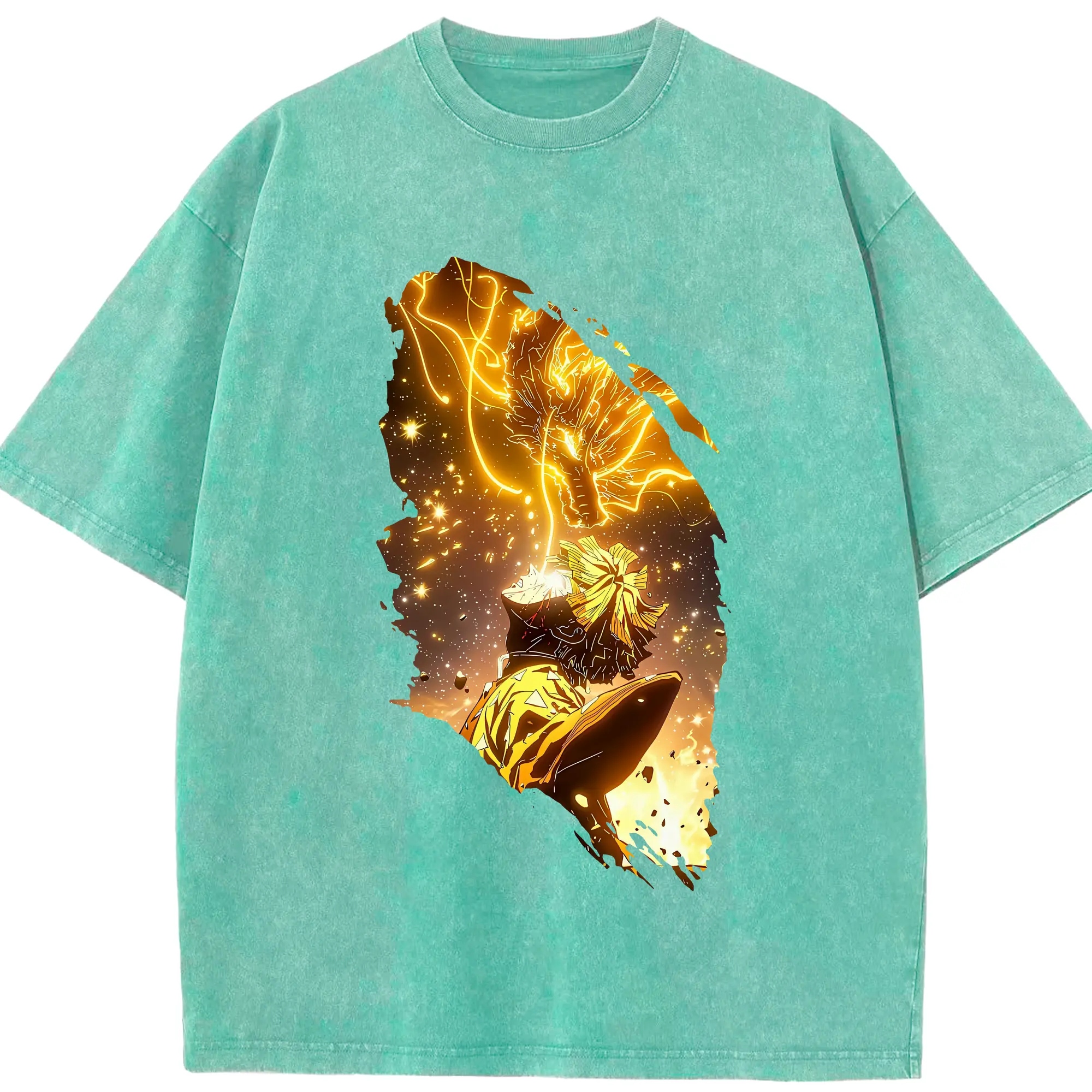 鬼滅の刃 グッズ,我妻 善逸 - 綿100% 半袖Tシャツ ・ フロントプリント ・ 快適 通気性 ・ 日常使い 散歩 スポーツ用