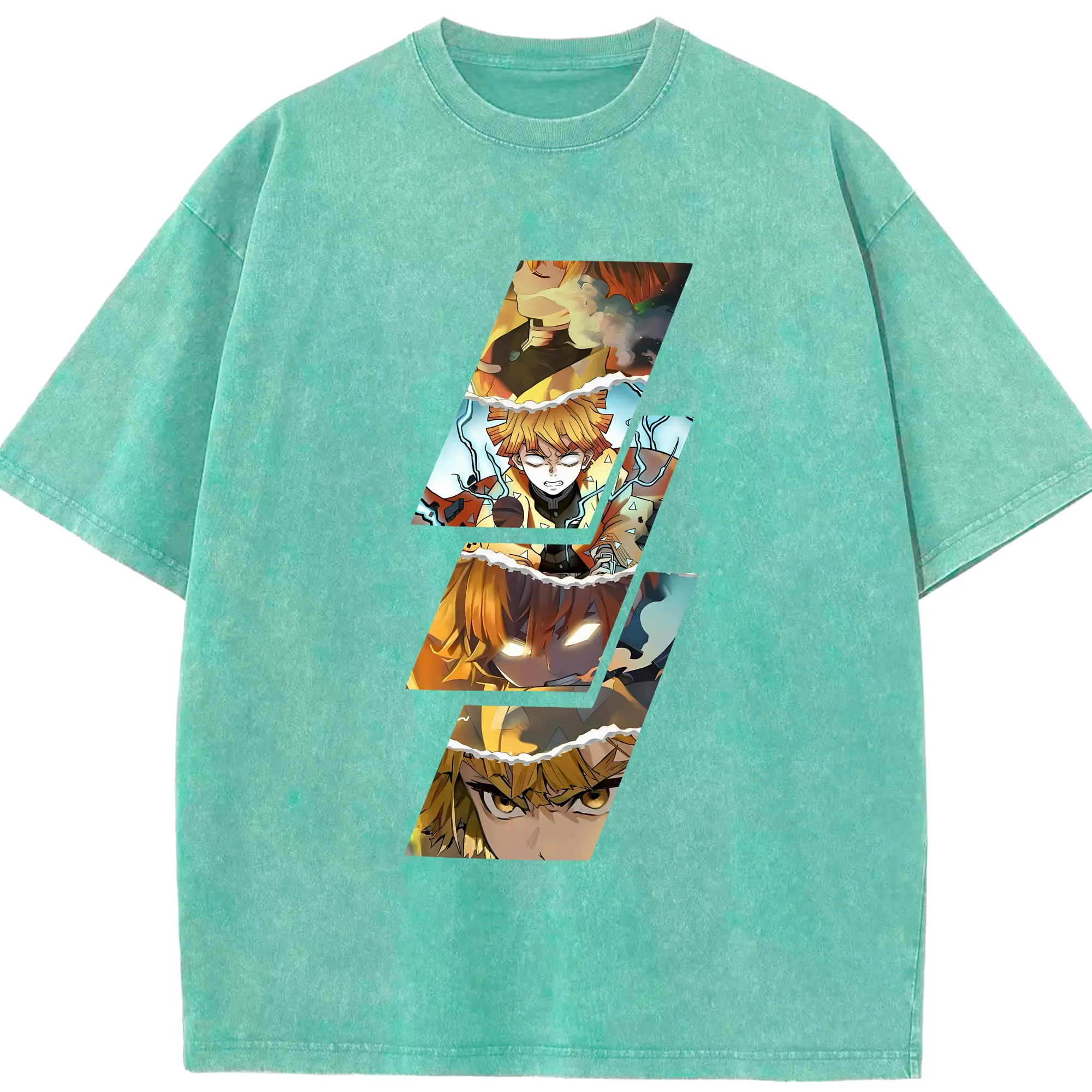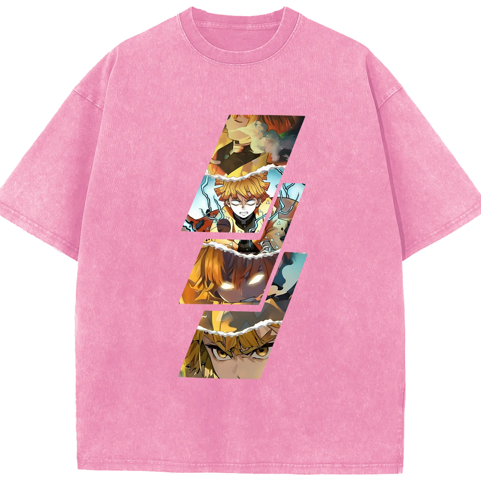 鬼滅の刃 グッズ,我妻 善逸 - 綿100% 半袖Tシャツ ・ フロントプリント ・ 快適 通気性 ・ 日常使い 散歩 スポーツ用