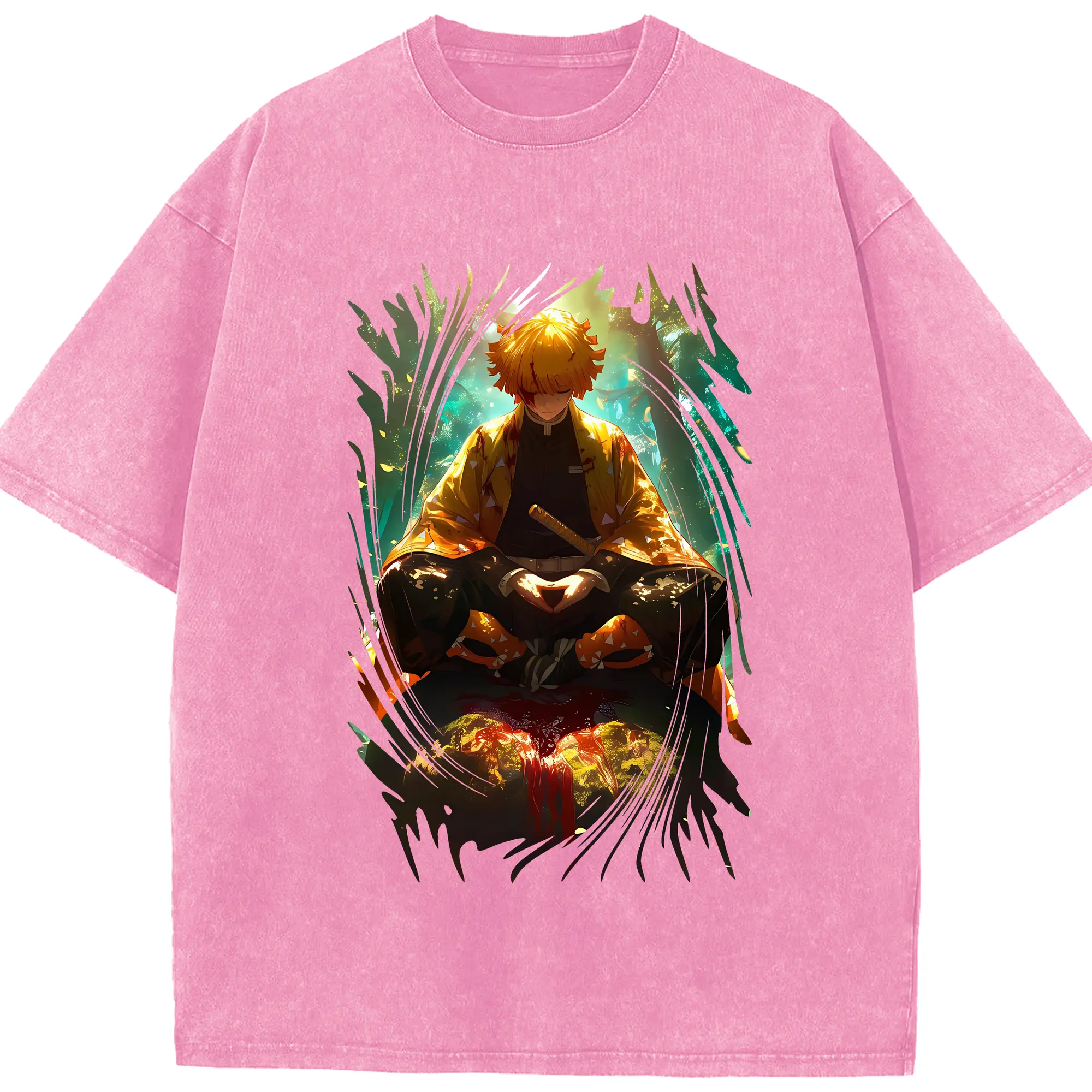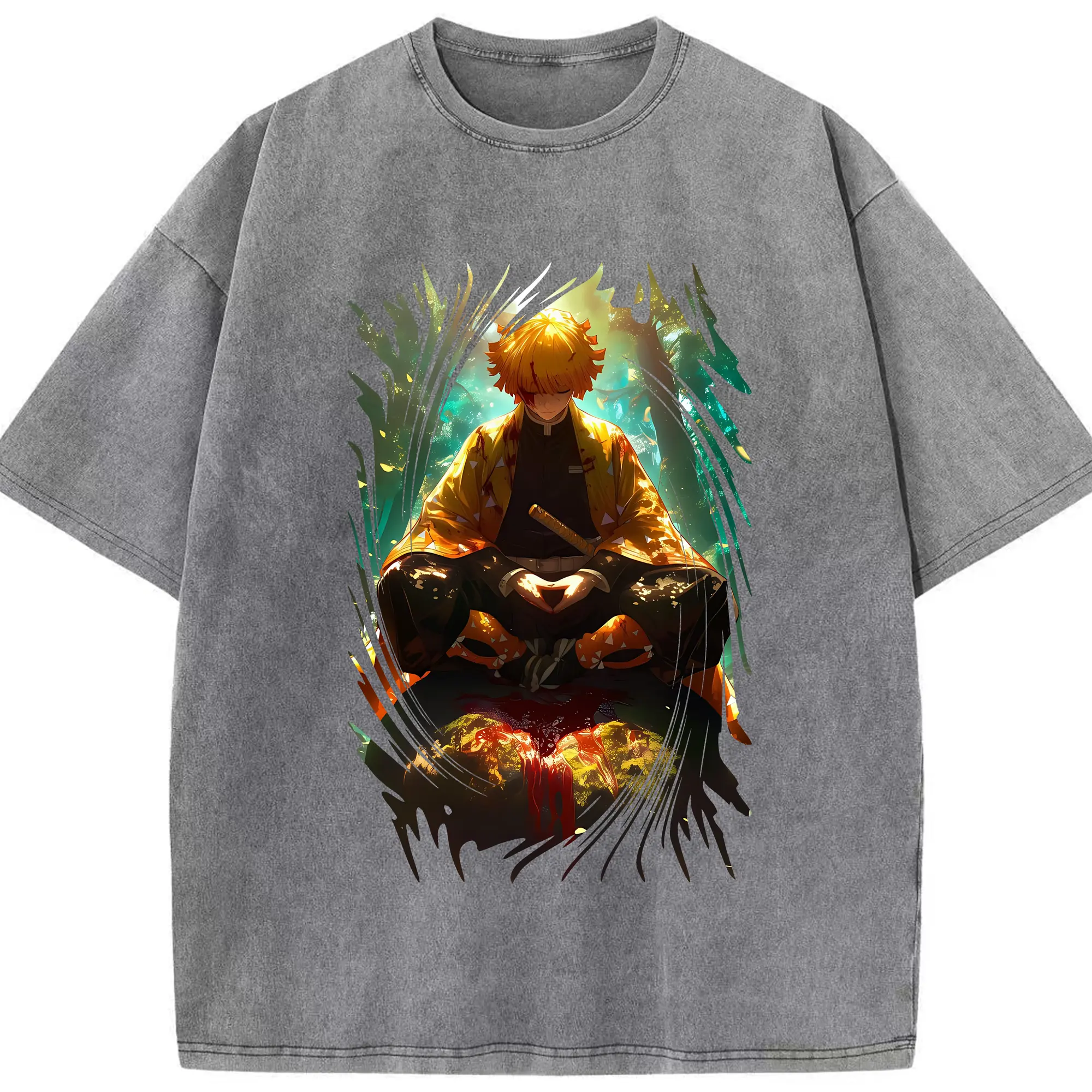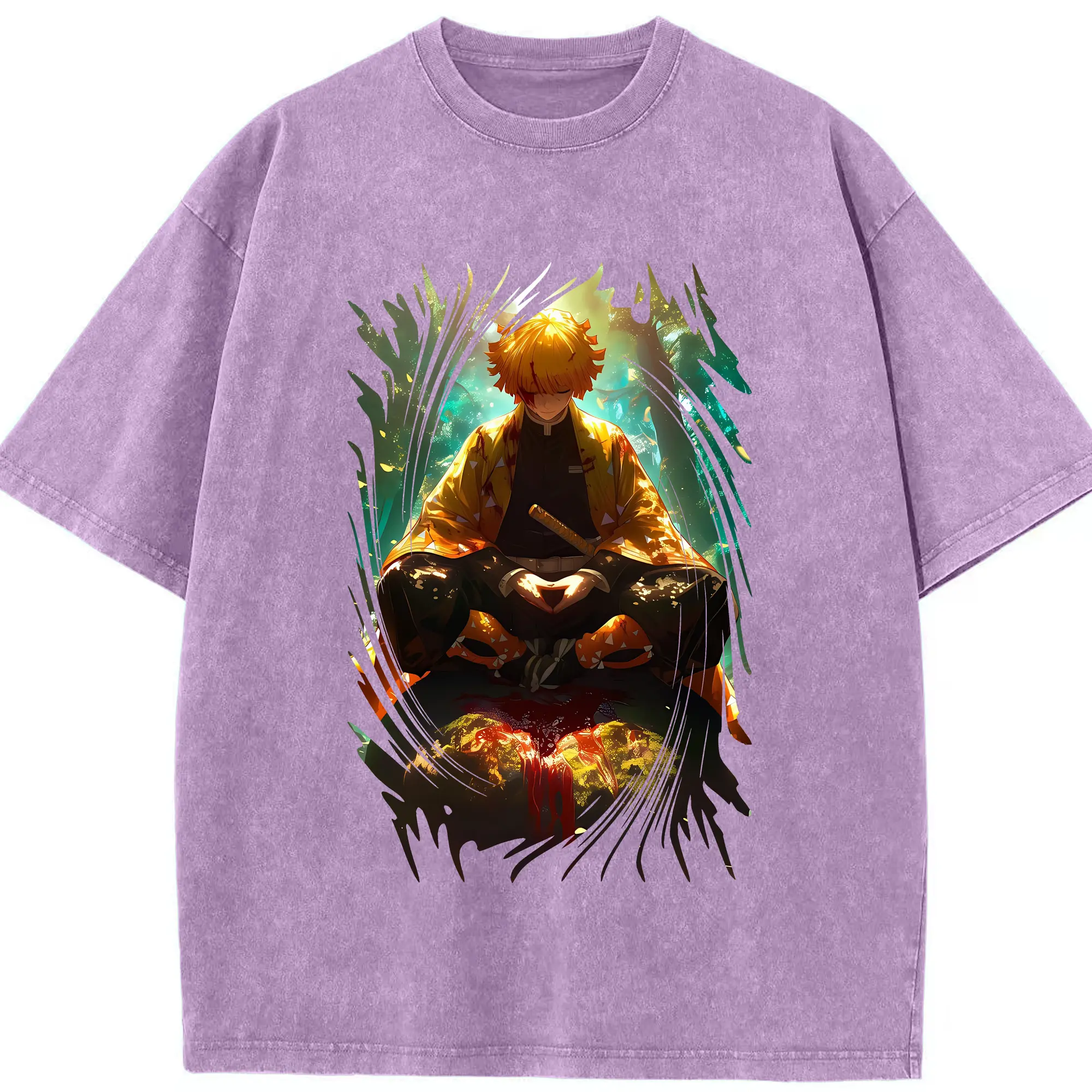 鬼滅の刃 グッズ,我妻 善逸 - 綿100% 半袖Tシャツ ・ フロントプリント ・ 快適 通気性 ・ 日常使い 散歩 スポーツ用
