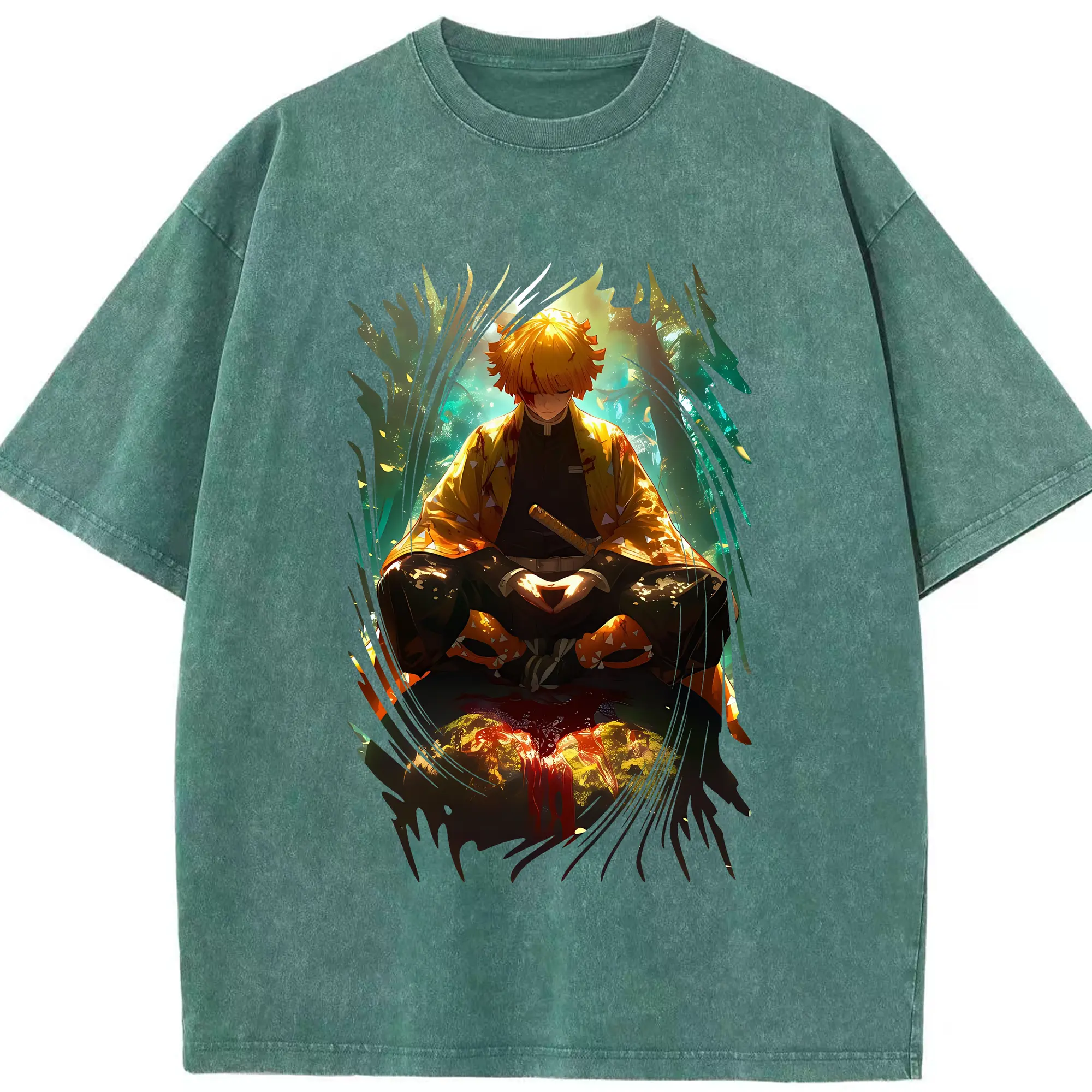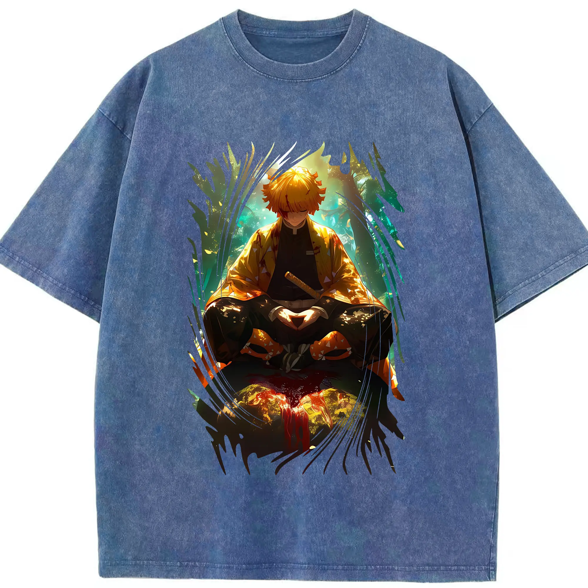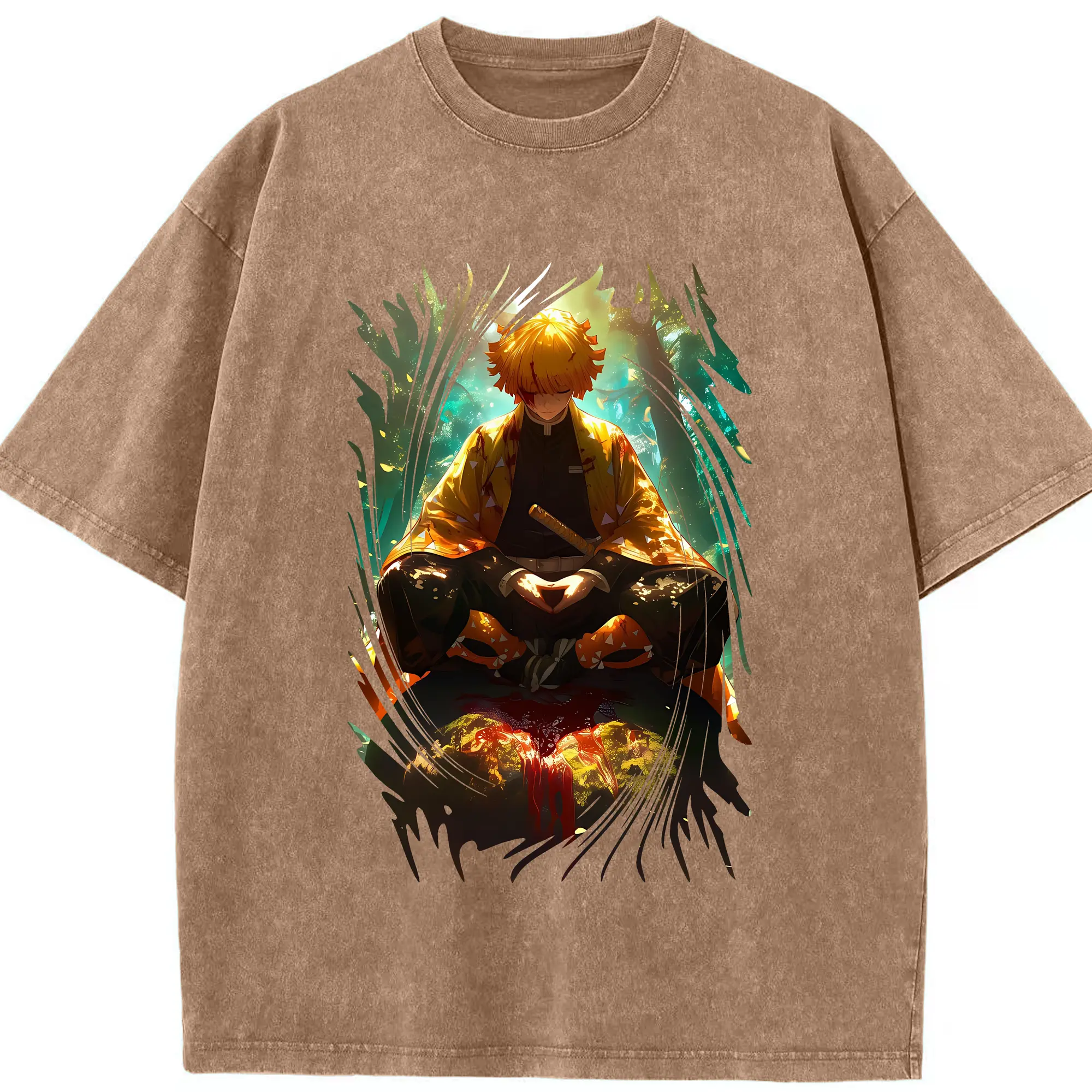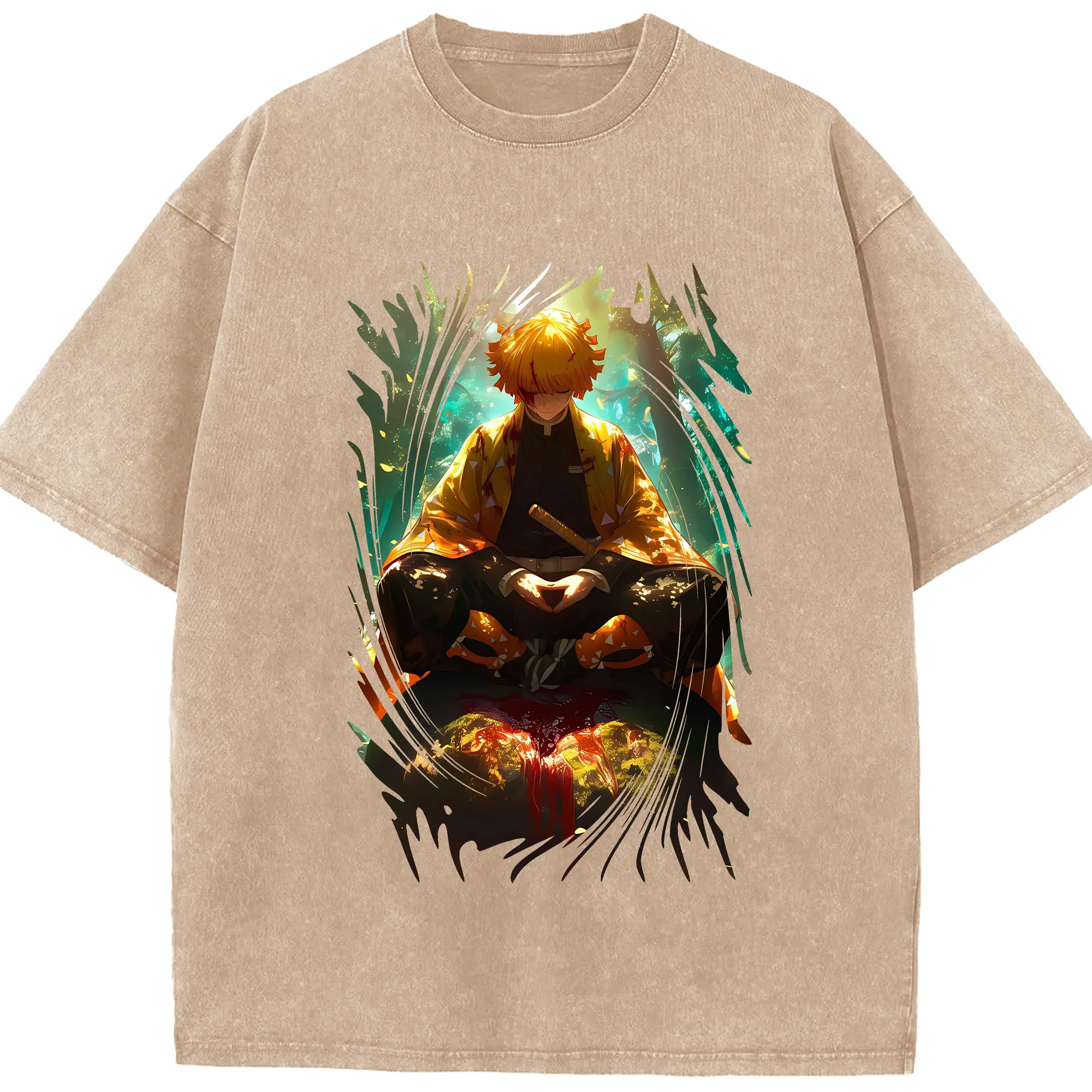 鬼滅の刃 グッズ,我妻 善逸 - 綿100% 半袖Tシャツ ・ フロントプリント ・ 快適 通気性 ・ 日常使い 散歩 スポーツ用