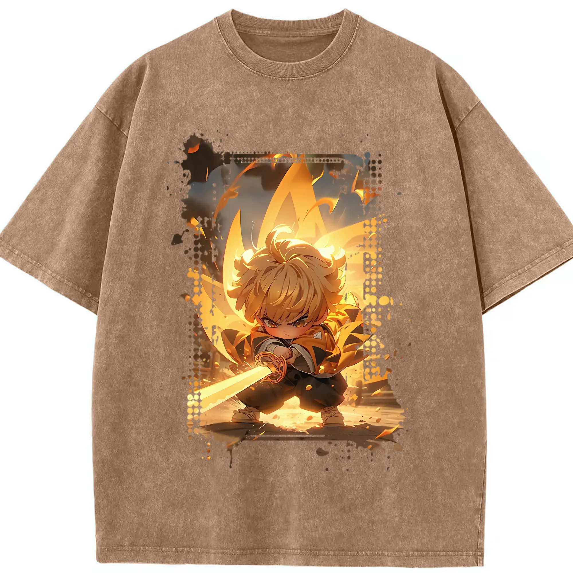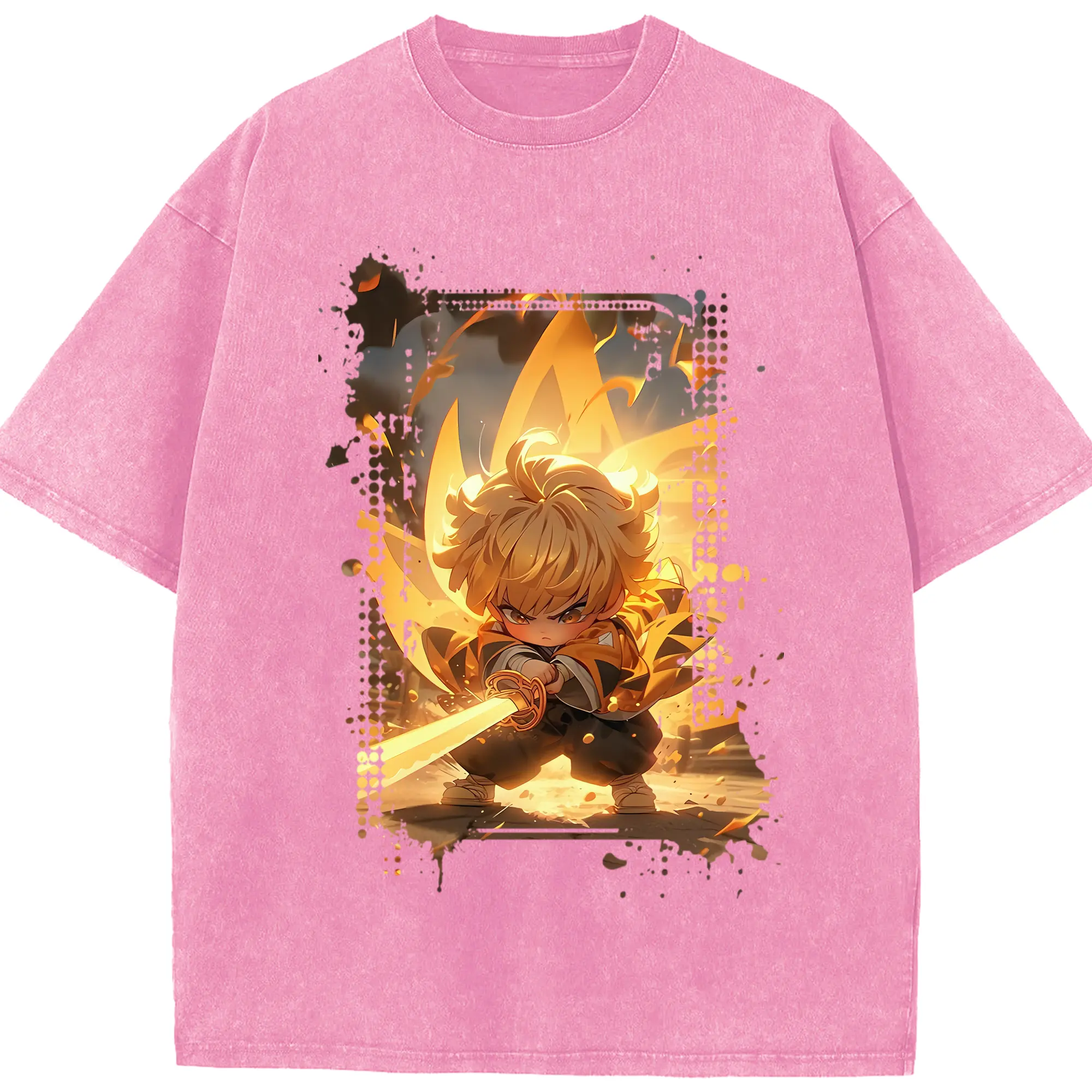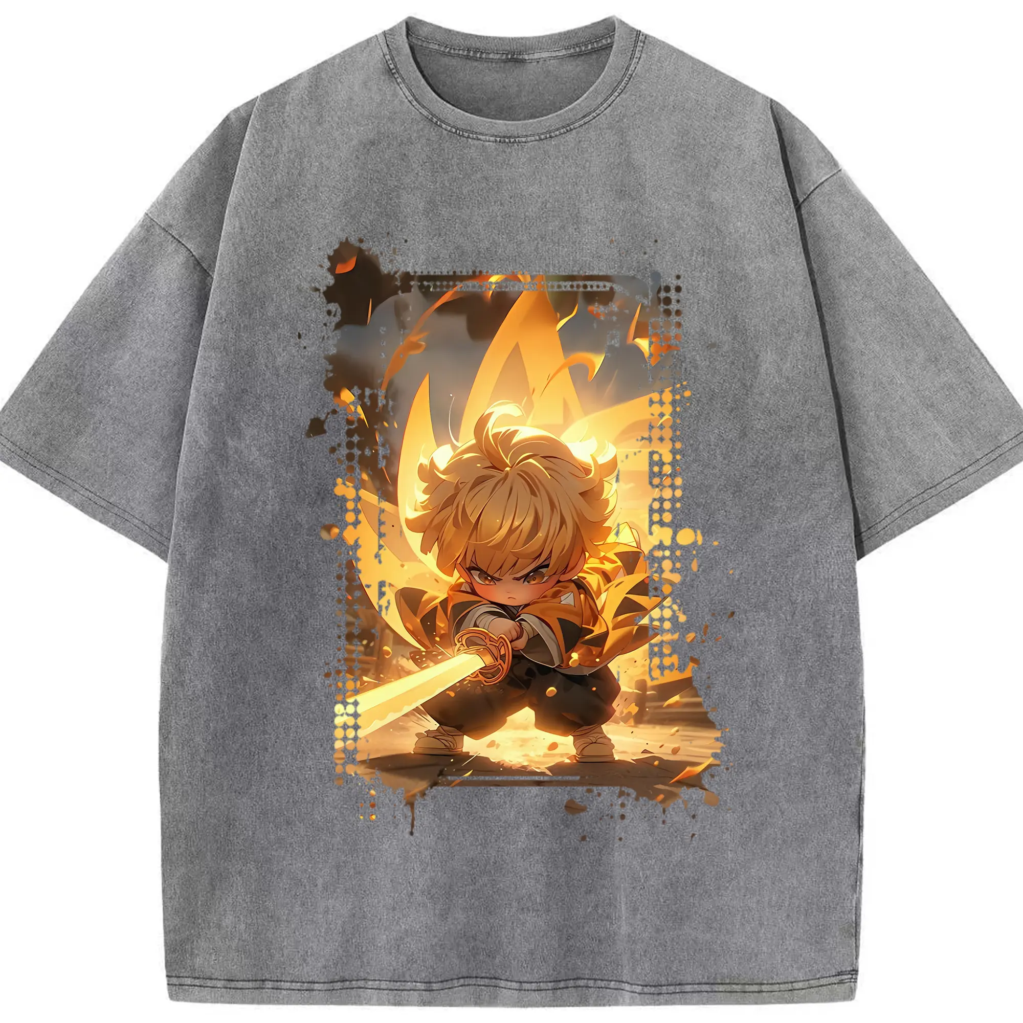 鬼滅の刃 グッズ,我妻 善逸 - 綿100% 半袖Tシャツ ・ フロントプリント ・ 快適 通気性 ・ 日常使い 散歩 スポーツ用