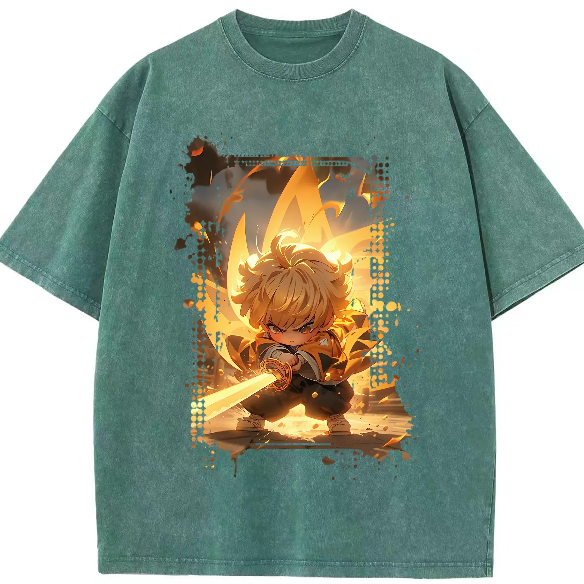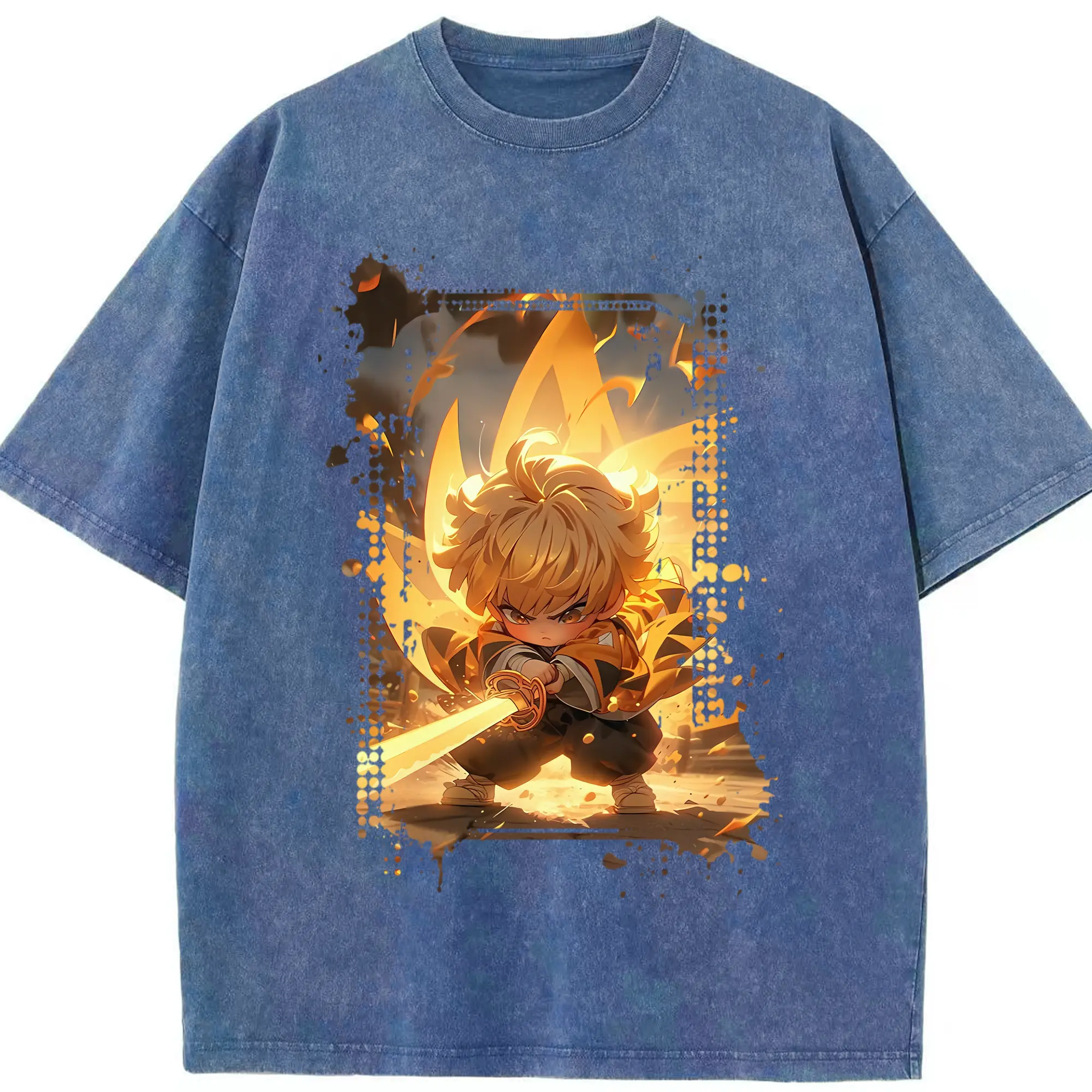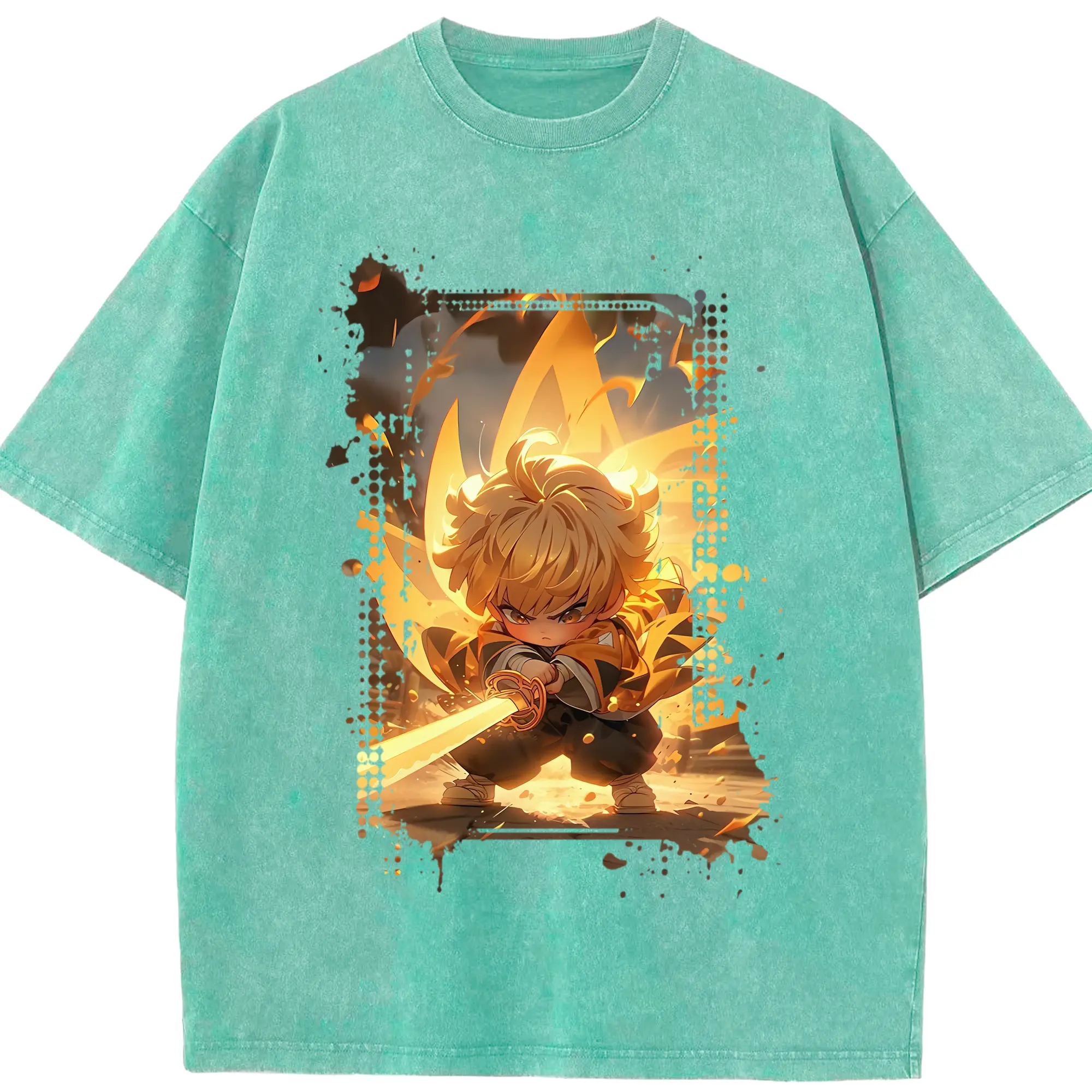 鬼滅の刃 グッズ,我妻 善逸 - 綿100% 半袖Tシャツ ・ フロントプリント ・ 快適 通気性 ・ 日常使い 散歩 スポーツ用