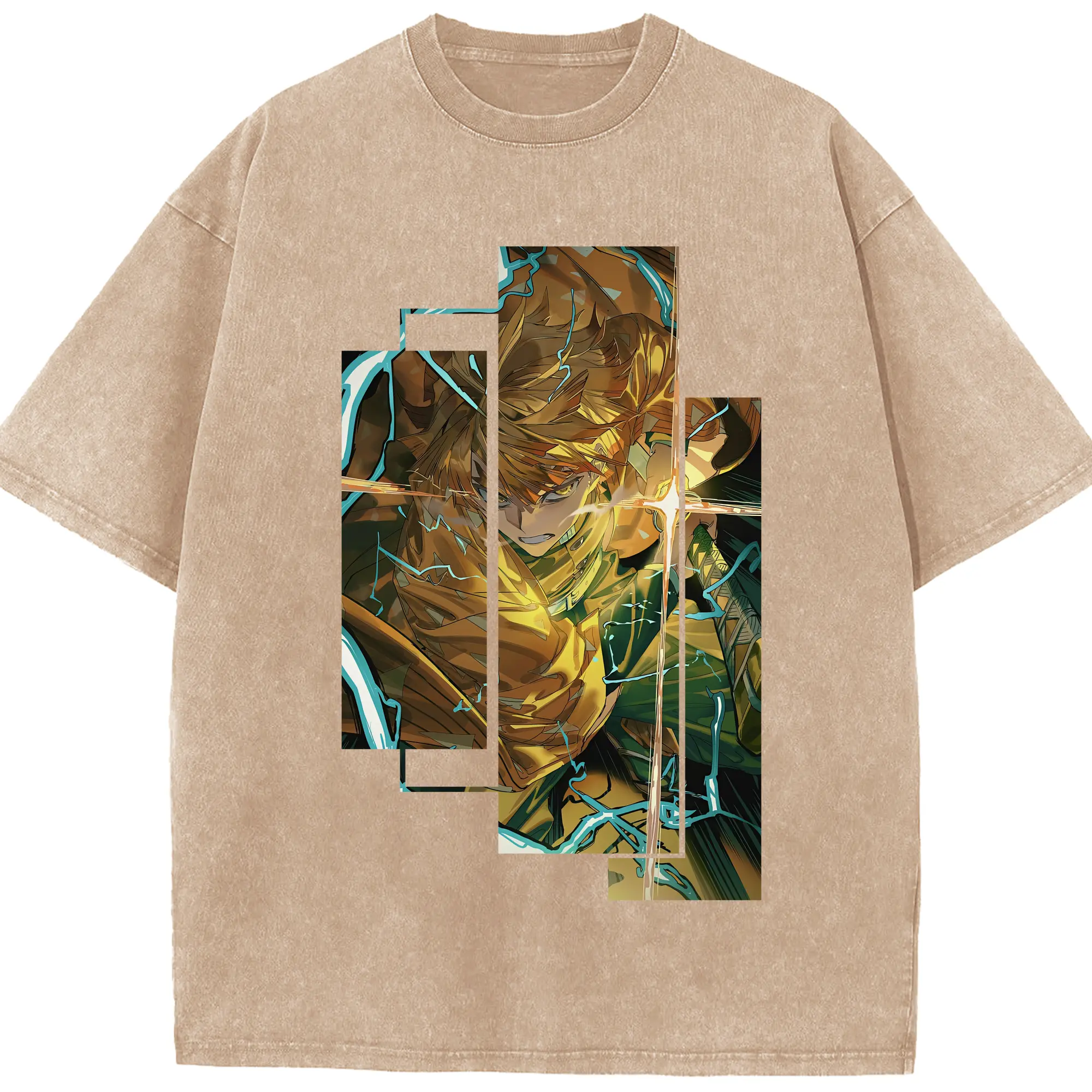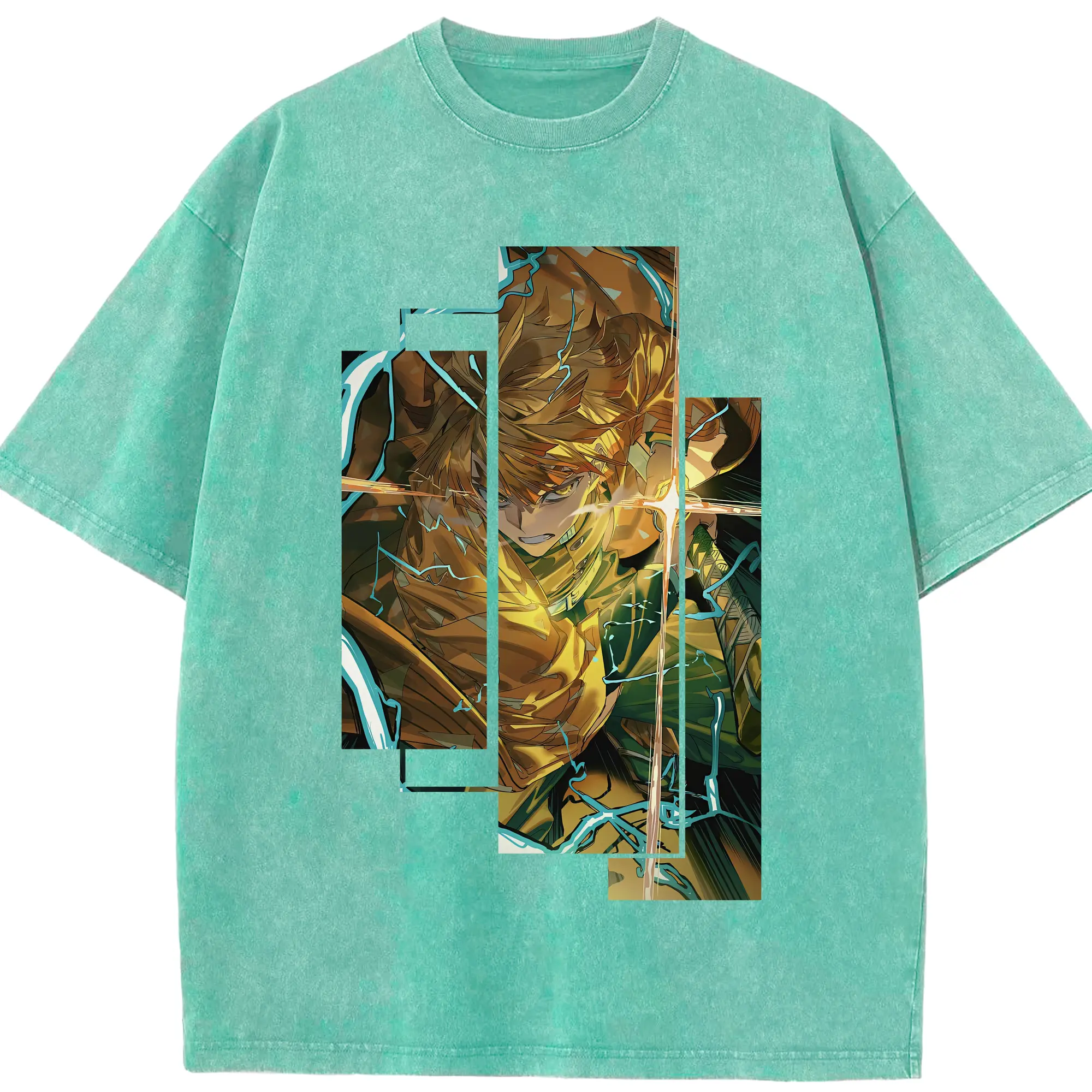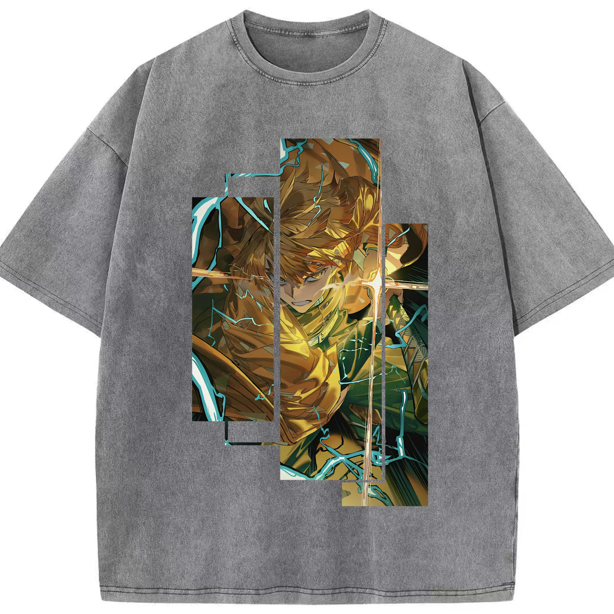 鬼滅の刃 グッズ,我妻 善逸 - 綿100% 半袖Tシャツ ・ フロントプリント ・ 快適 通気性 ・ 日常使い 散歩 スポーツ用