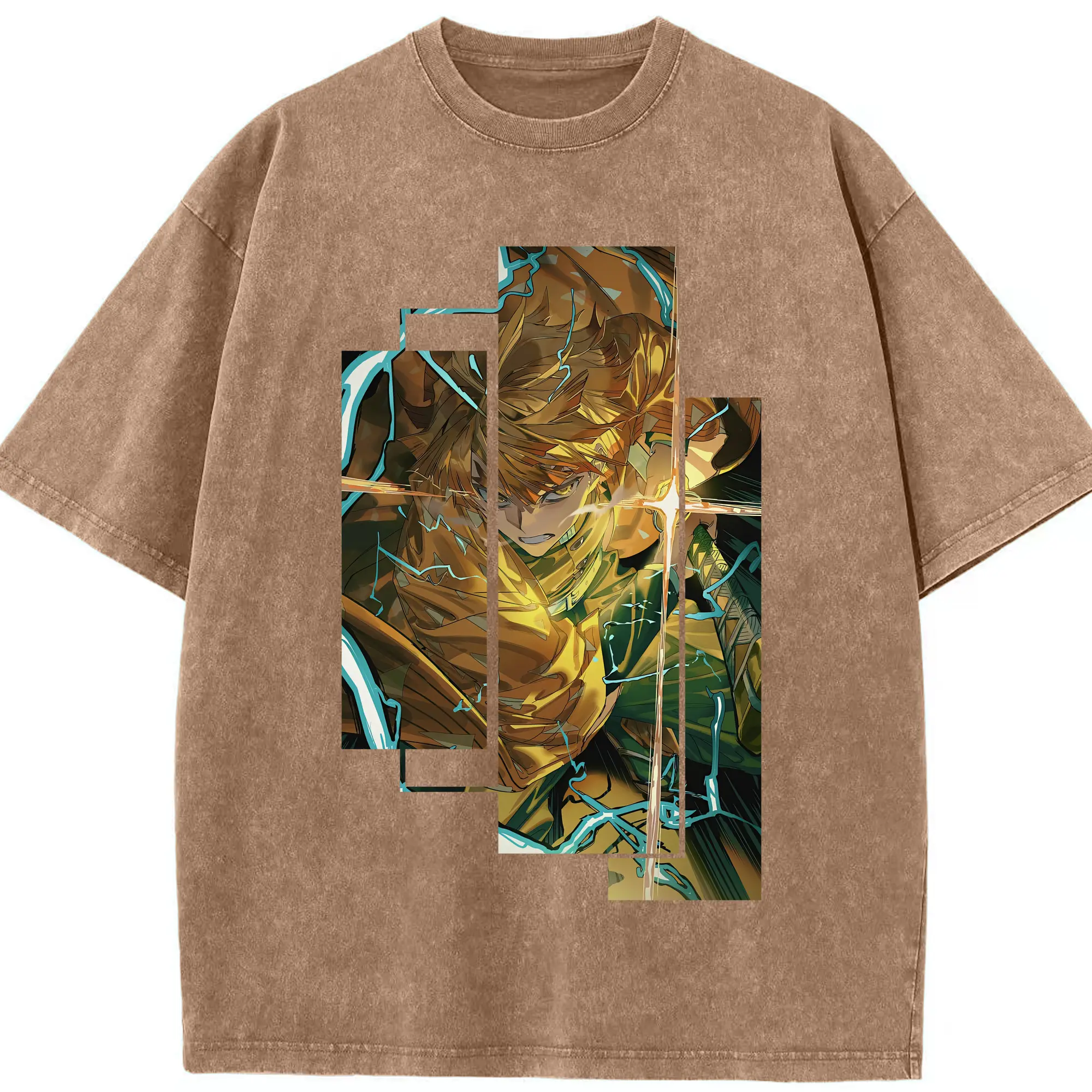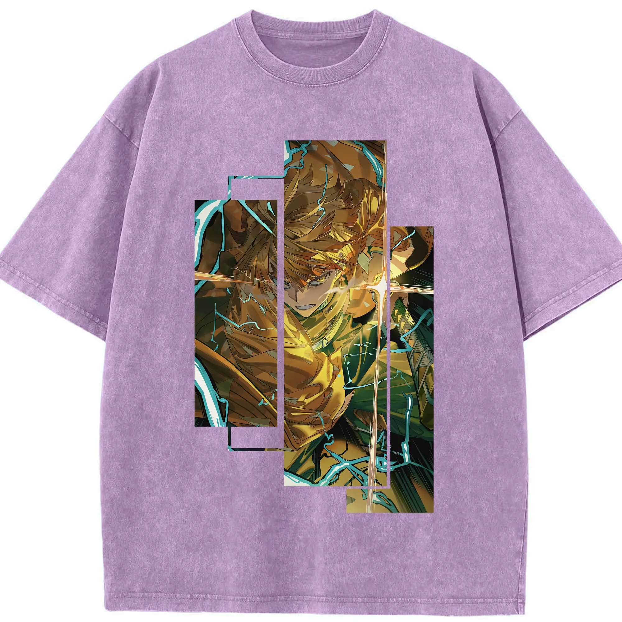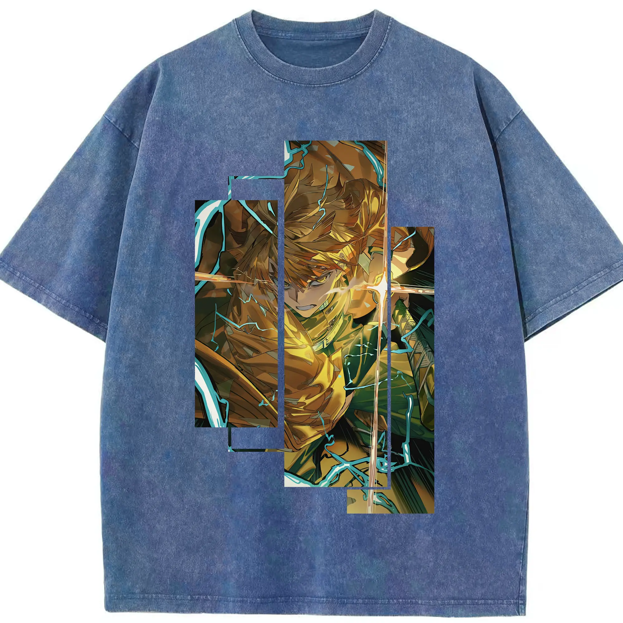 鬼滅の刃 グッズ,我妻 善逸 - 綿100% 半袖Tシャツ ・ フロントプリント ・ 快適 通気性 ・ 日常使い 散歩 スポーツ用