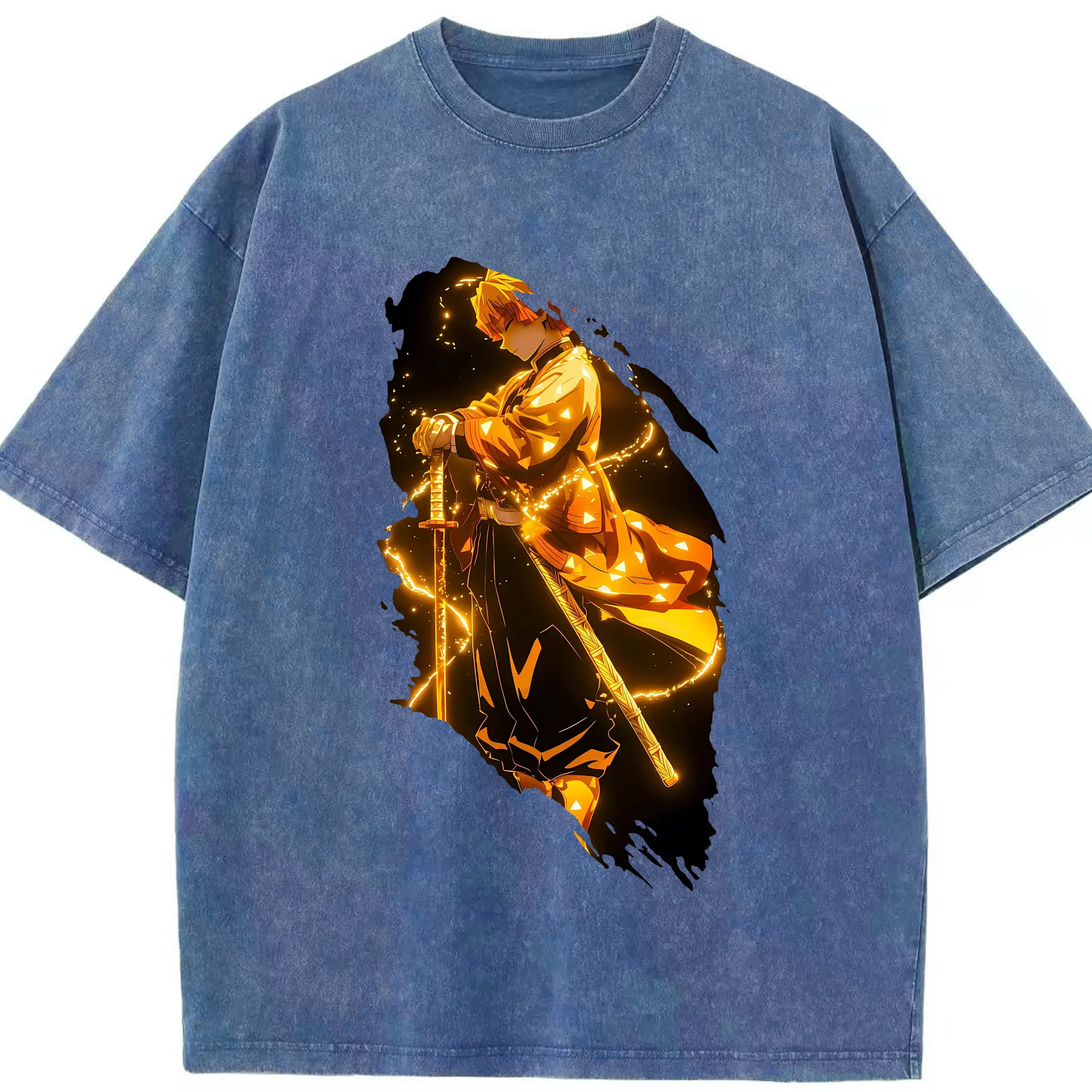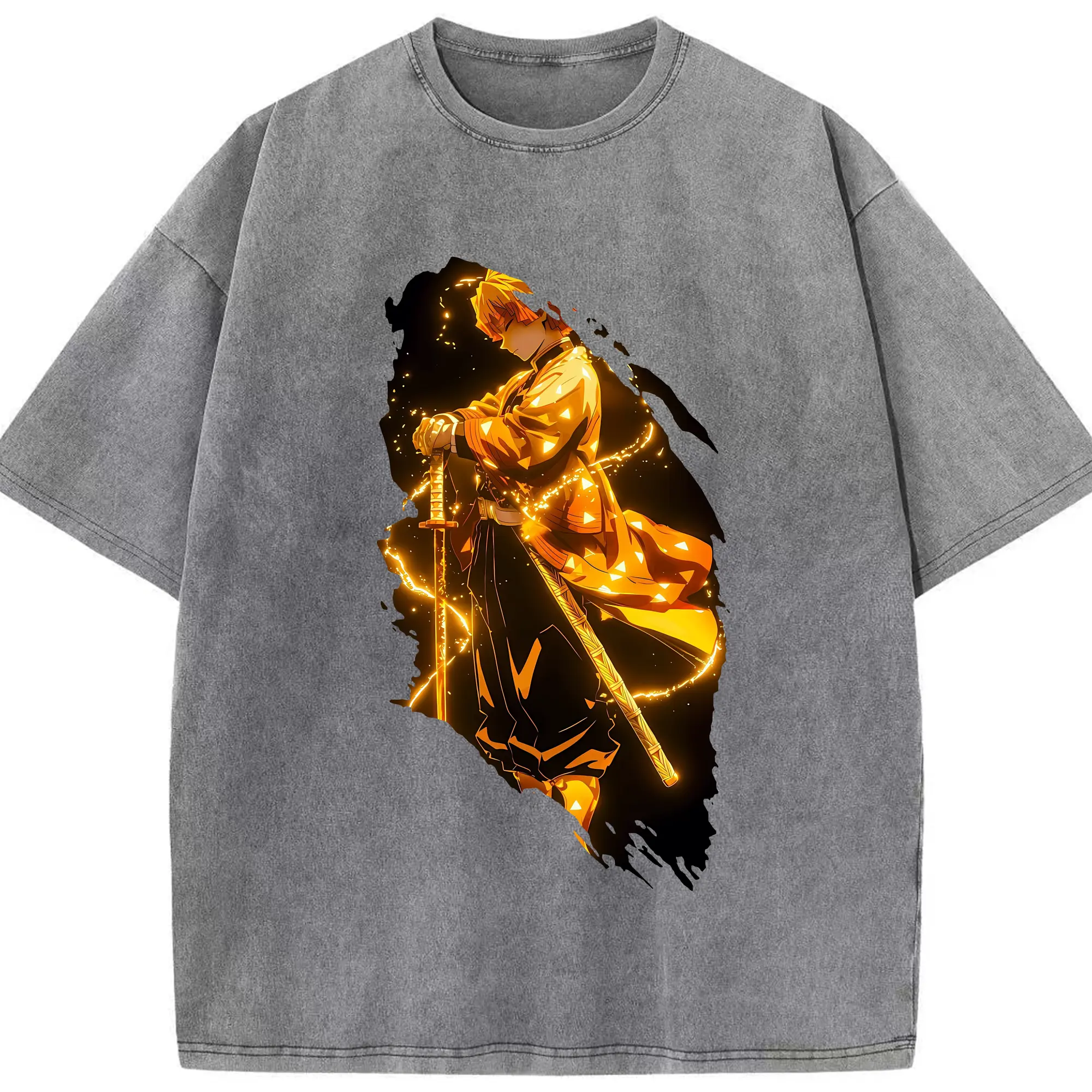 鬼滅の刃 グッズ,我妻 善逸 - 綿100% 半袖Tシャツ ・ フロントプリント ・ 快適 通気性 ・ 日常使い 散歩 スポーツ用