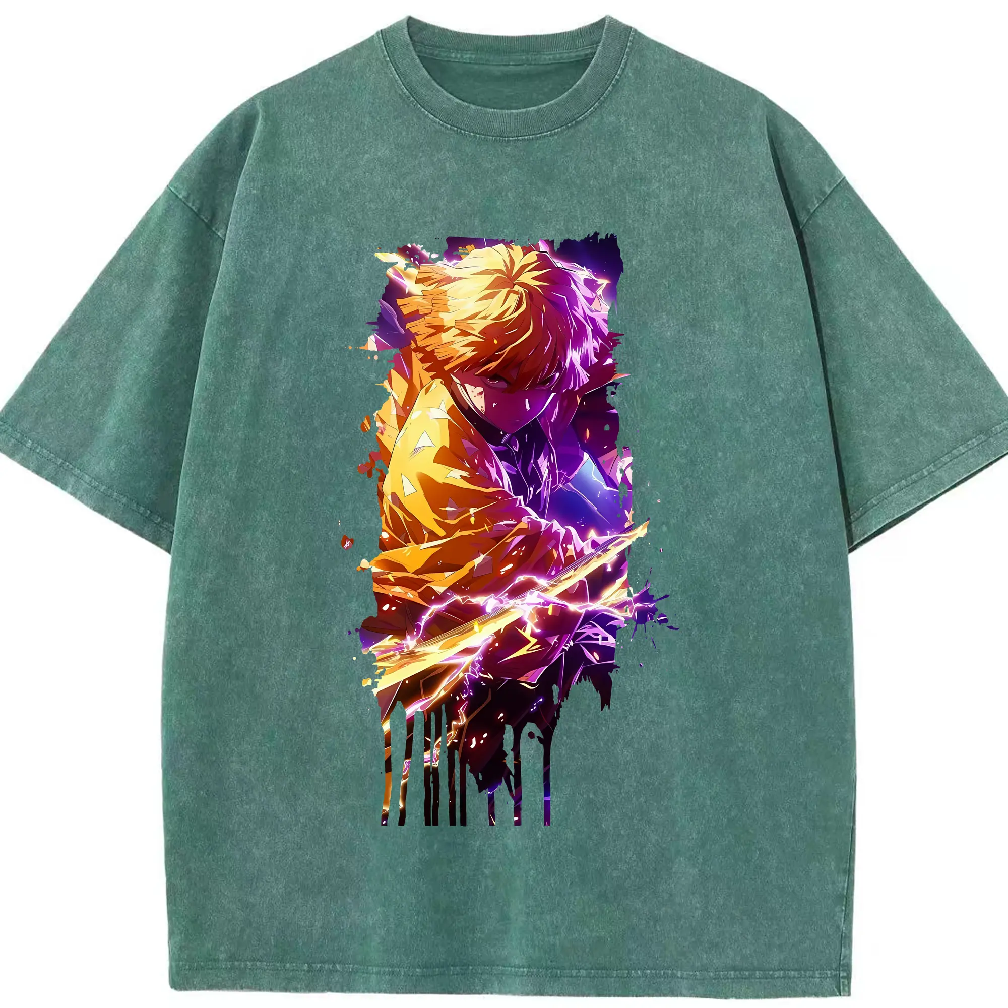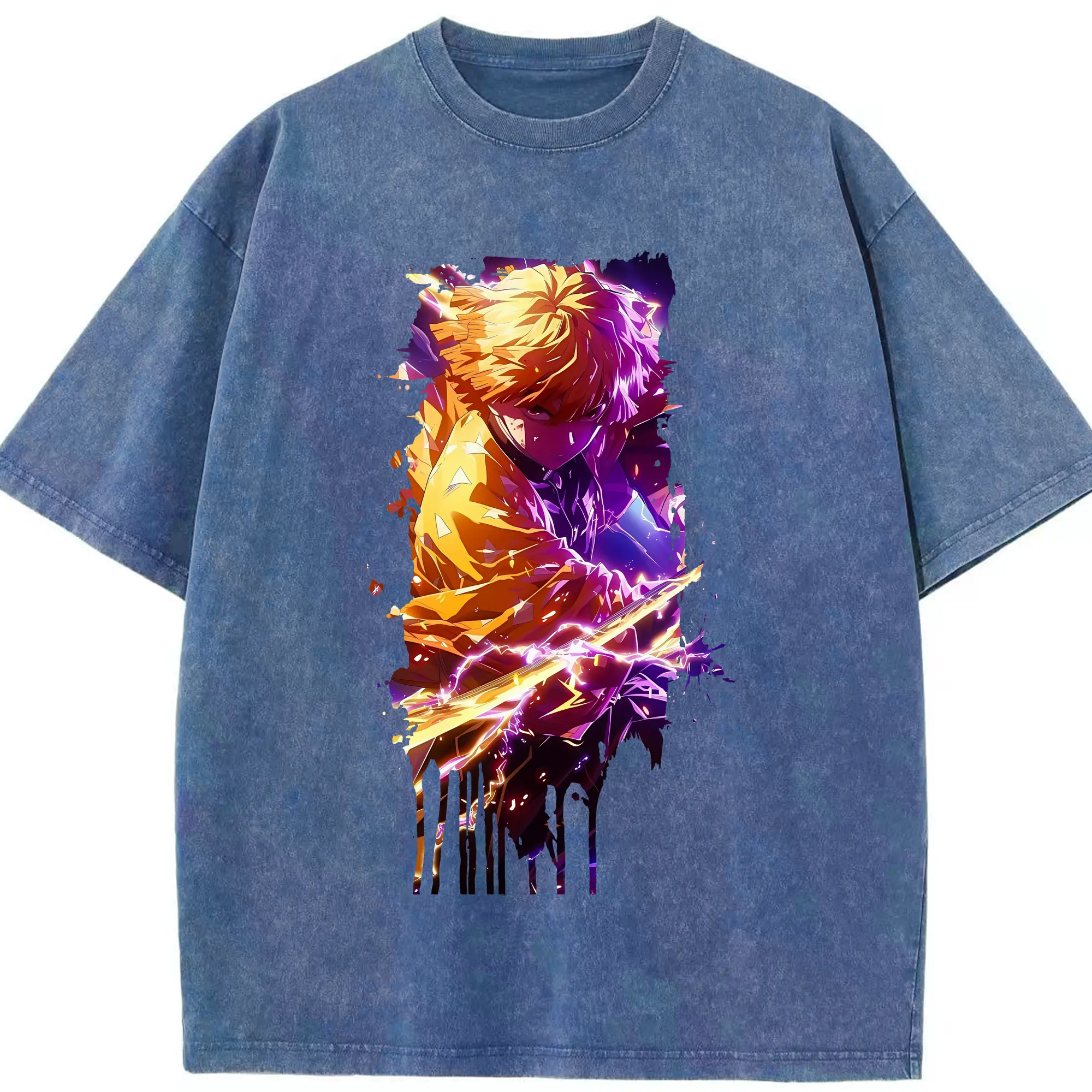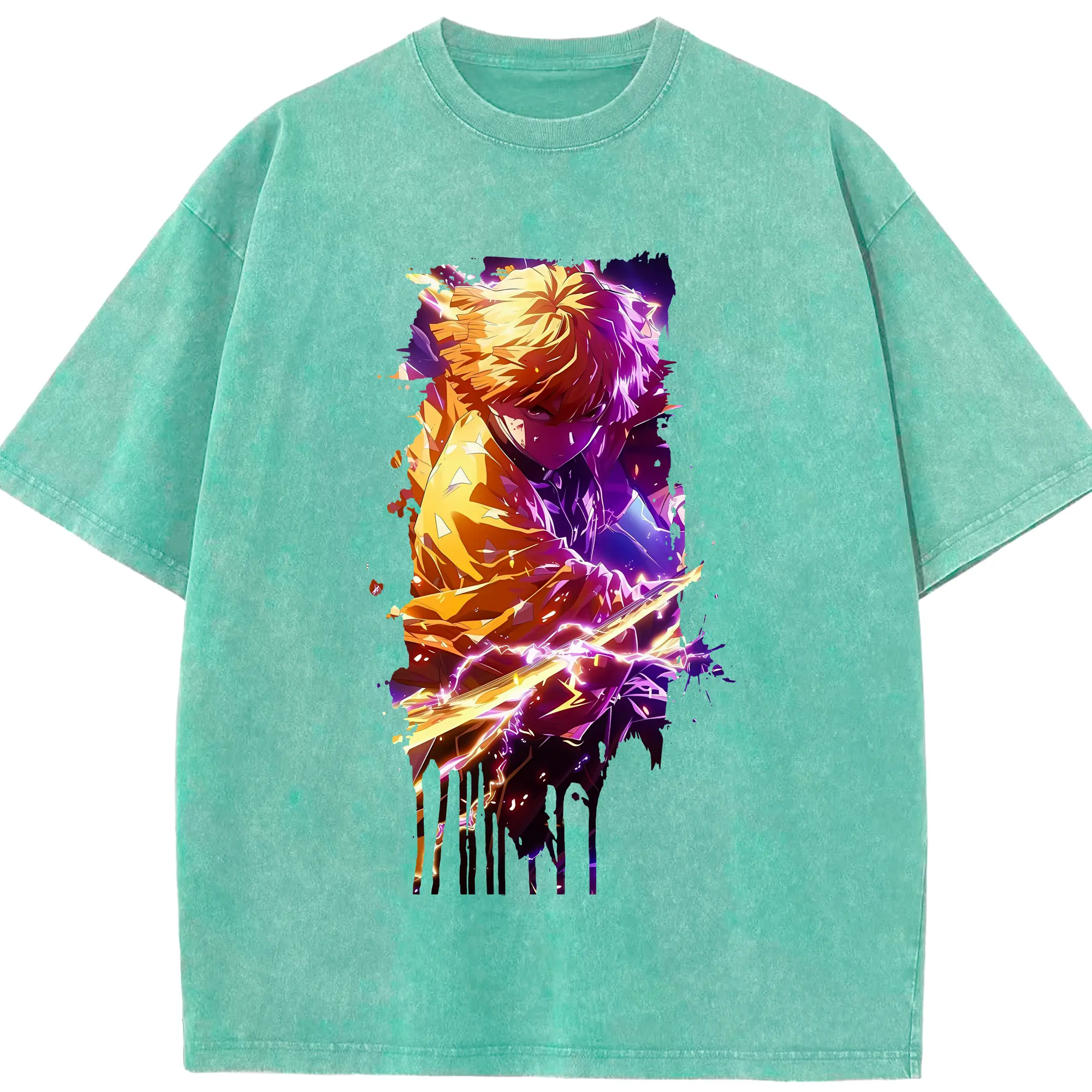 鬼滅の刃 グッズ,我妻 善逸 - 綿100% 半袖Tシャツ ・ フロントプリント ・ 快適 通気性 ・ 日常使い 散歩 スポーツ用