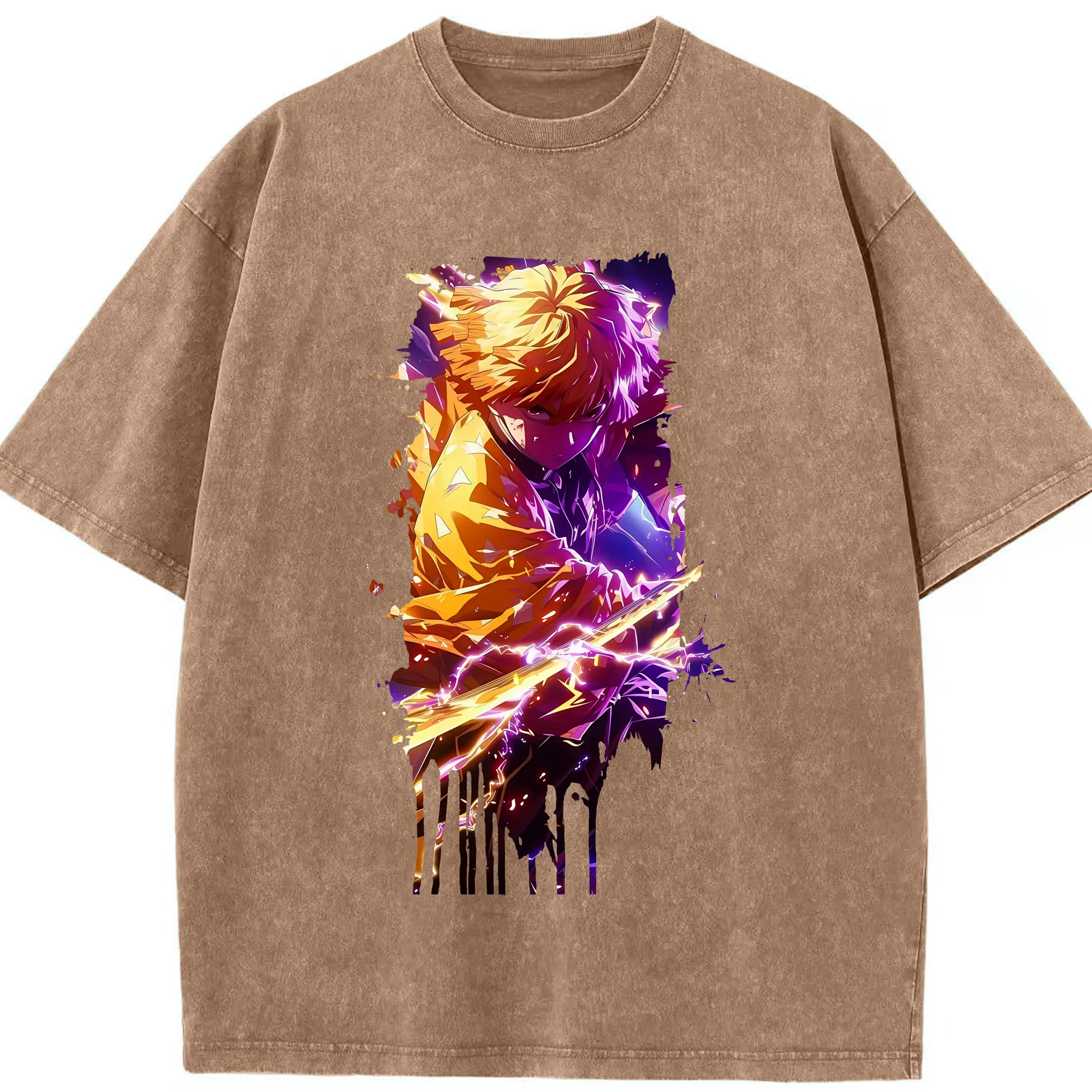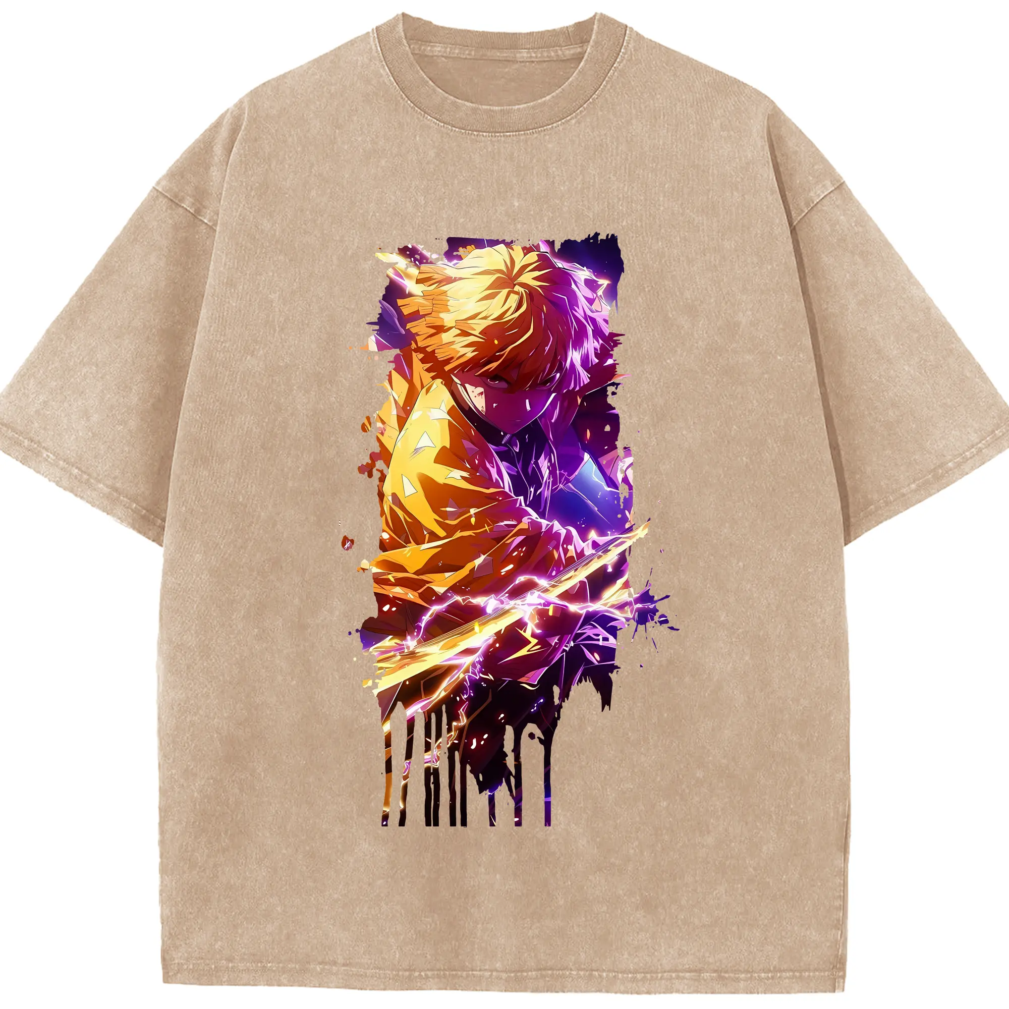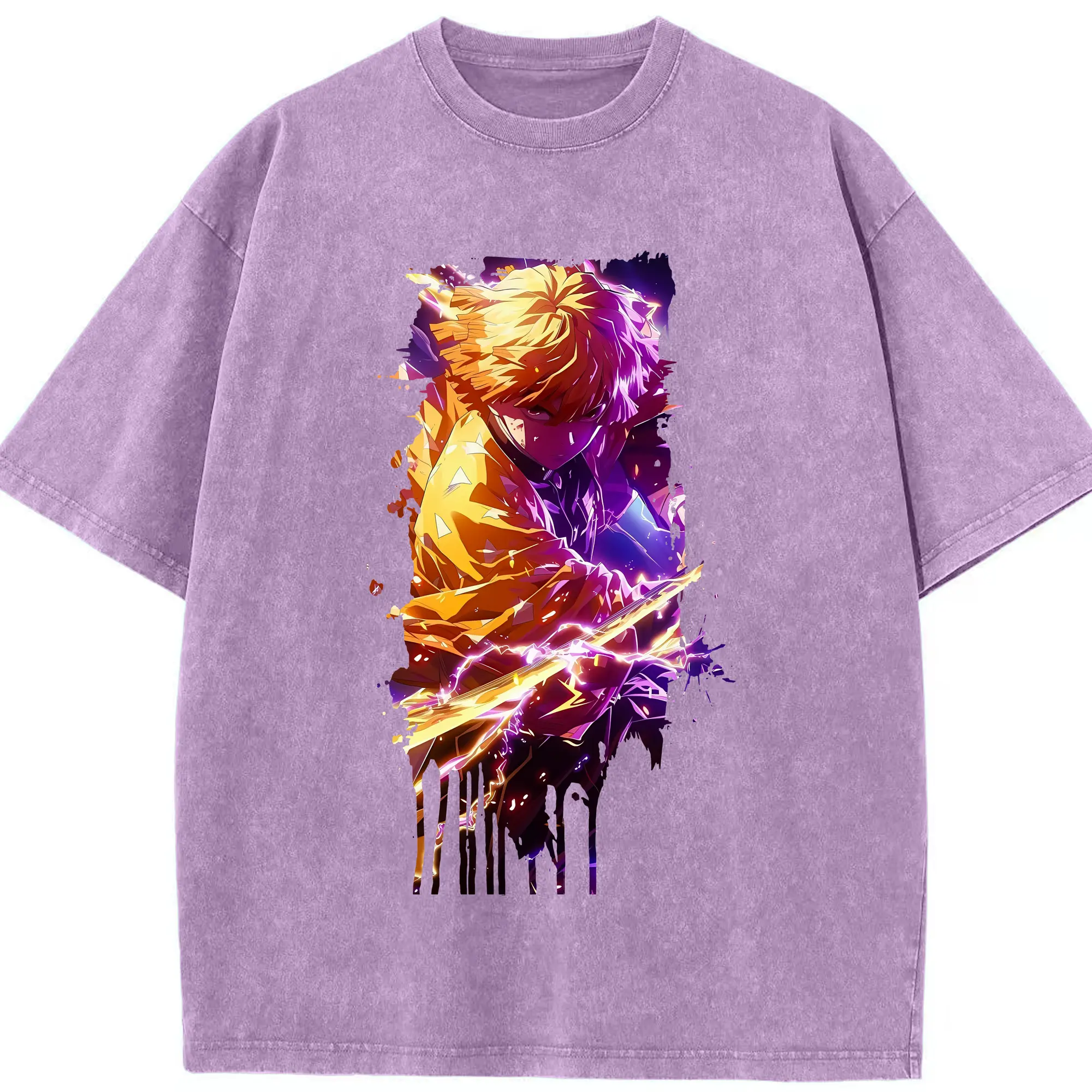 鬼滅の刃 グッズ,我妻 善逸 - 綿100% 半袖Tシャツ ・ フロントプリント ・ 快適 通気性 ・ 日常使い 散歩 スポーツ用