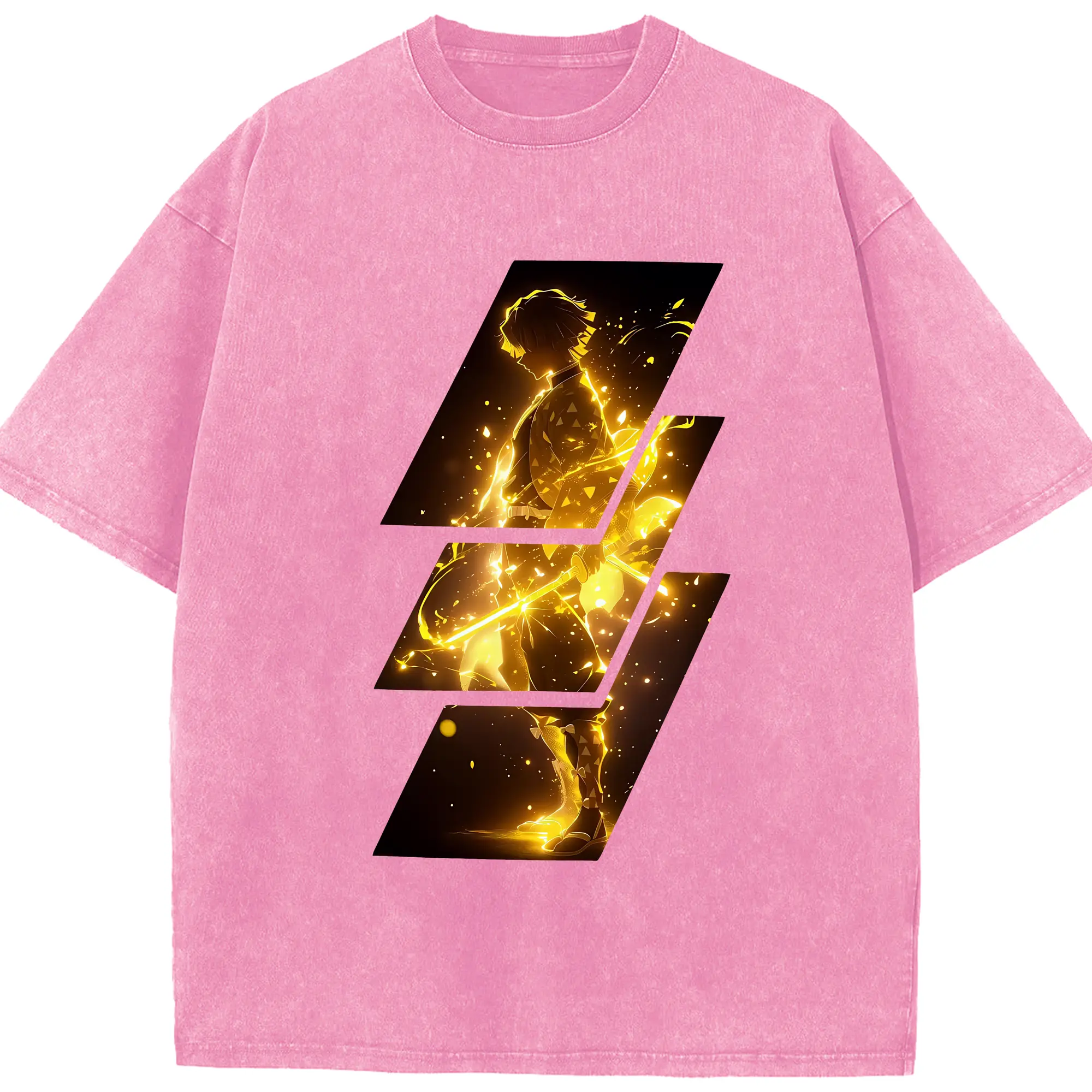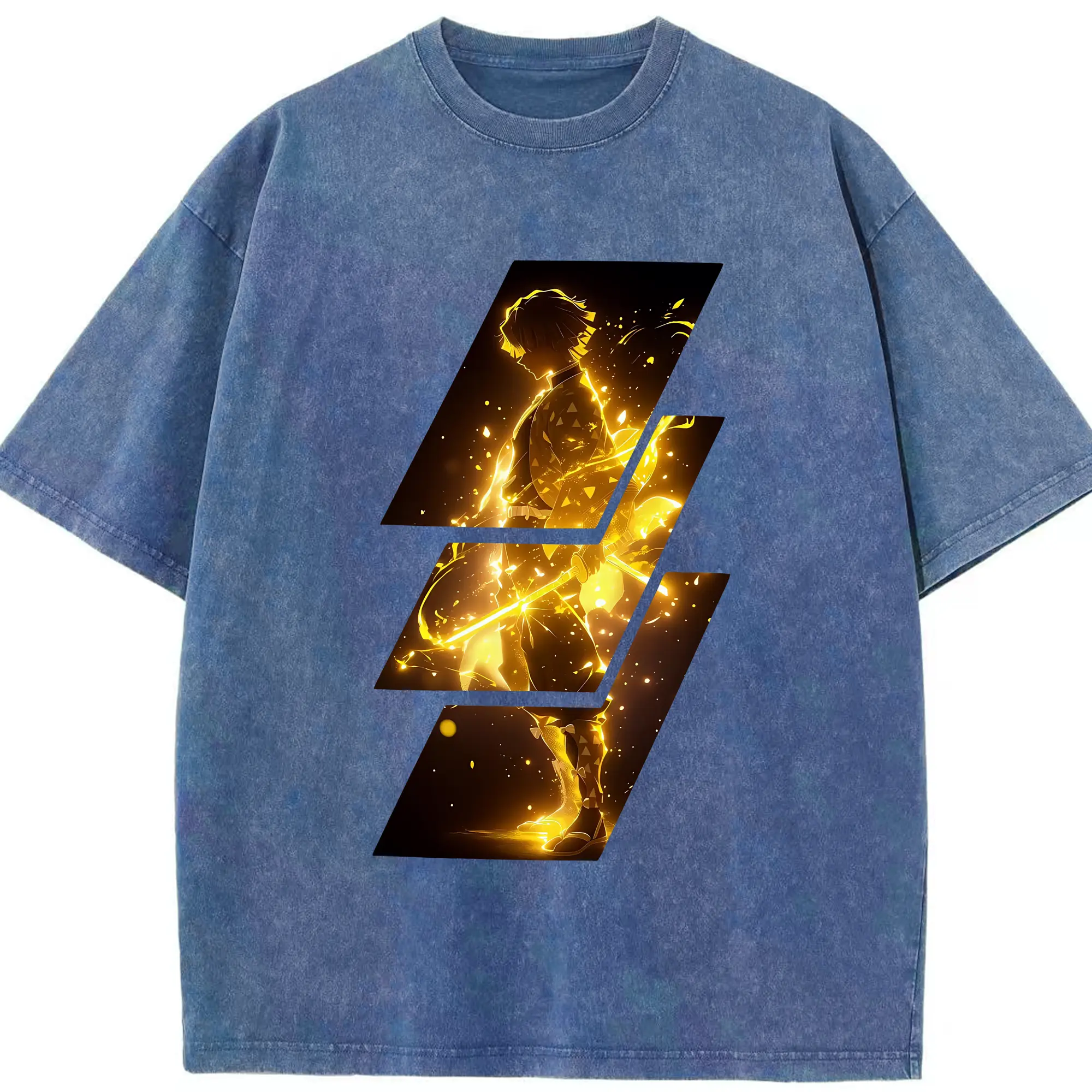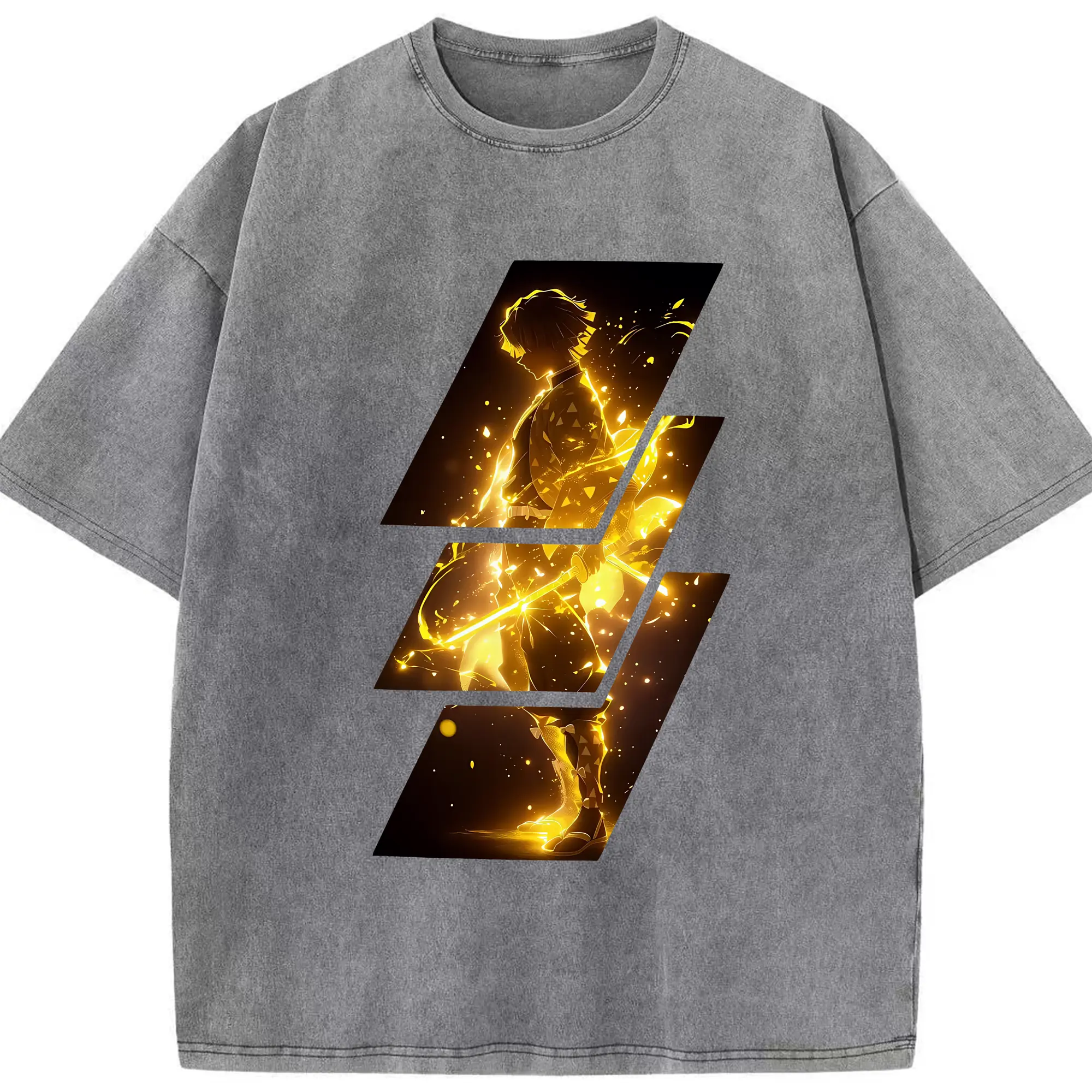 鬼滅の刃 グッズ,我妻 善逸 - 綿100% 半袖Tシャツ ・ フロントプリント ・ 快適 通気性 ・ 日常使い 散歩 スポーツ用