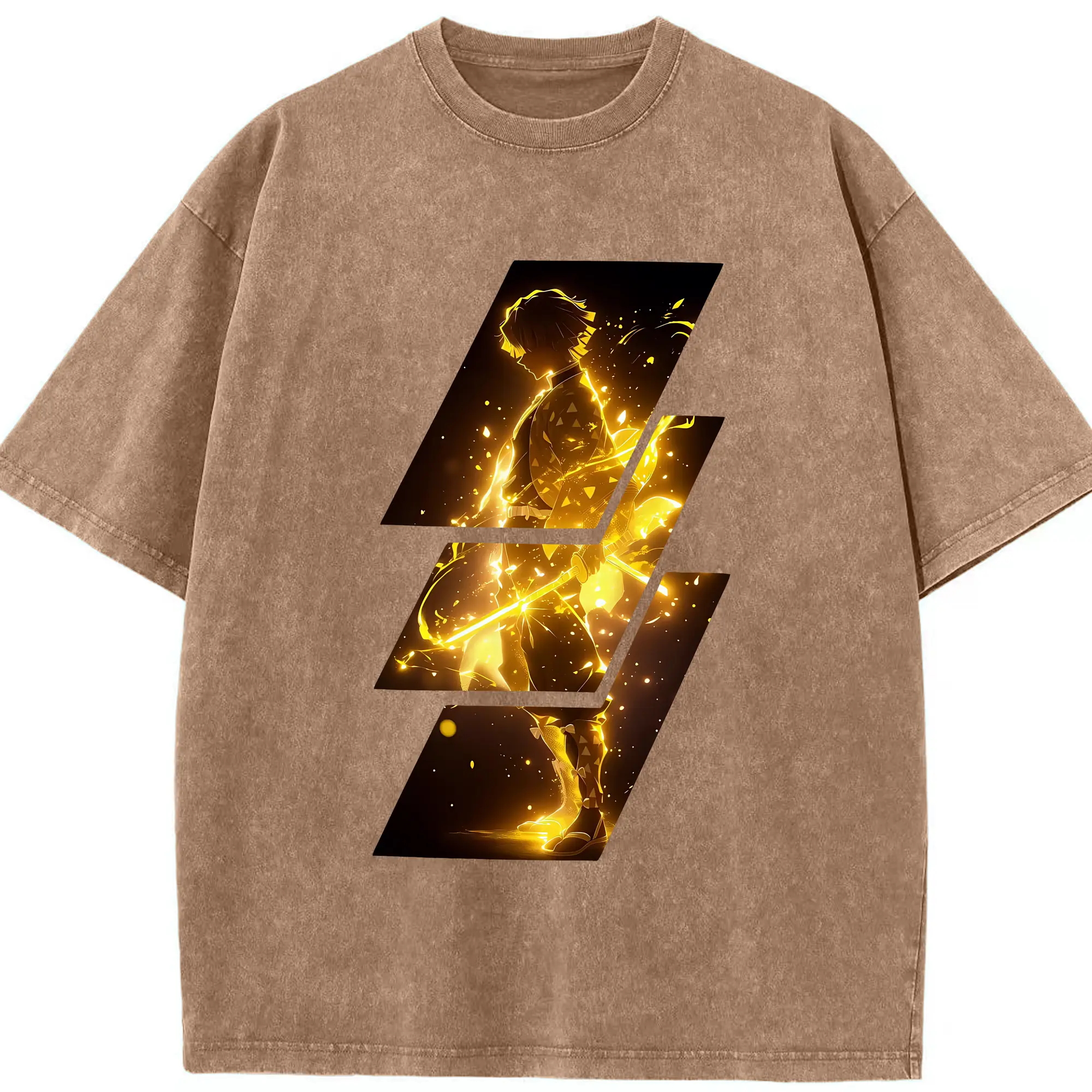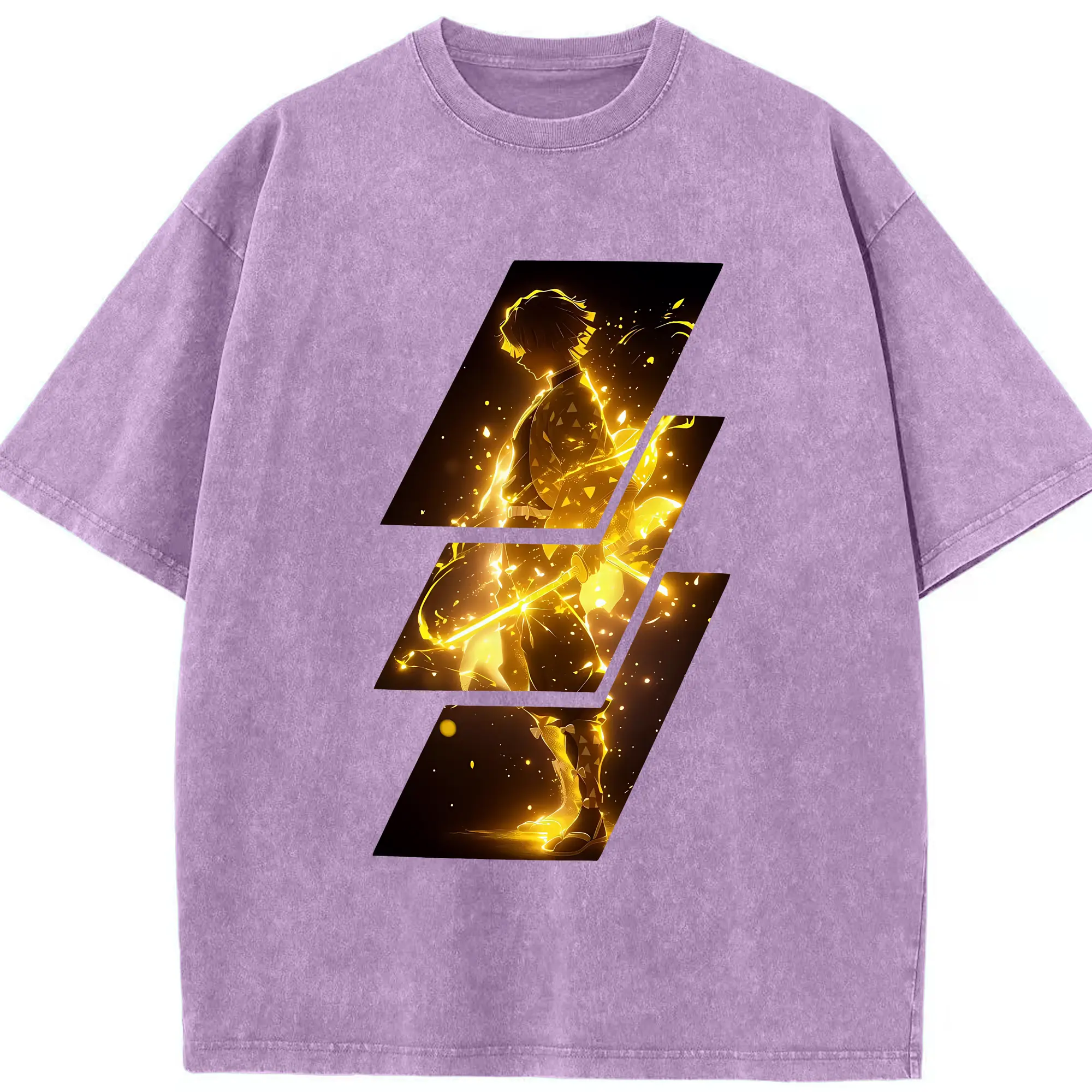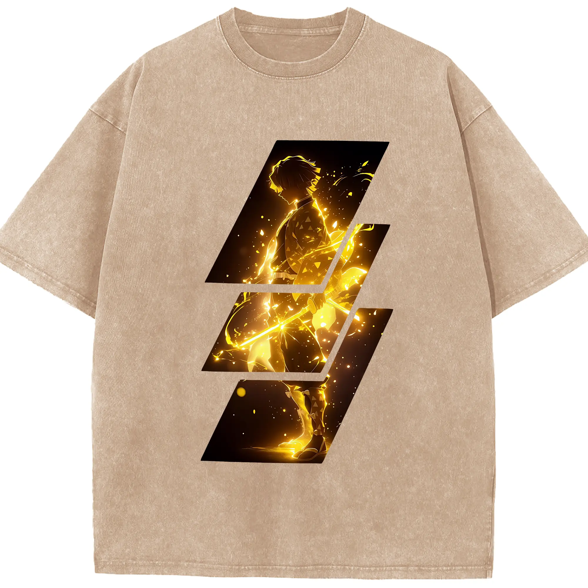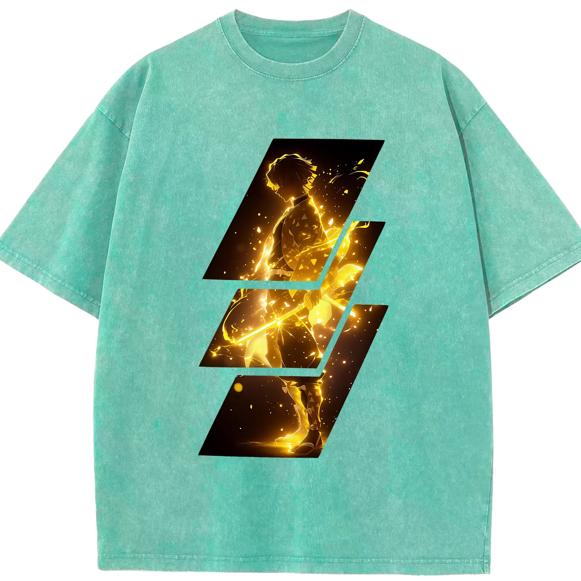 鬼滅の刃 グッズ,我妻 善逸 - 綿100% 半袖Tシャツ ・ フロントプリント ・ 快適 通気性 ・ 日常使い 散歩 スポーツ用