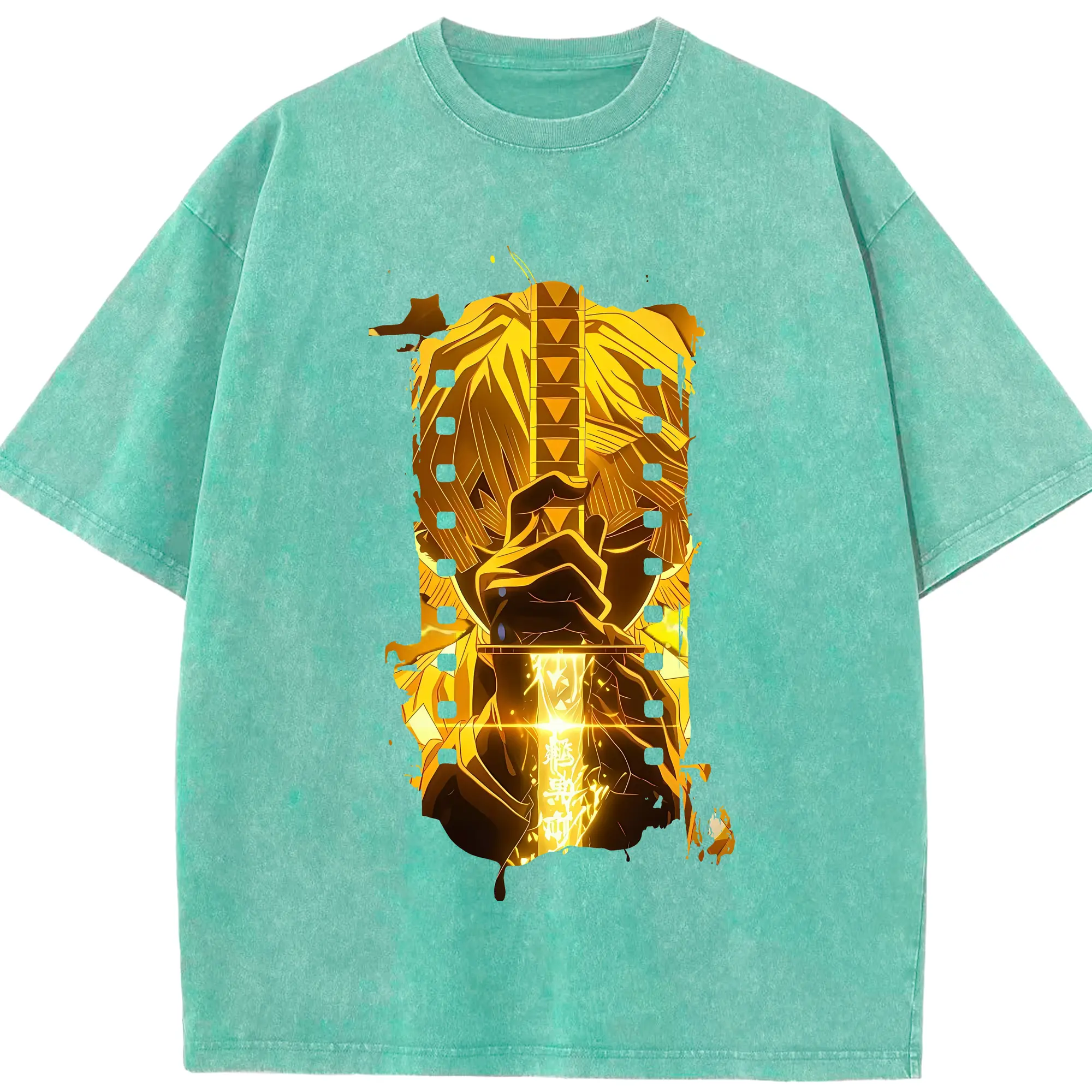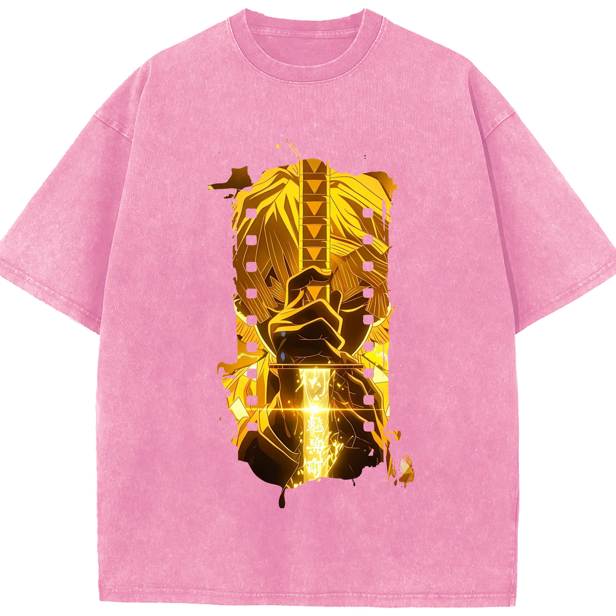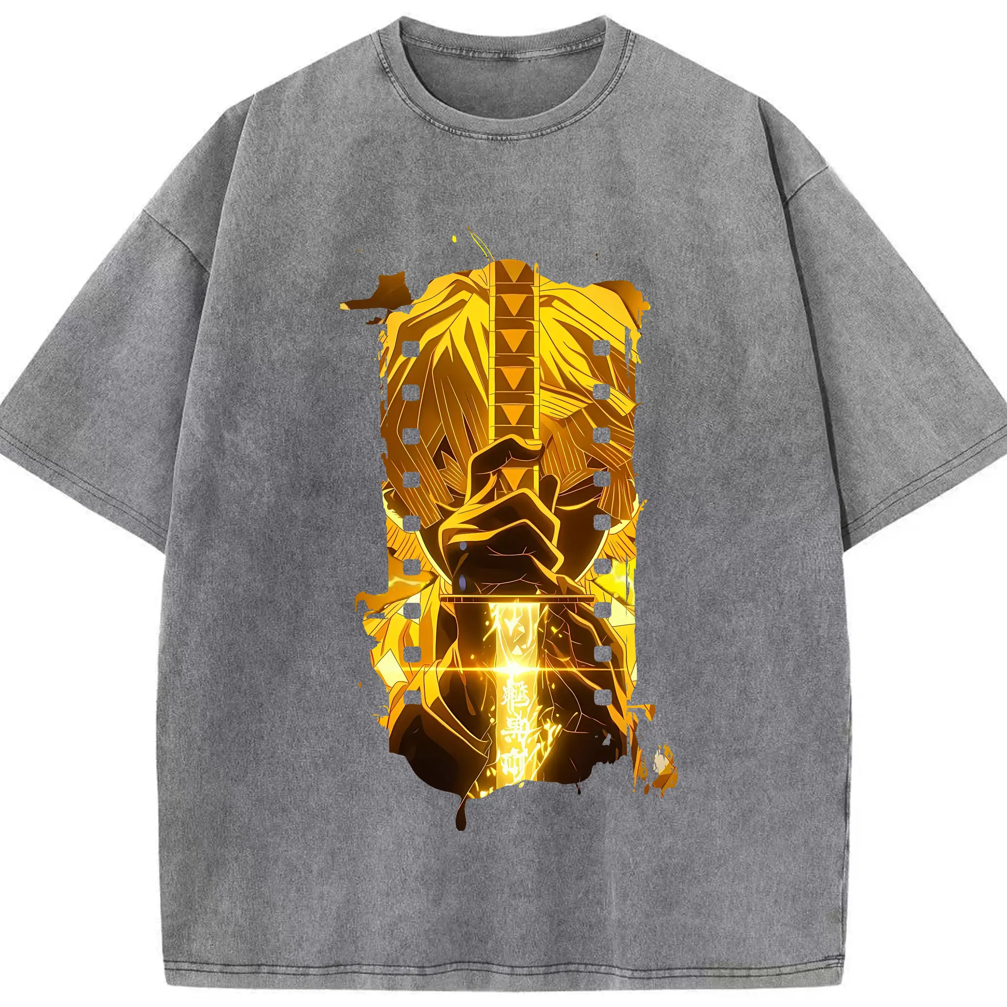 鬼滅の刃 グッズ,我妻 善逸 - 綿100% 半袖Tシャツ ・ フロントプリント ・ 快適 通気性 ・ 日常使い 散歩 スポーツ用