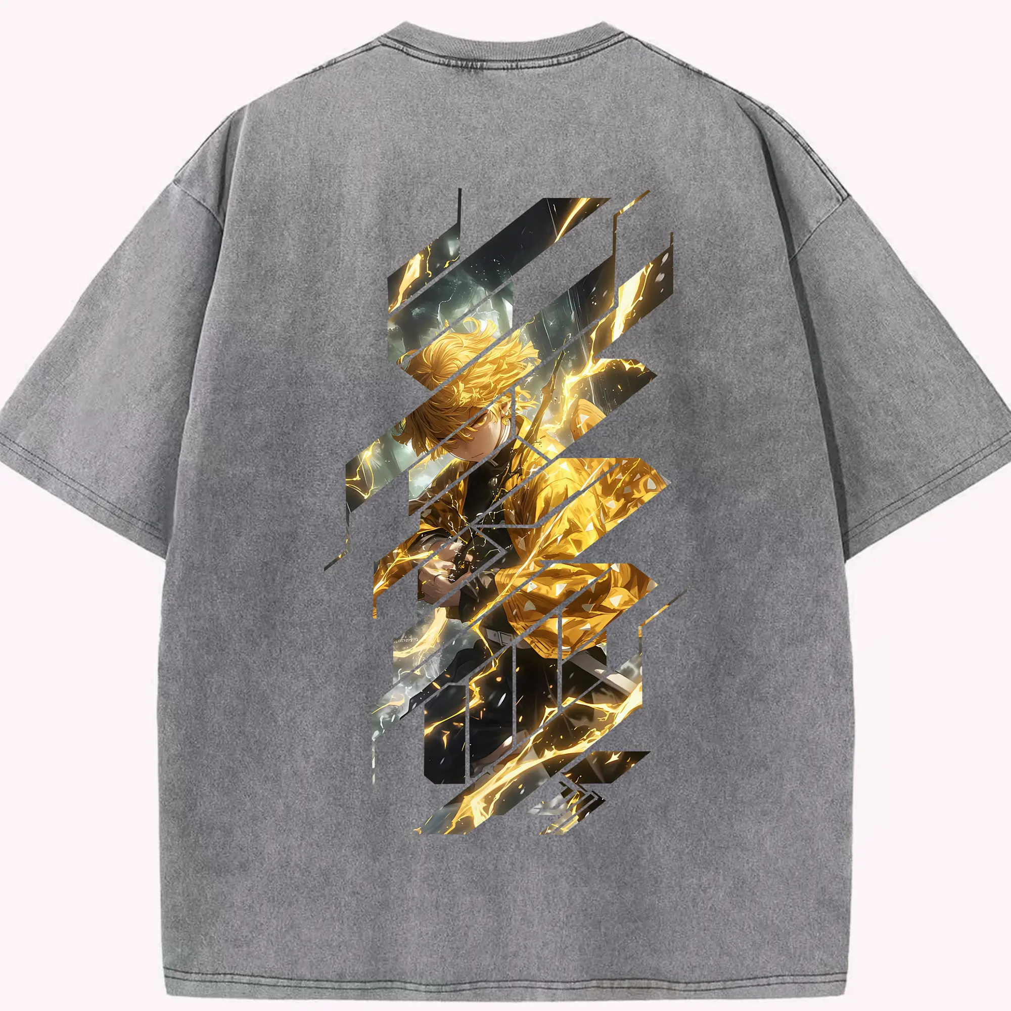 鬼滅の刃 グッズ,我妻 善逸 - 綿100% 半袖Tシャツ ・ バックプリント ・ 快適 通気性 ・ 日常使い 散歩 スポーツ用