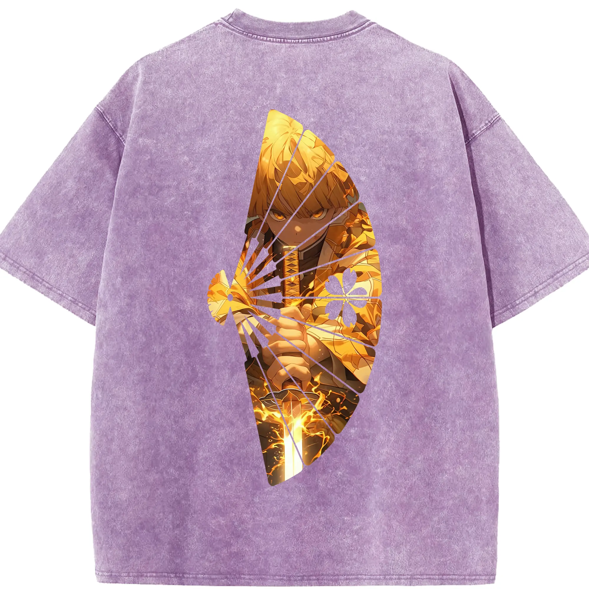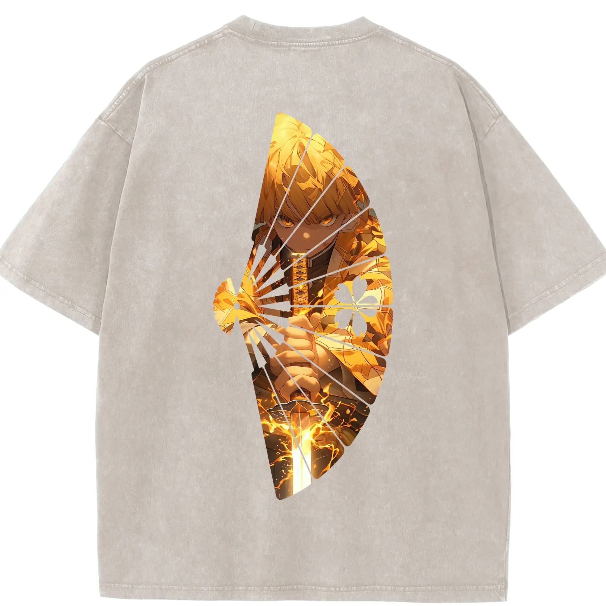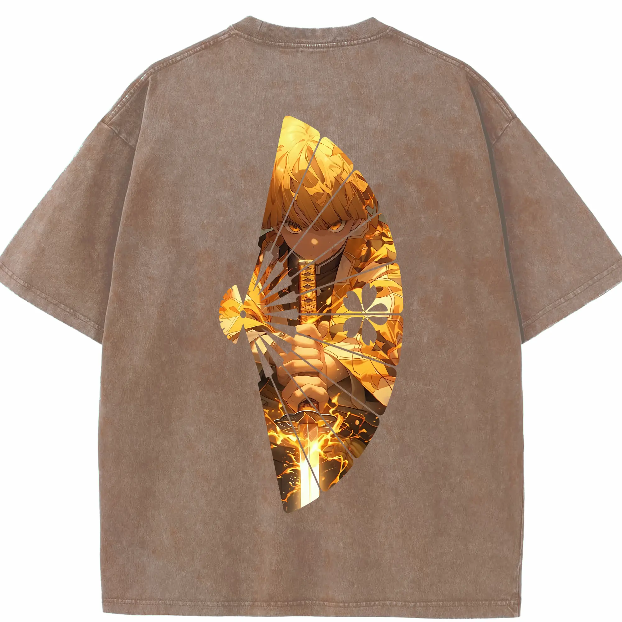 鬼滅の刃 グッズ,煉獄 杏寿郎 - 綿100% ヴィンテージ風 半袖Tシャツ ・ 背面プリント ・ 柔らか肌触り ・ 通気性 快適 ・ スポーツ カジュアル 外出用