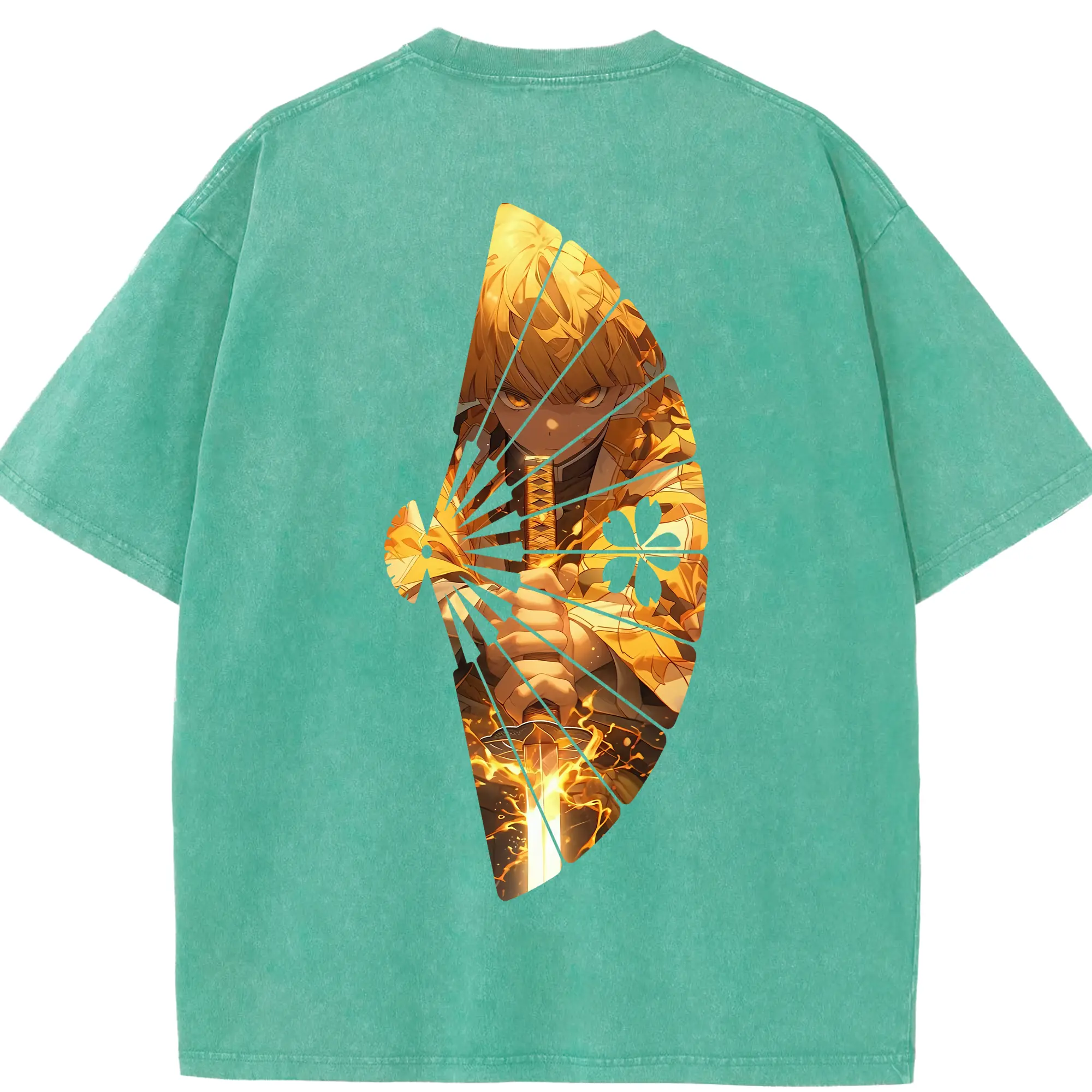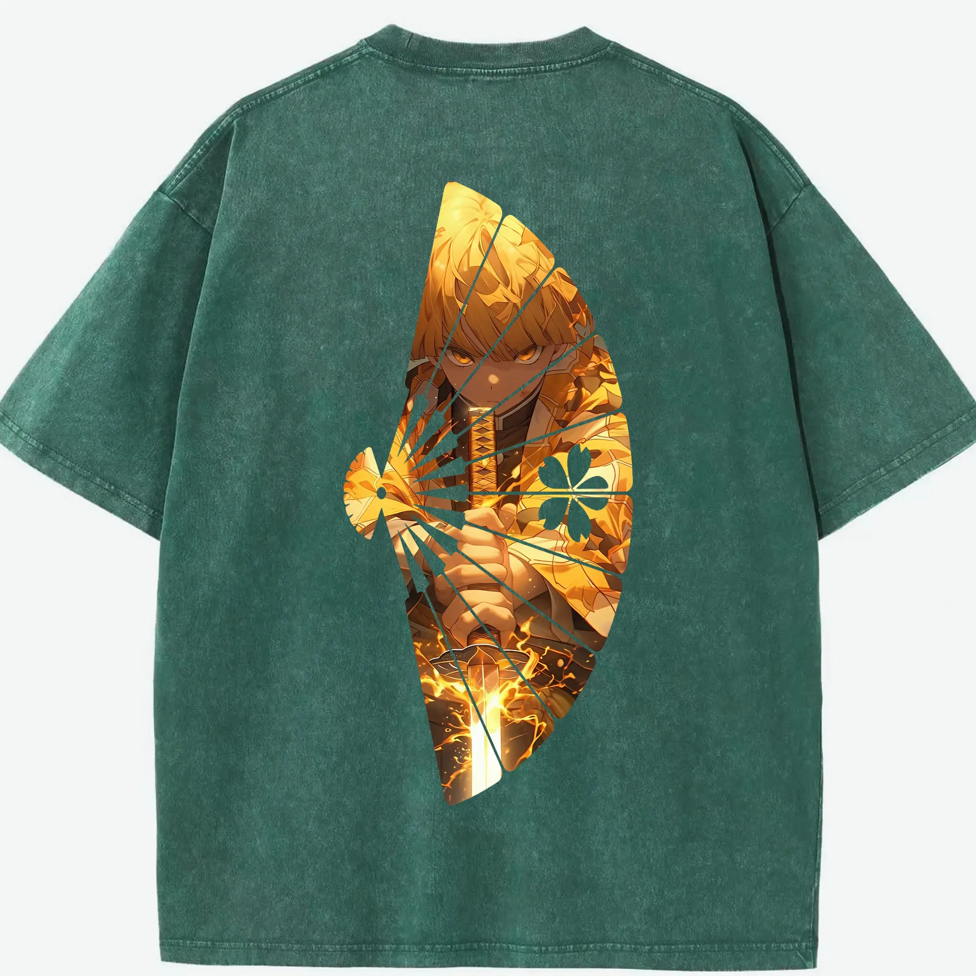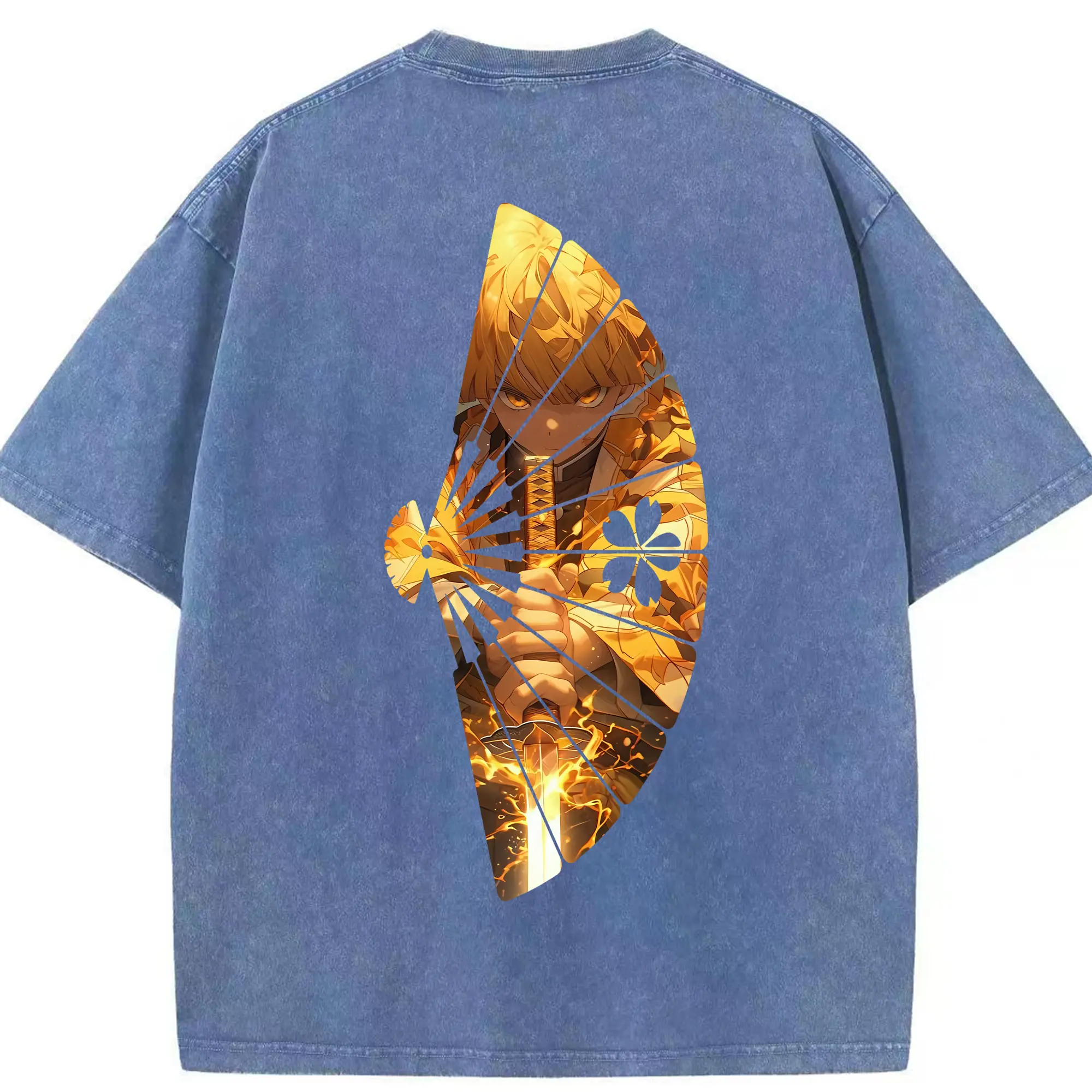鬼滅の刃 グッズ,煉獄 杏寿郎 - 綿100% ヴィンテージ風 半袖Tシャツ ・ 背面プリント ・ 柔らか肌触り ・ 通気性 快適 ・ スポーツ カジュアル 外出用