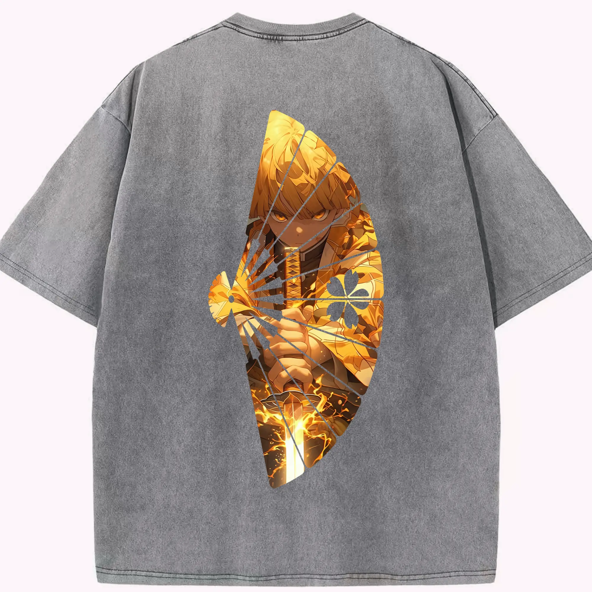 鬼滅の刃 グッズ,我妻 善逸 - 綿100% 半袖Tシャツ ・ バックプリント ・ 快適 通気性 ・ 日常使い 散歩 スポーツ用