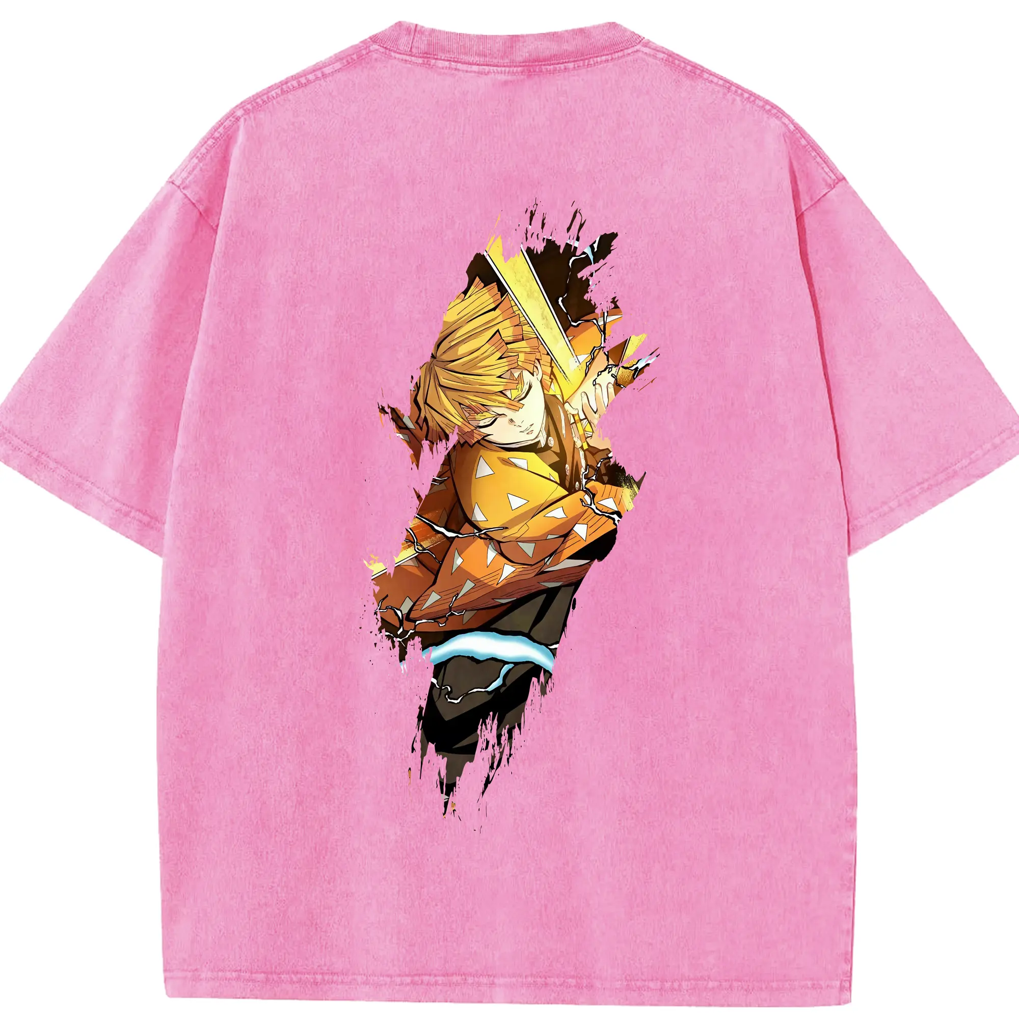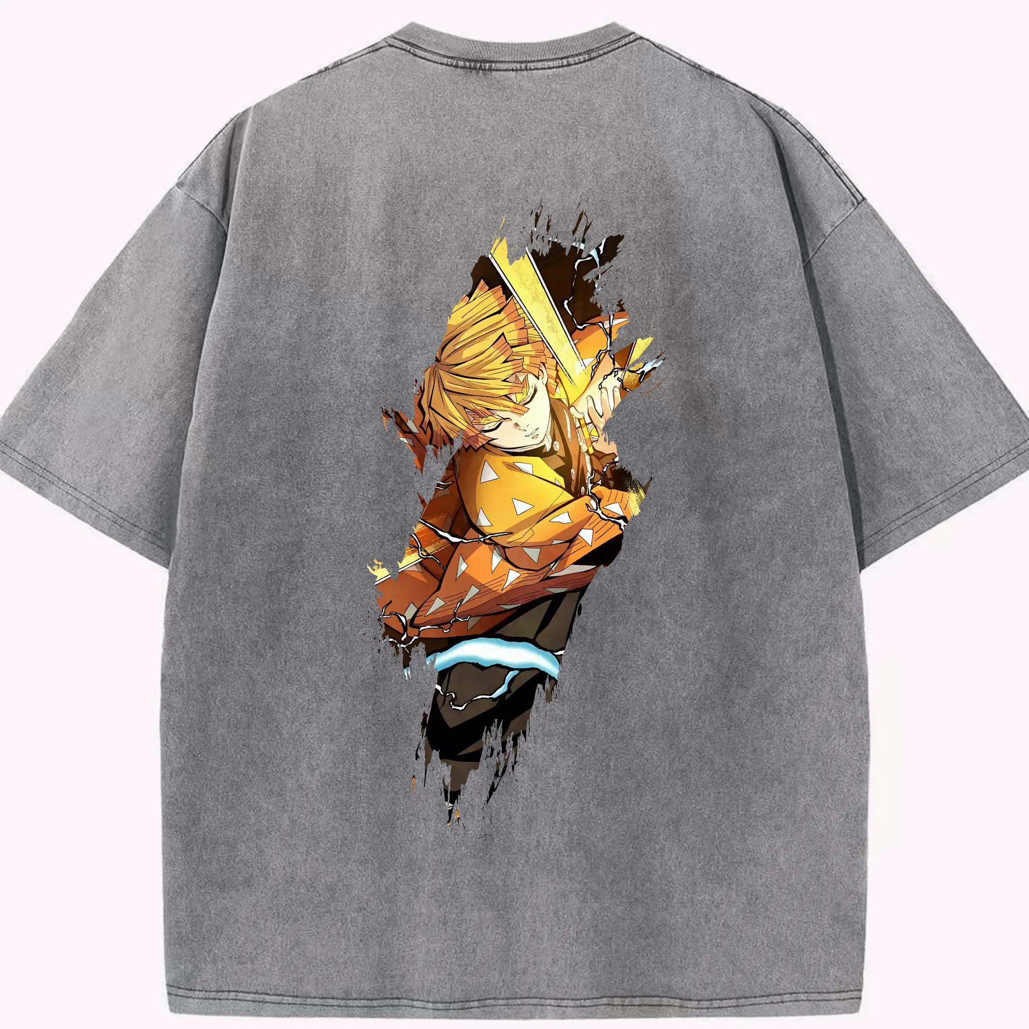 鬼滅の刃 グッズ,我妻 善逸 - 綿100% 半袖Tシャツ ・ バックプリント ・ 快適 通気性 ・ 日常使い 散歩 スポーツ用