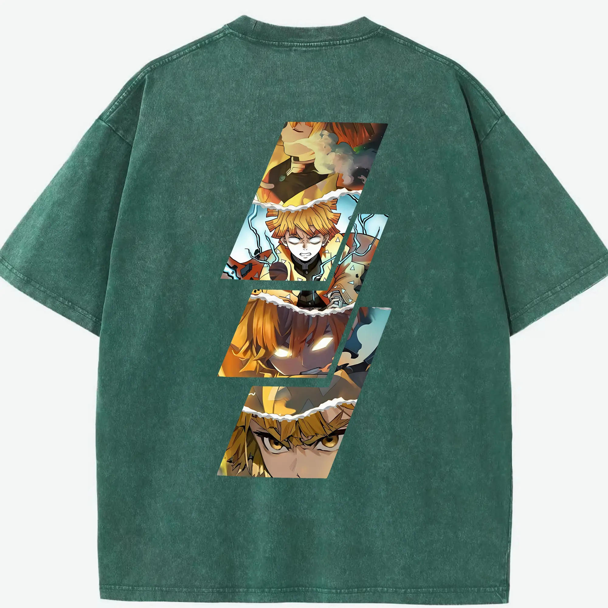 鬼滅の刃 グッズ,我妻 善逸 - 綿100% 半袖Tシャツ ・ フロントプリント ・ 快適 通気性 ・ 日常使い 散歩 スポーツ用