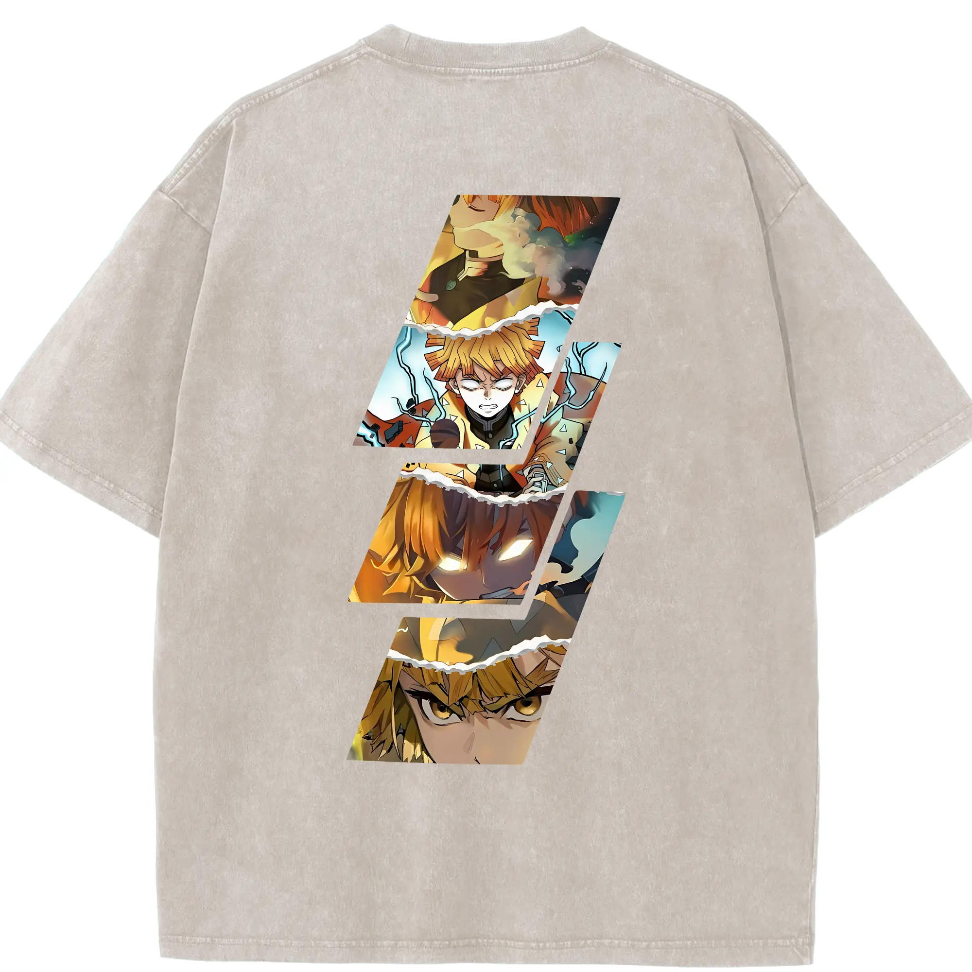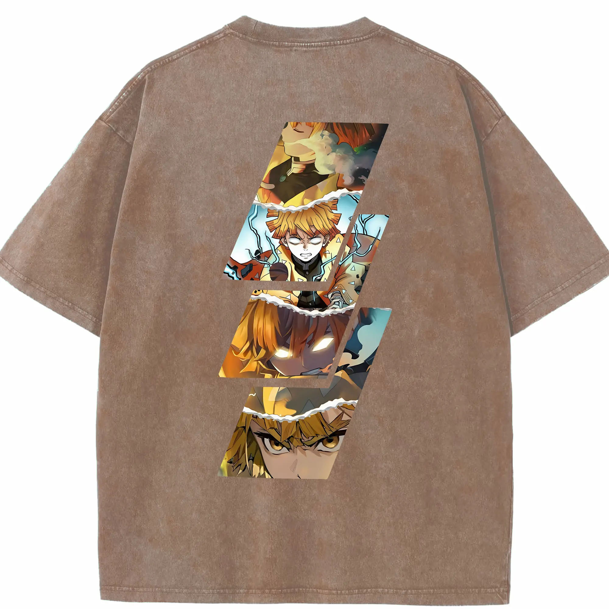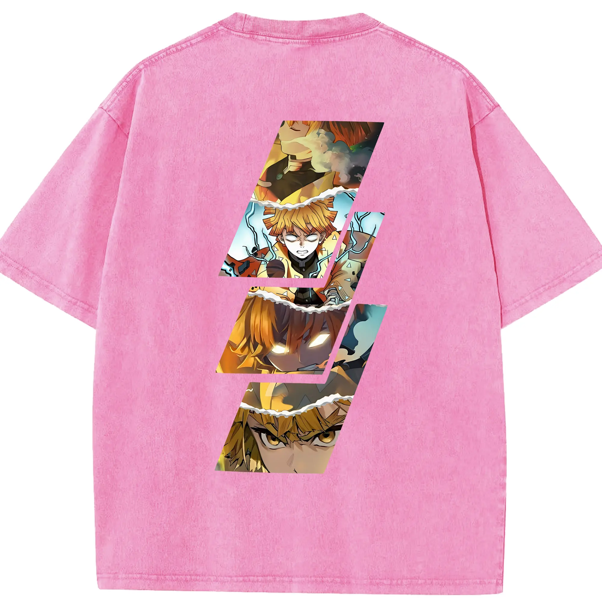 鬼滅の刃 グッズ,我妻 善逸 - 綿100% 半袖Tシャツ ・ バックプリント ・ 快適 通気性 ・ 日常使い 散歩 スポーツ用