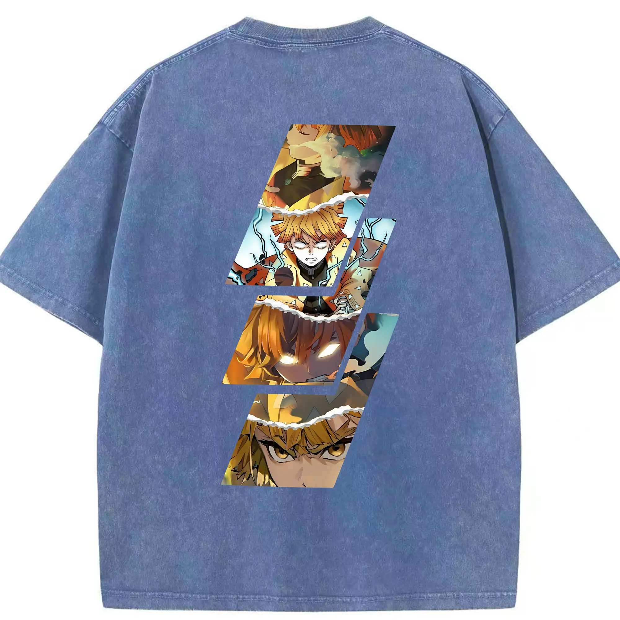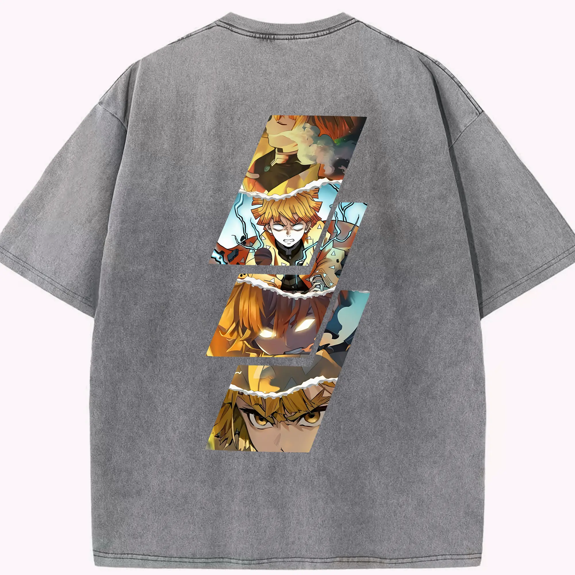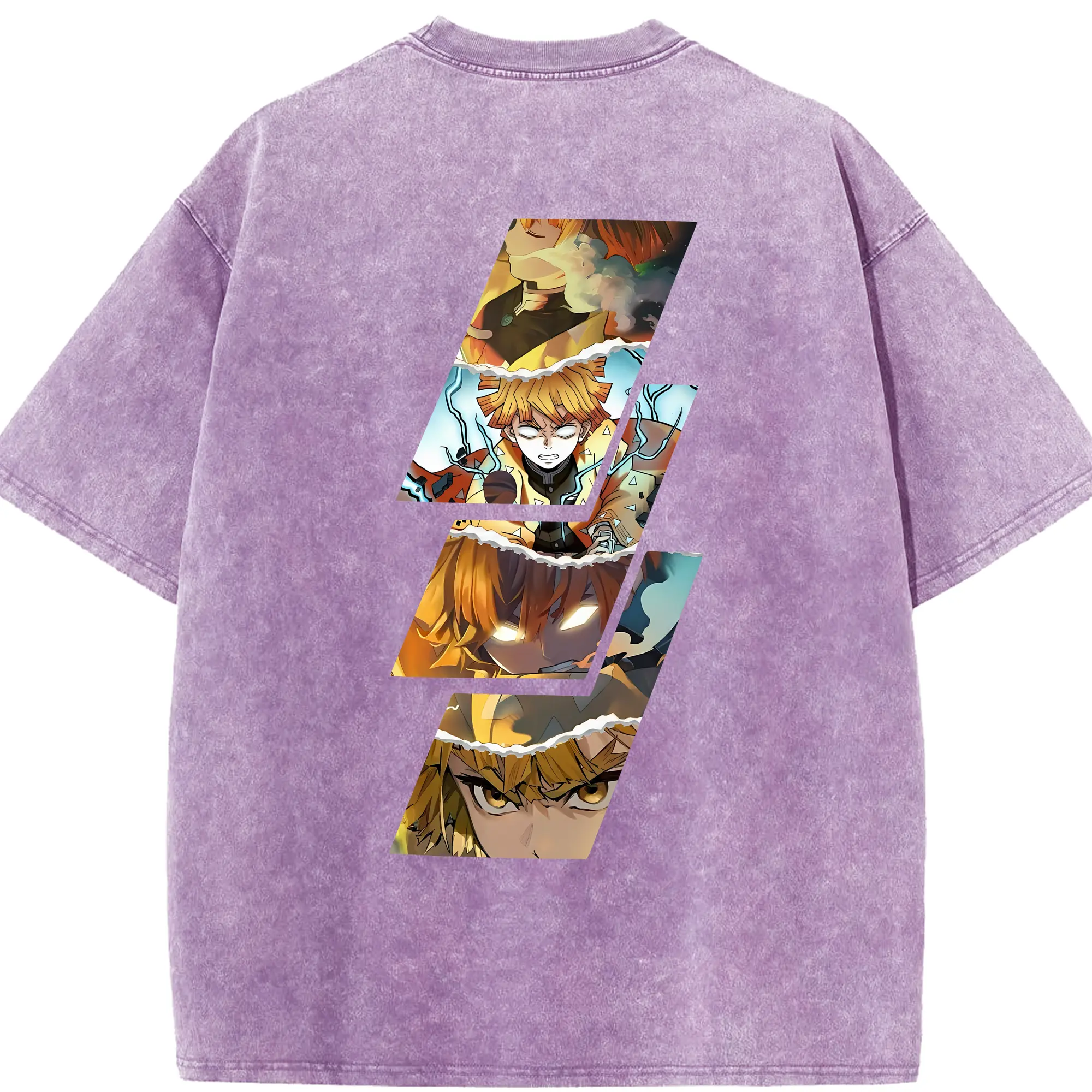 鬼滅の刃 グッズ,我妻 善逸 - 綿100% 半袖Tシャツ ・ バックプリント ・ 快適 通気性 ・ 日常使い 散歩 スポーツ用