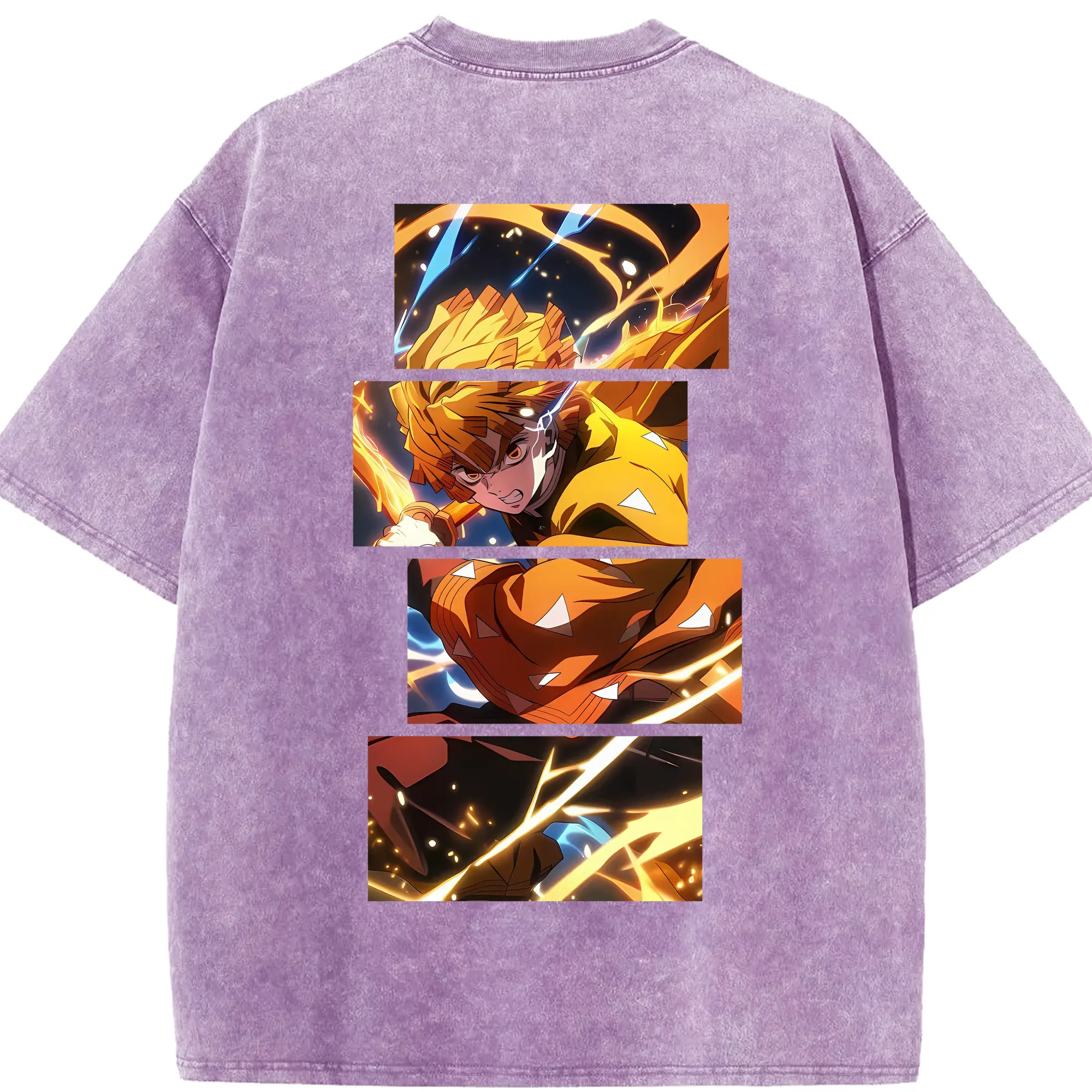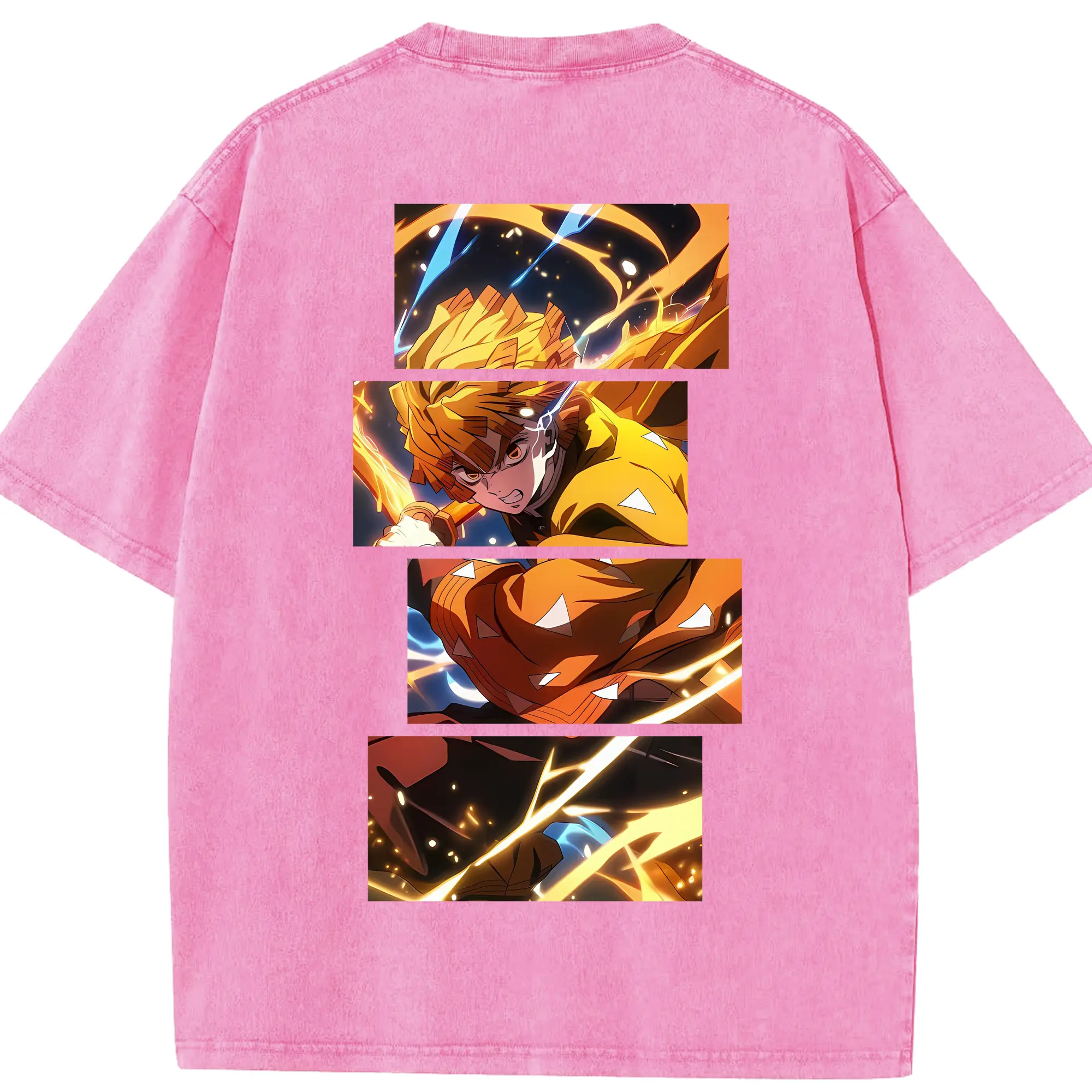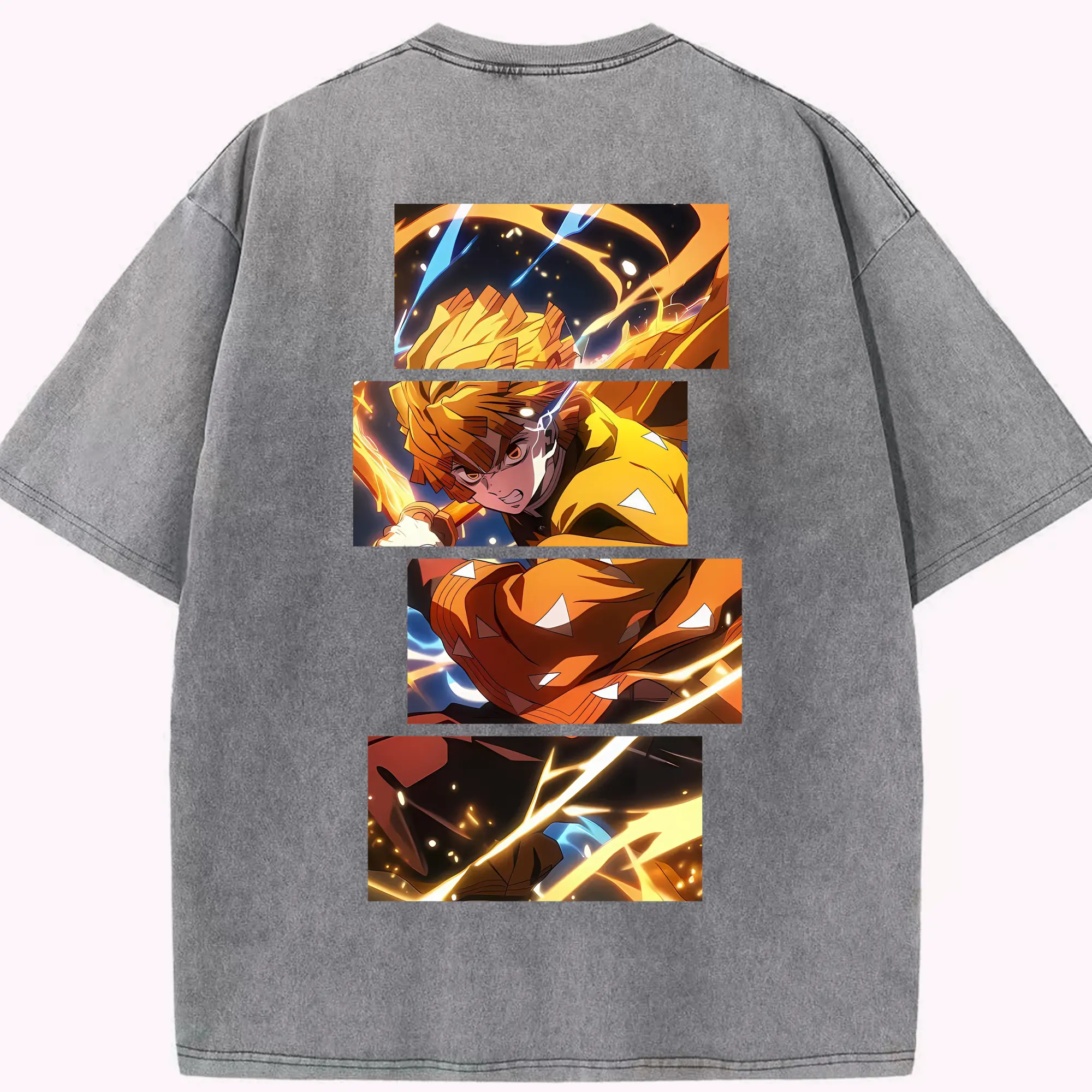 鬼滅の刃 グッズ,我妻 善逸 - 綿100% 半袖Tシャツ ・ バックプリント ・ 快適 通気性 ・ 日常使い 散歩 スポーツ用