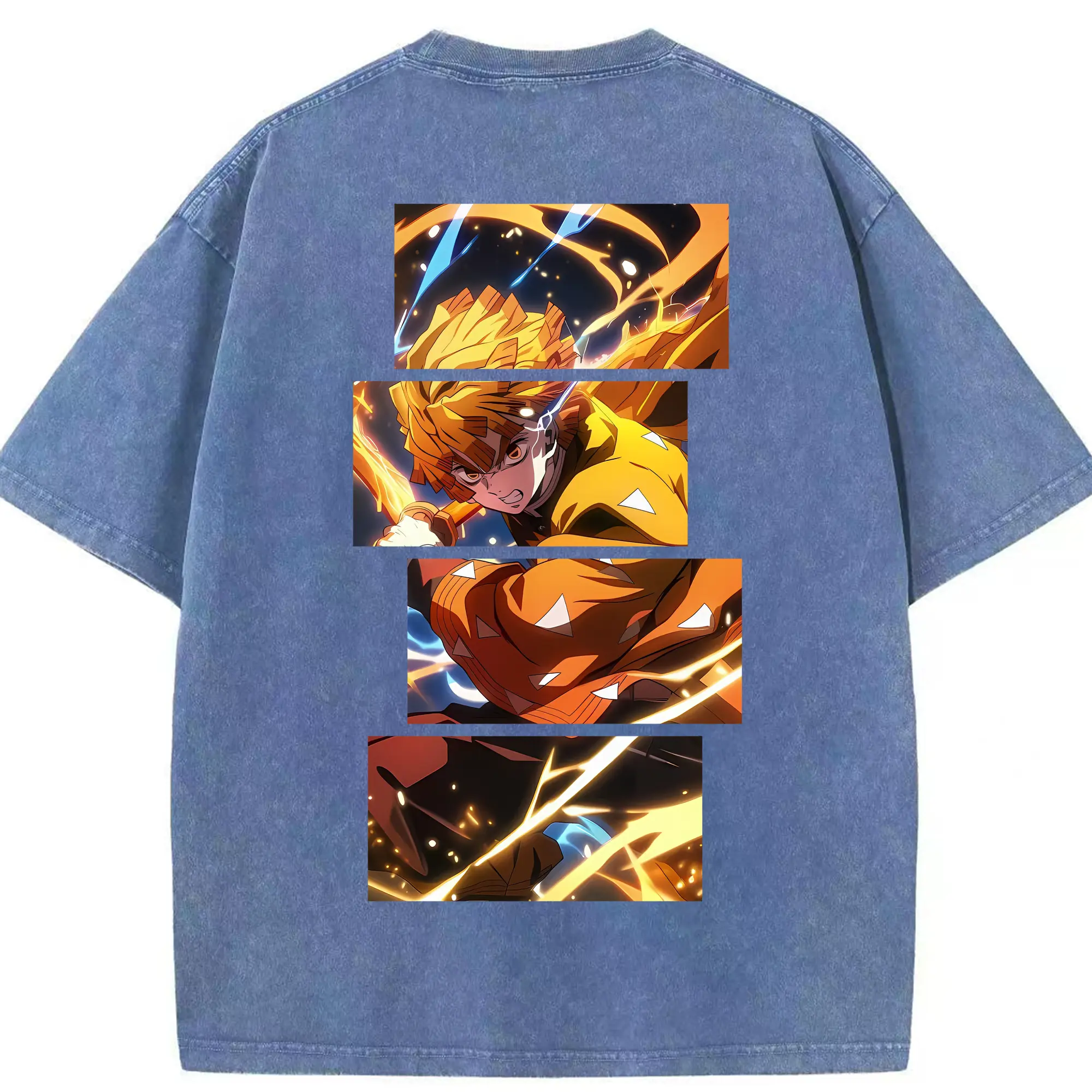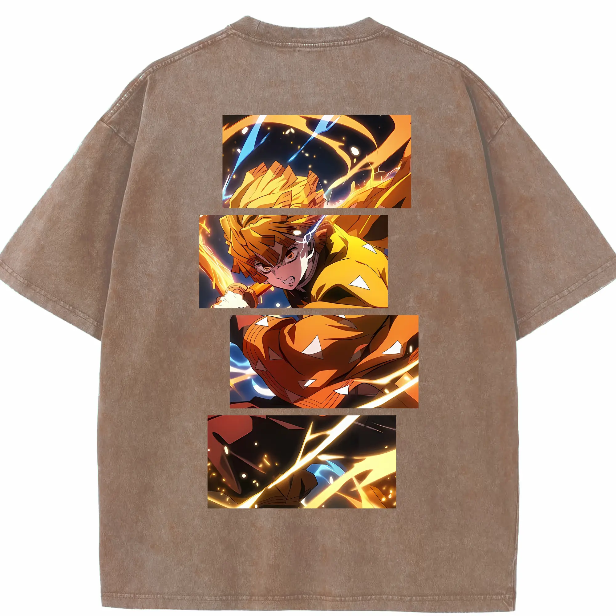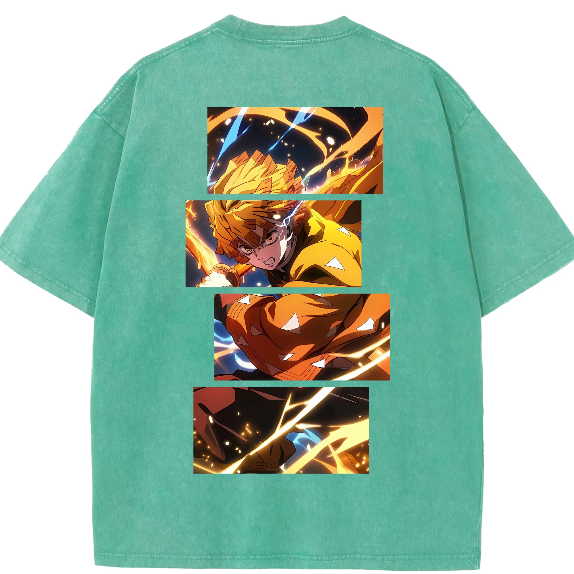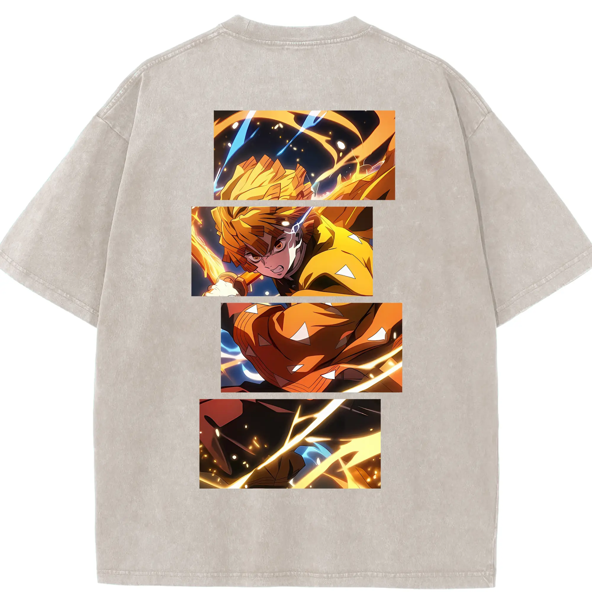 鬼滅の刃 グッズ,我妻 善逸 - 綿100% 半袖Tシャツ ・ バックプリント ・ 快適 通気性 ・ 日常使い 散歩 スポーツ用
