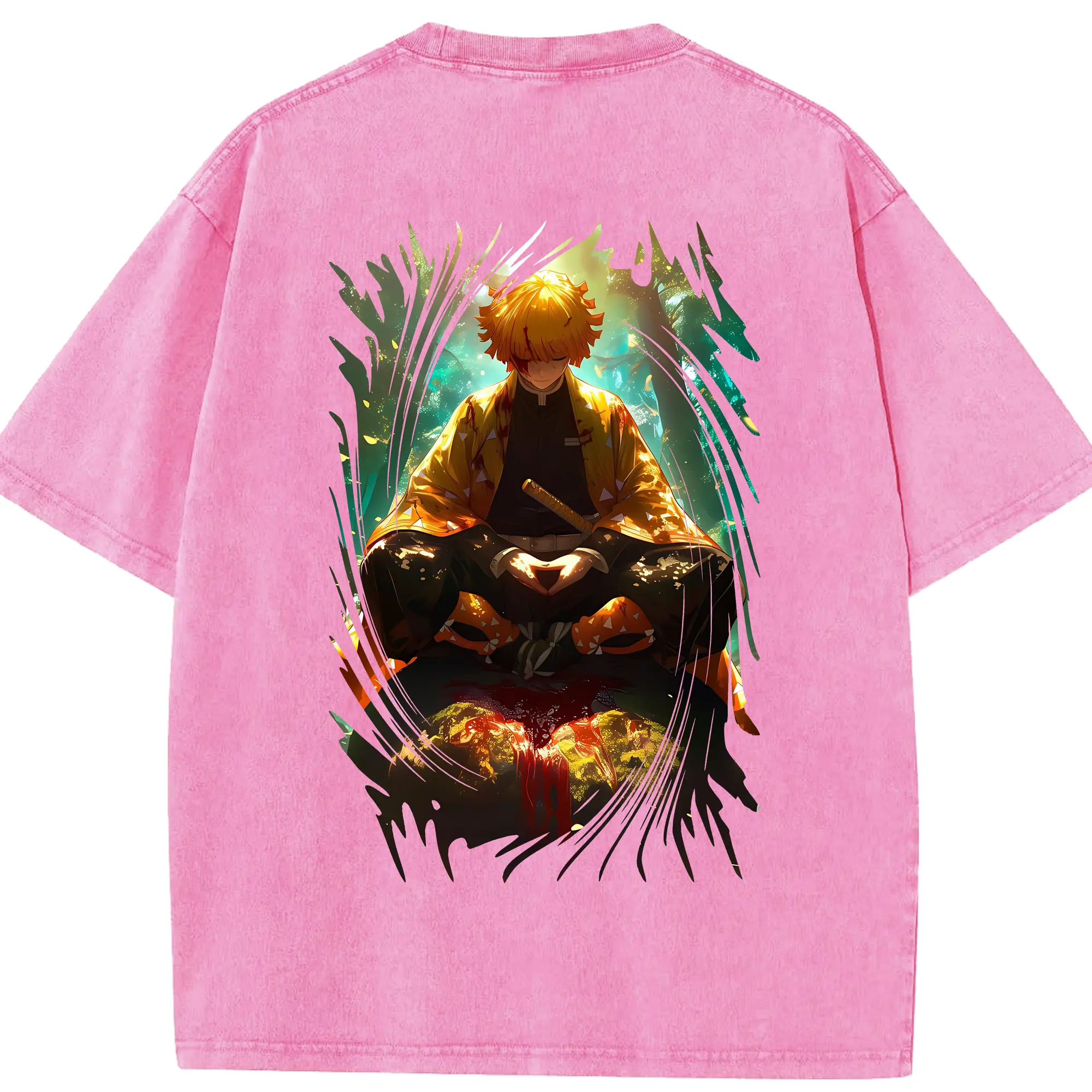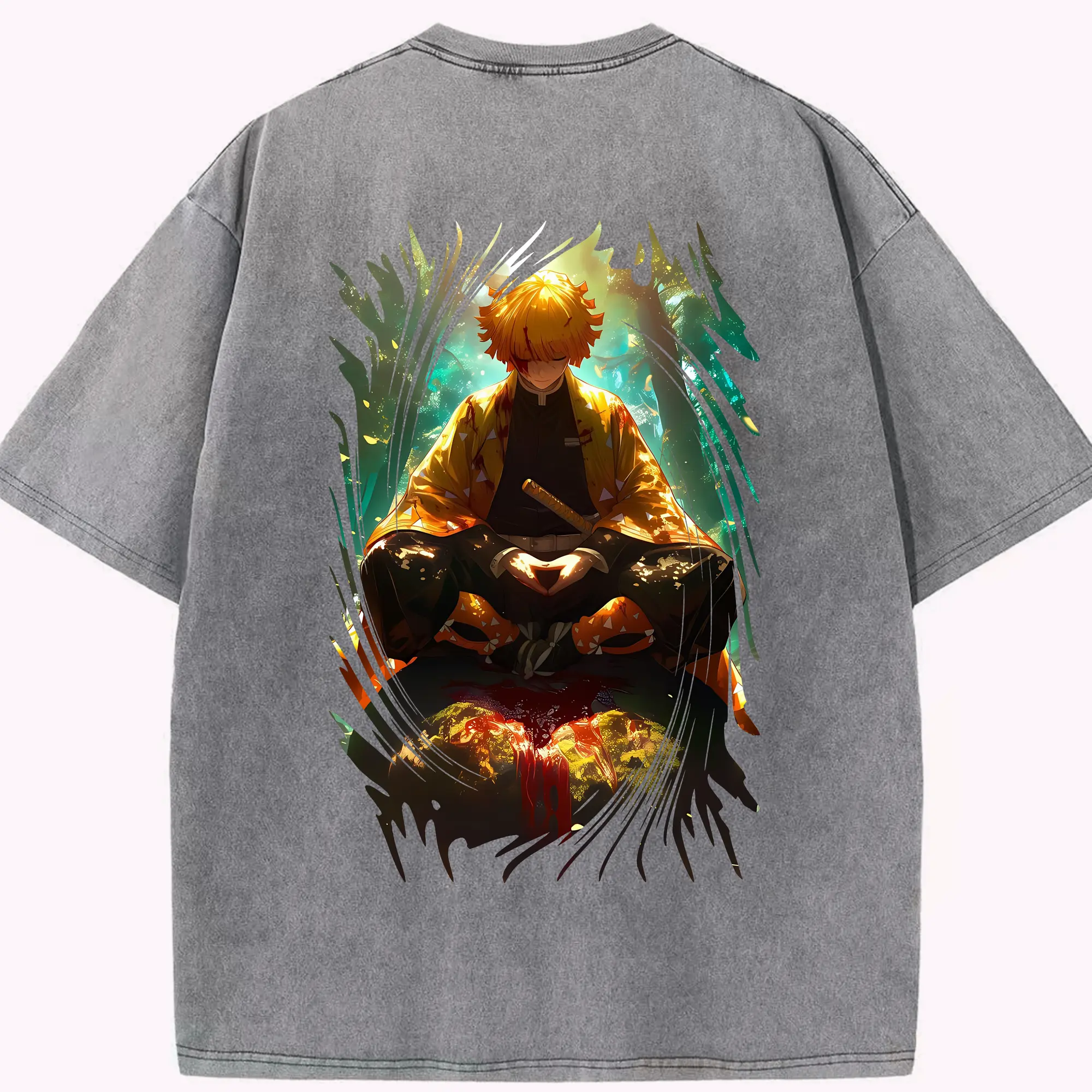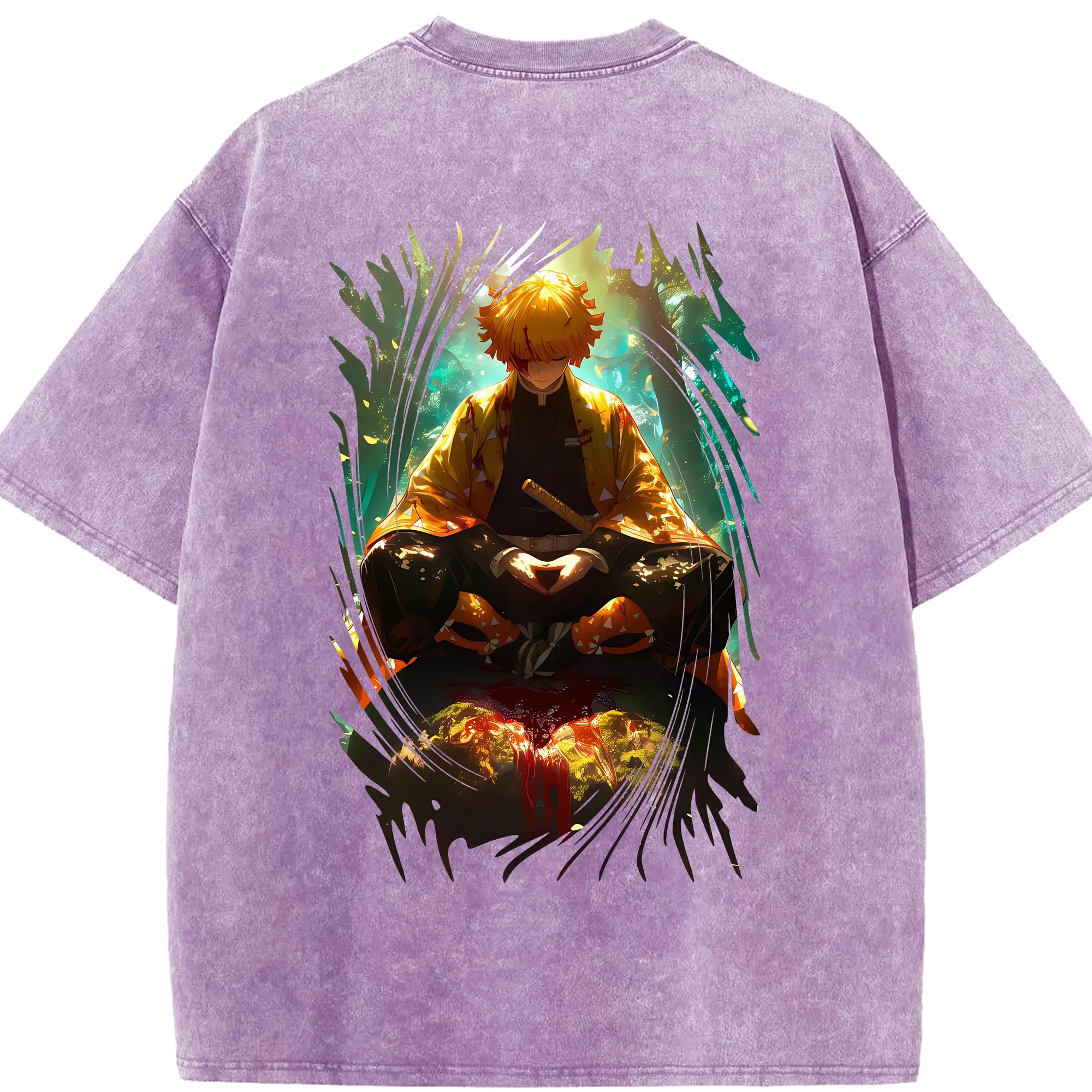 鬼滅の刃 グッズ,我妻 善逸 - 綿100% 半袖Tシャツ ・ バックプリント ・ 快適 通気性 ・ 日常使い 散歩 スポーツ用