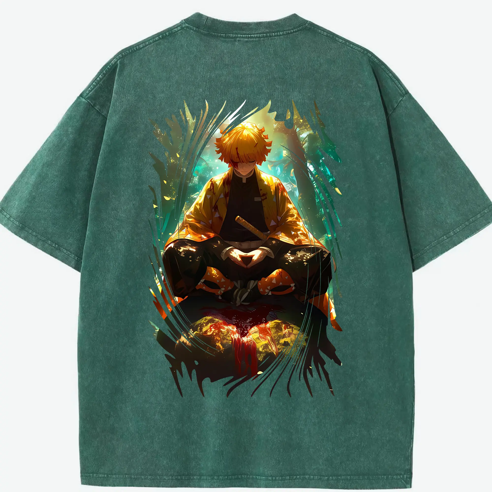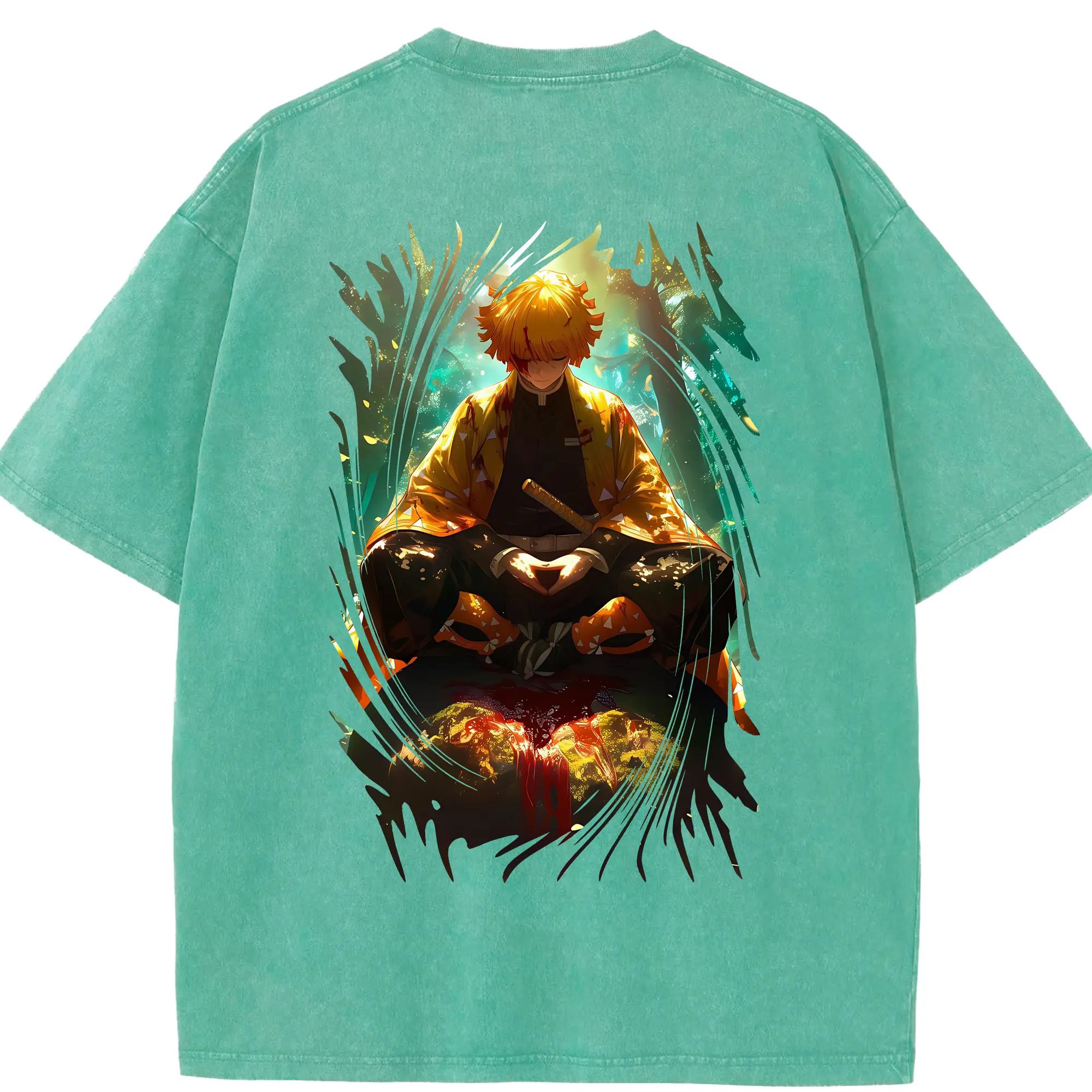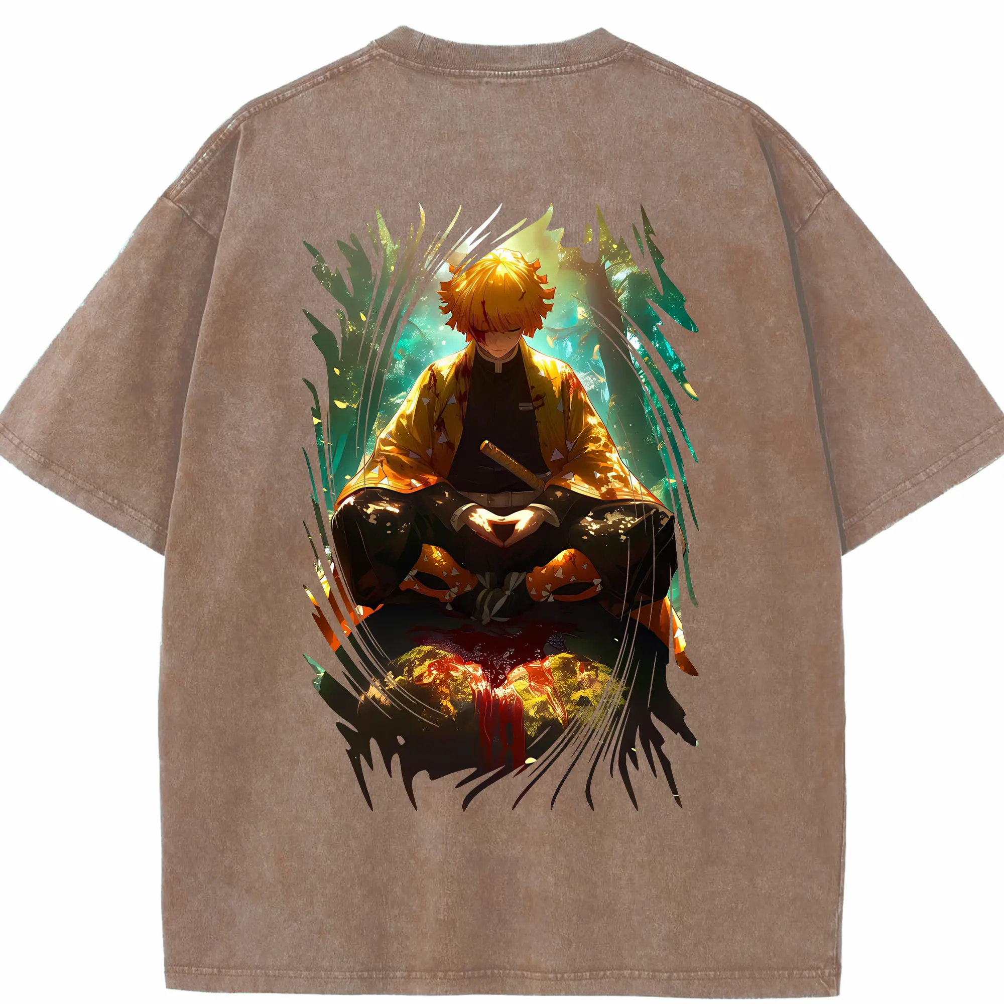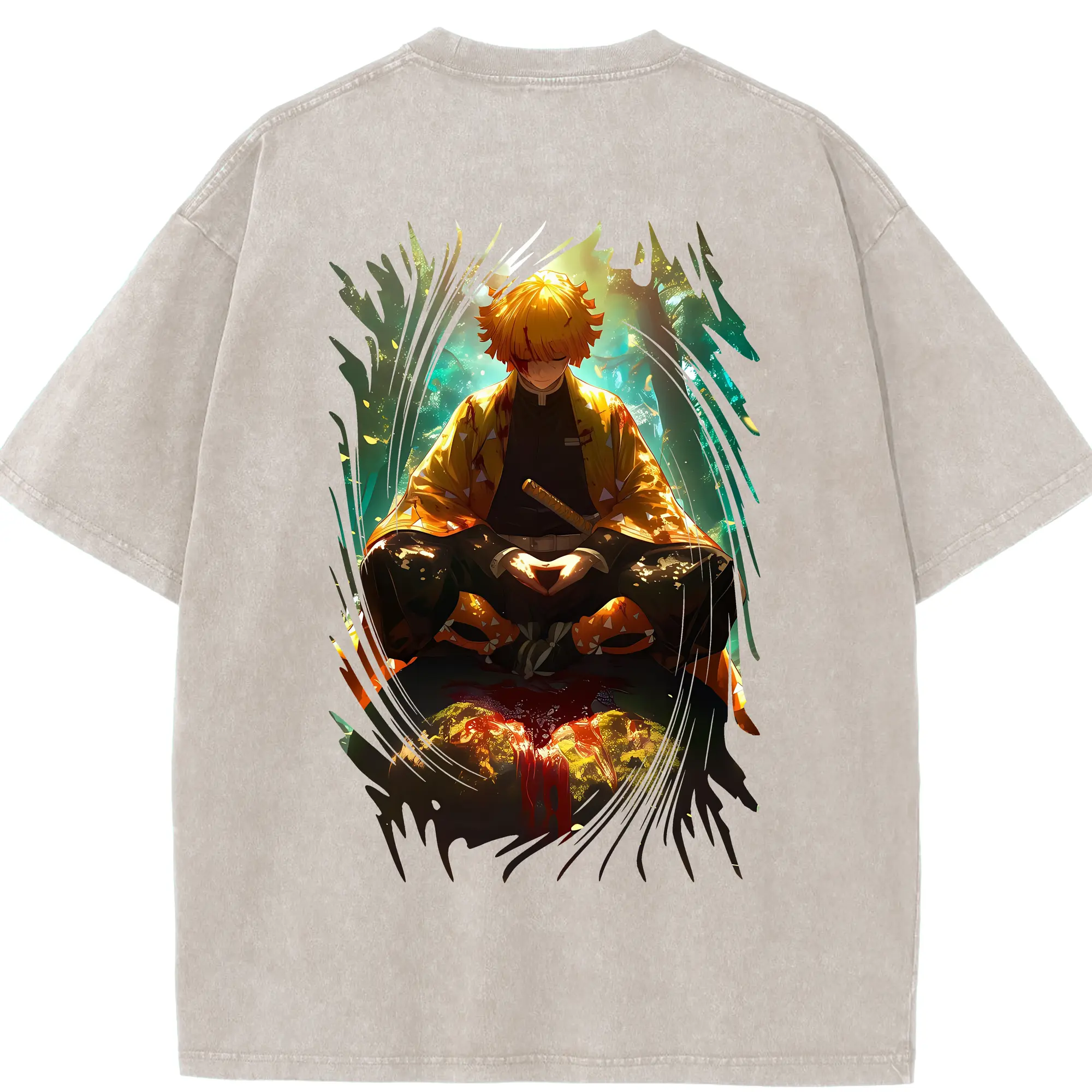 鬼滅の刃 グッズ,我妻 善逸 - 綿100% 半袖Tシャツ ・ バックプリント ・ 快適 通気性 ・ 日常使い 散歩 スポーツ用