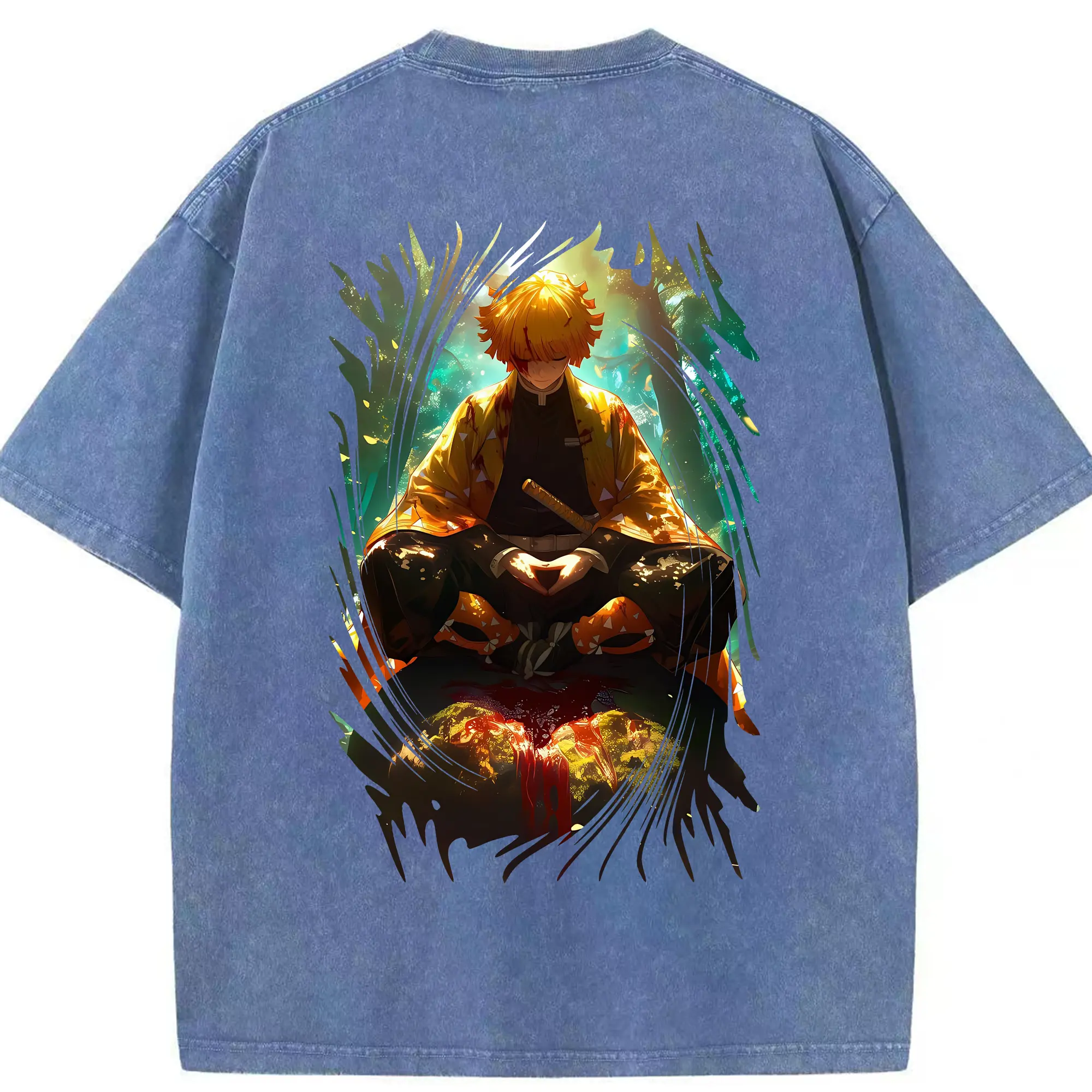 鬼滅の刃 グッズ,我妻 善逸 - 綿100% 半袖Tシャツ ・ フロントプリント ・ 快適 通気性 ・ 日常使い 散歩 スポーツ用