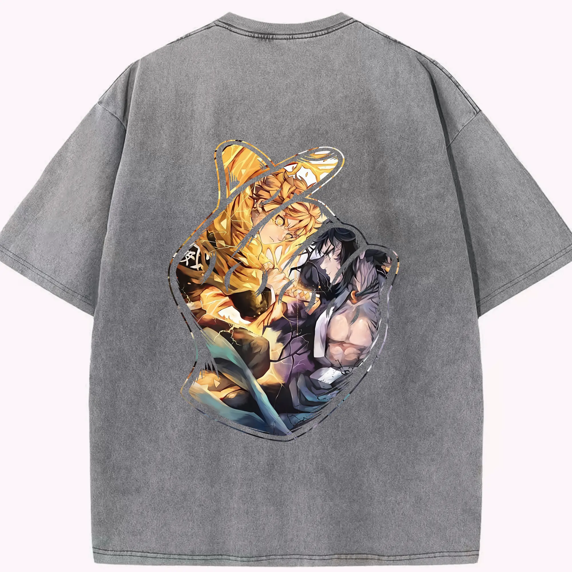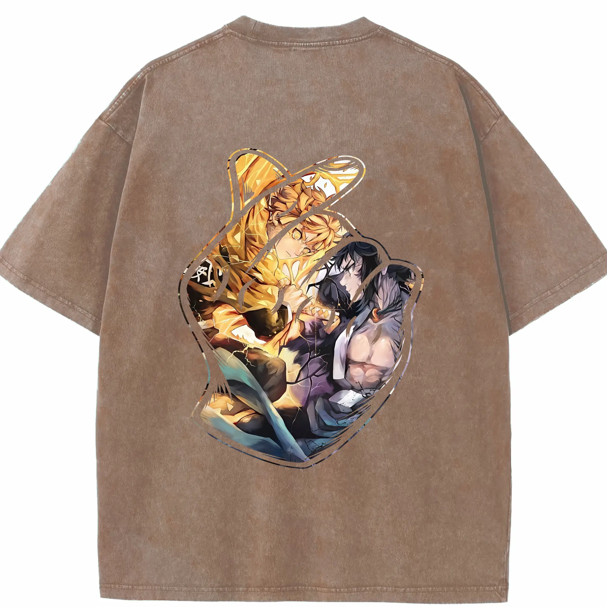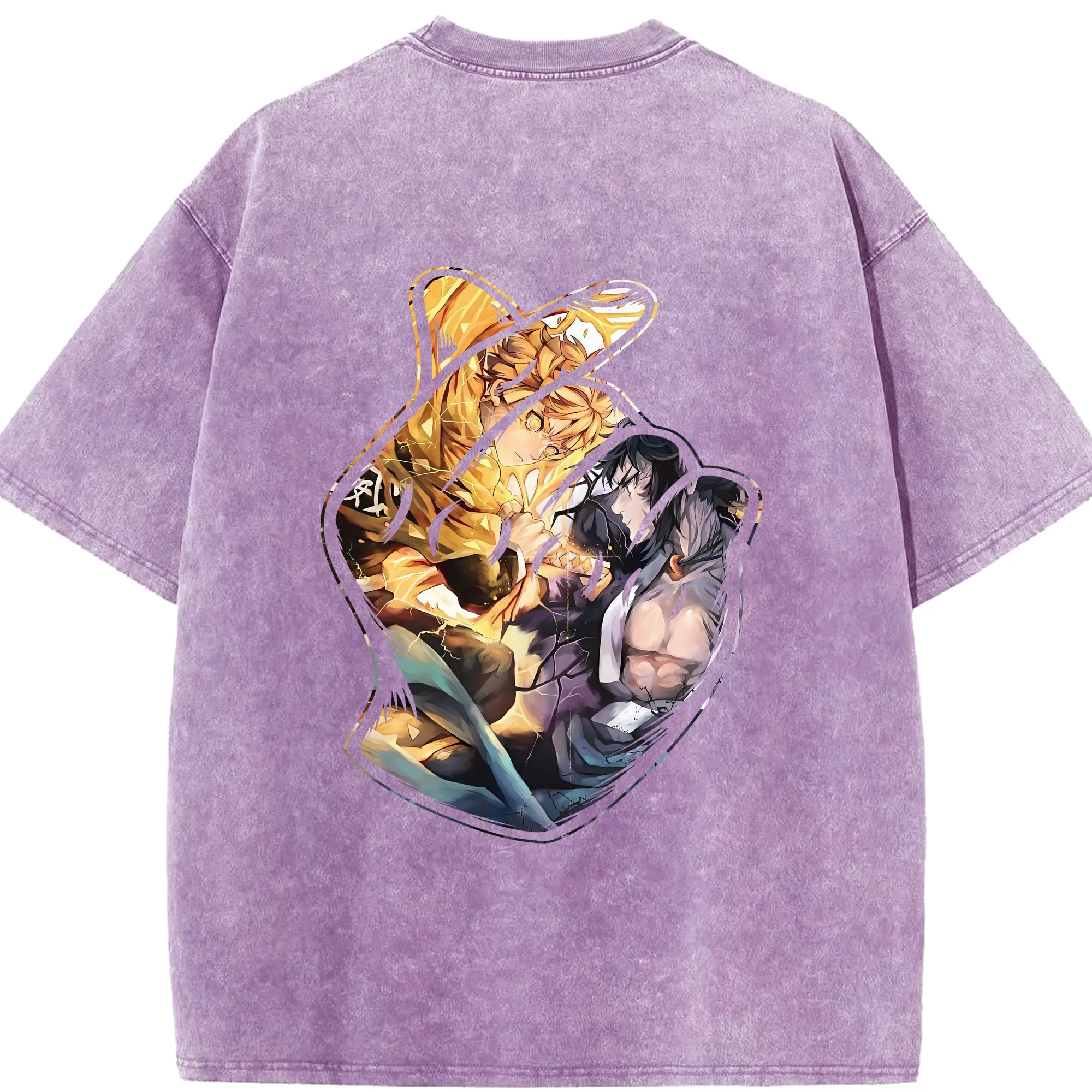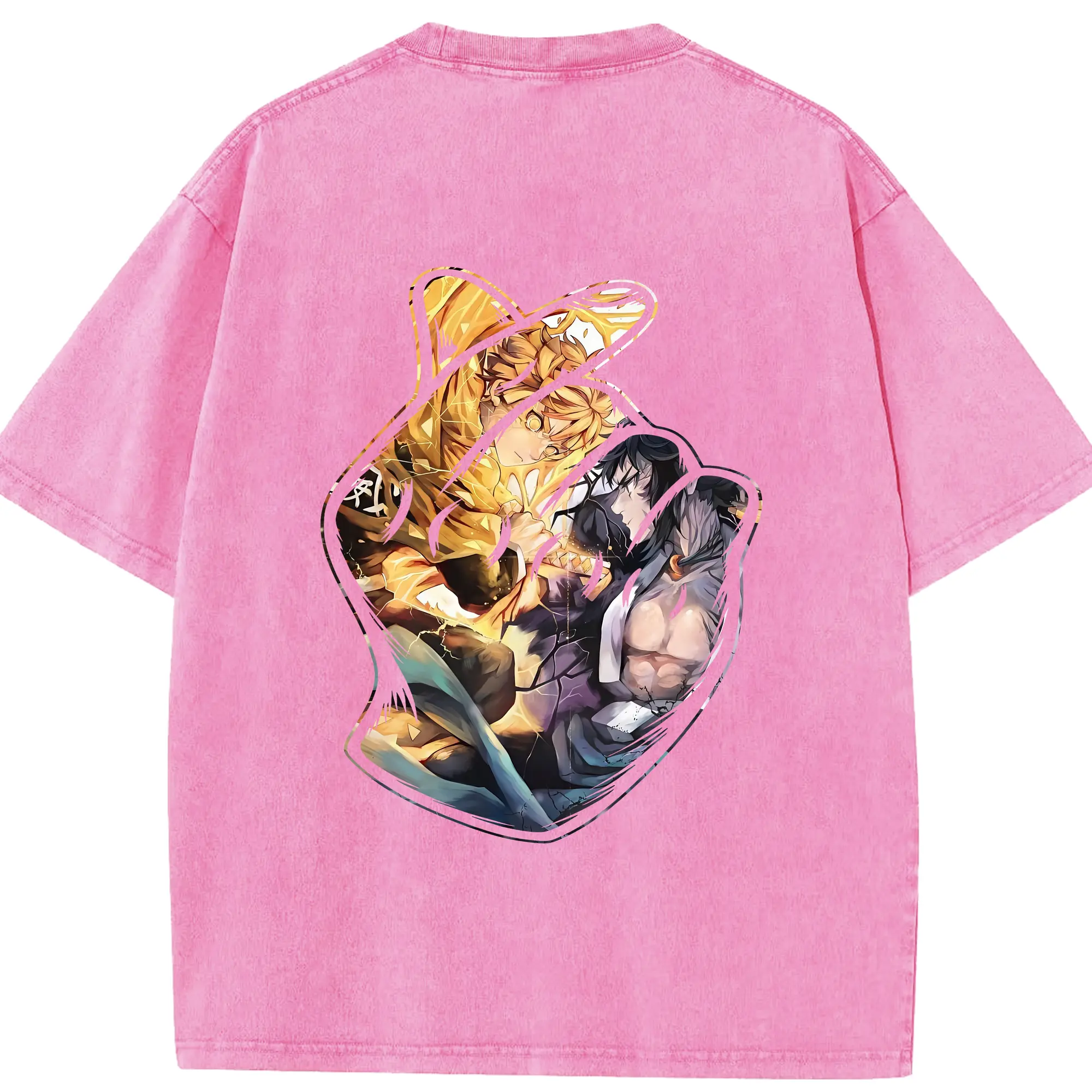 鬼滅の刃 グッズ,我妻 善逸 - 綿100% 半袖Tシャツ ・ バックプリント ・ 快適 通気性 ・ 日常使い 散歩 スポーツ用