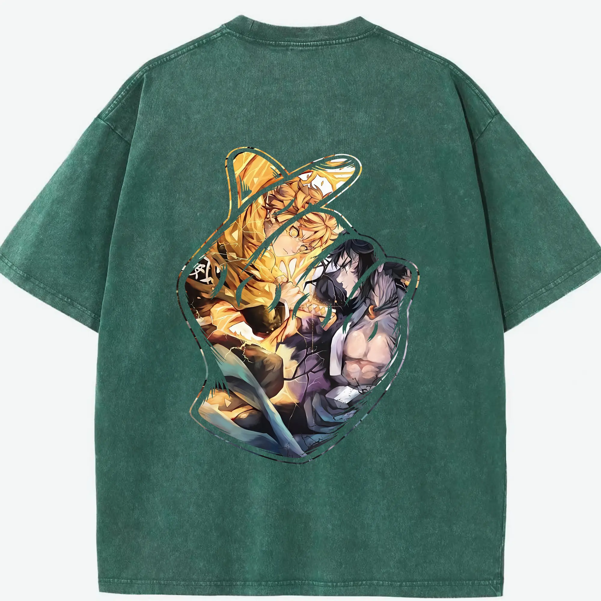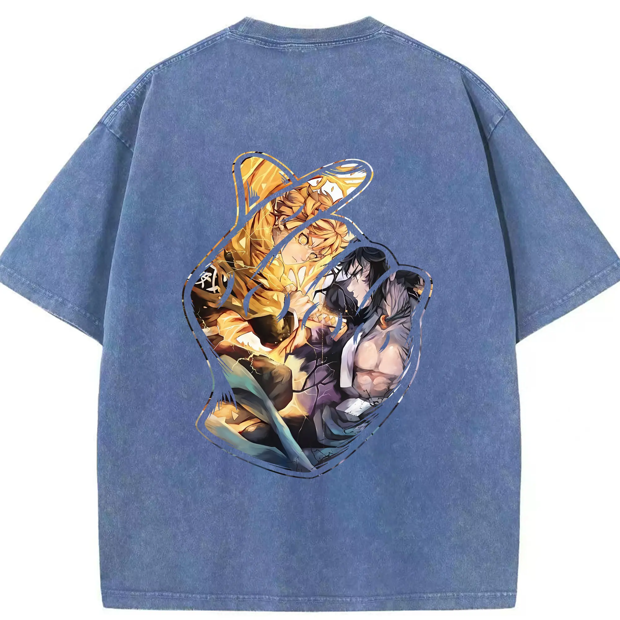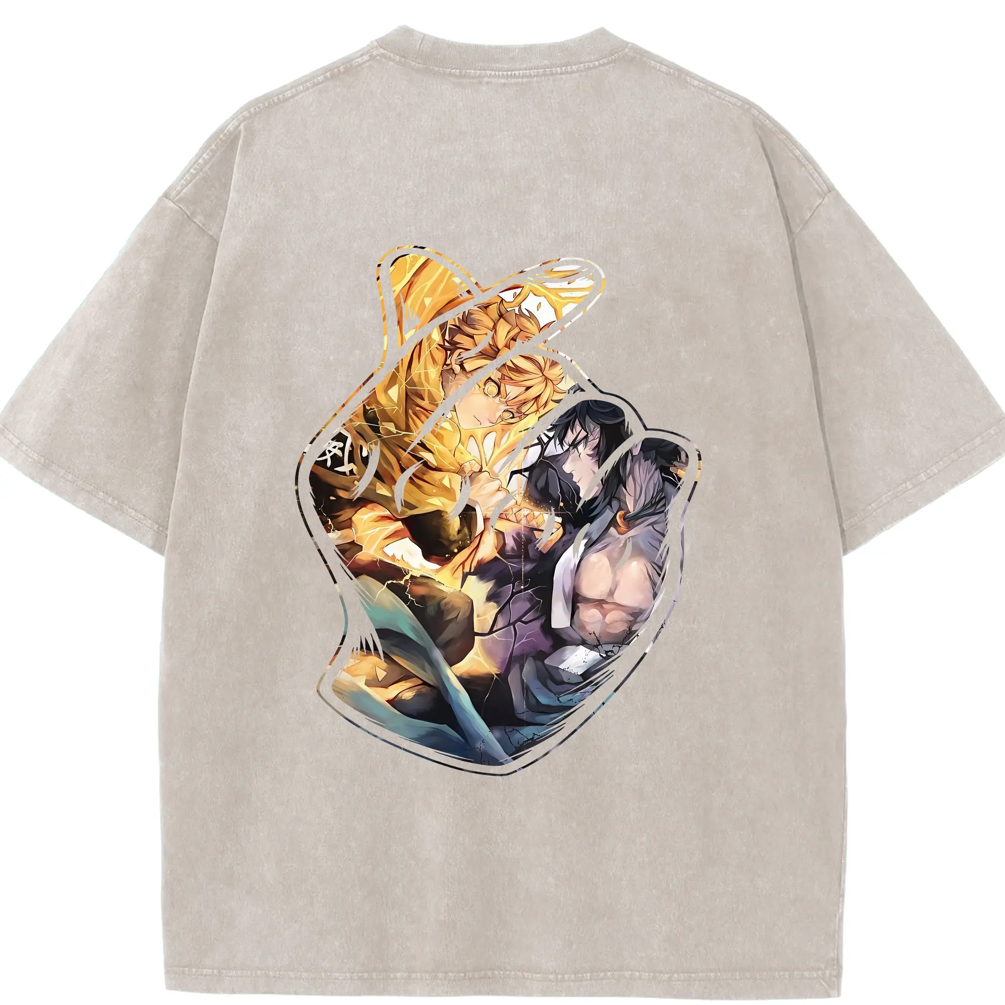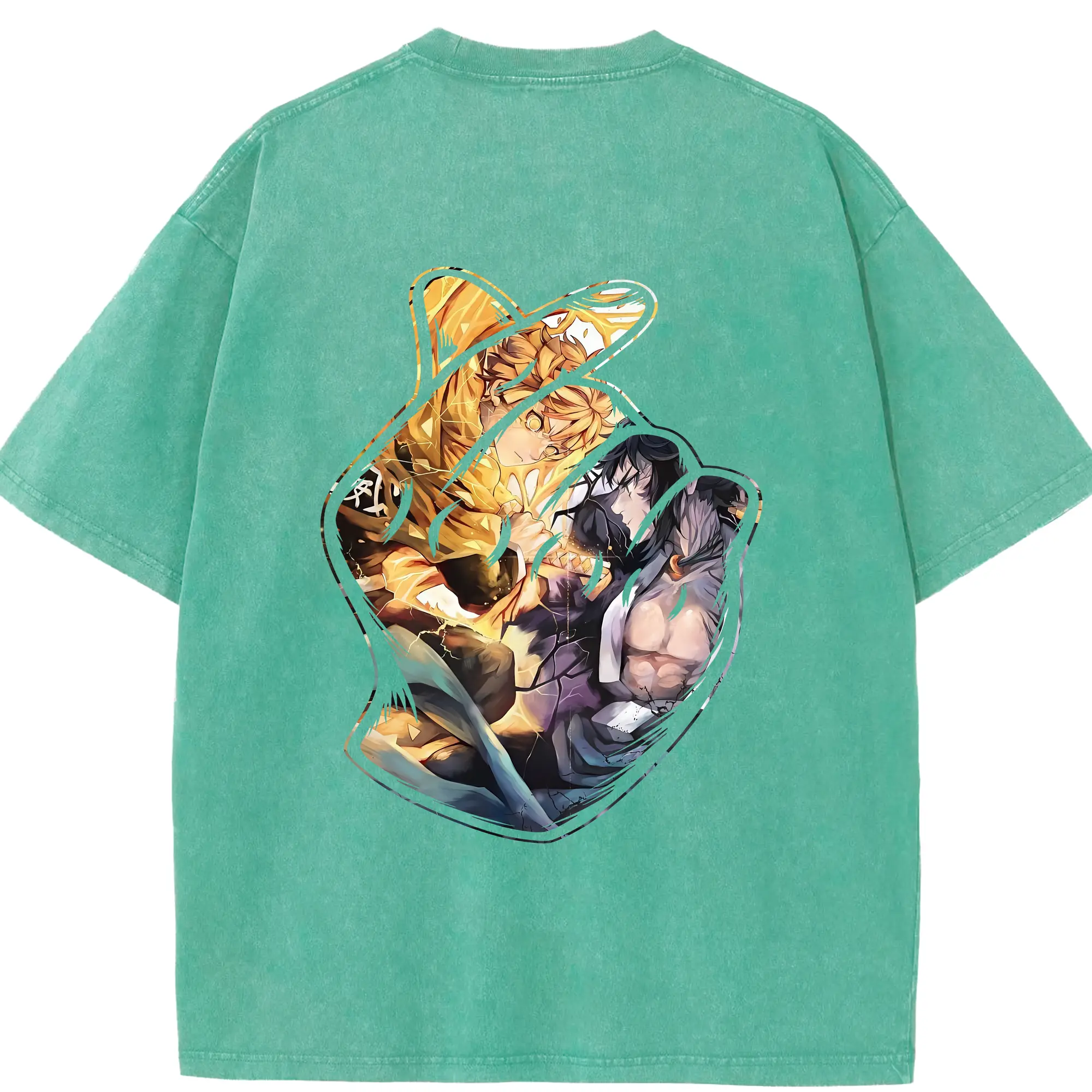 鬼滅の刃 グッズ,我妻 善逸 - 綿100% 半袖Tシャツ ・ バックプリント ・ 快適 通気性 ・ 日常使い 散歩 スポーツ用