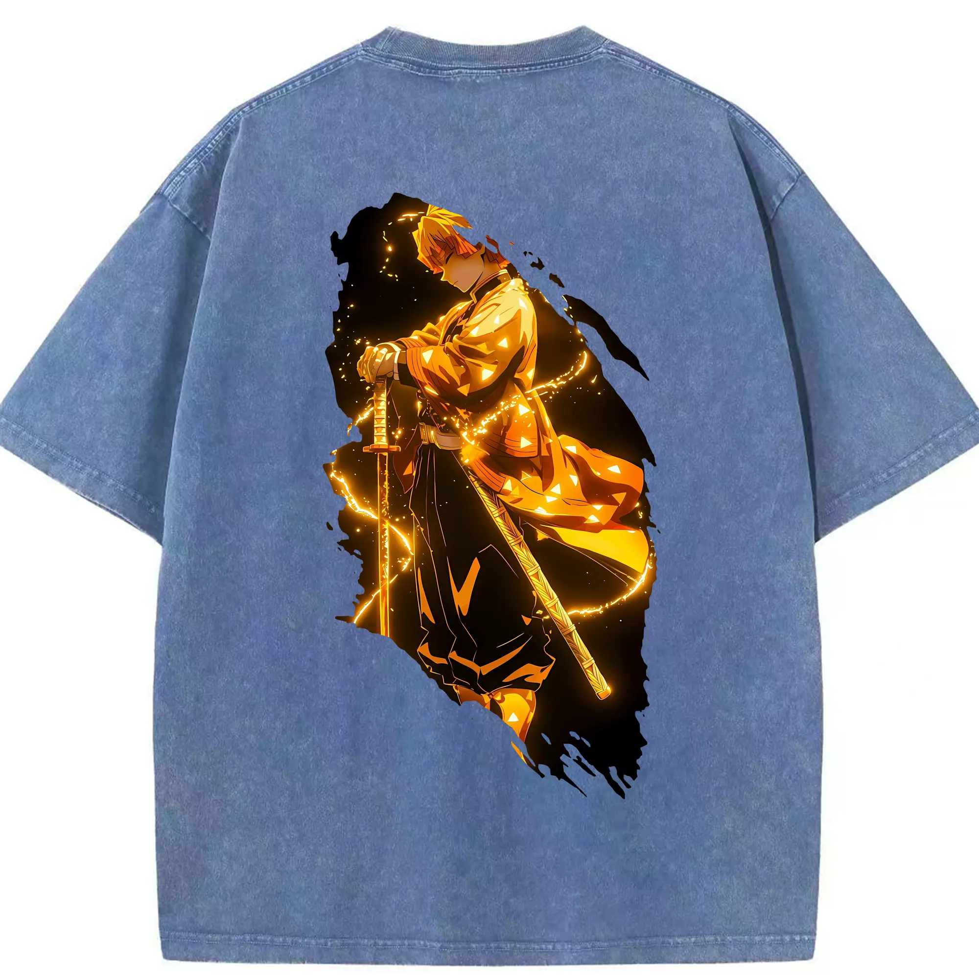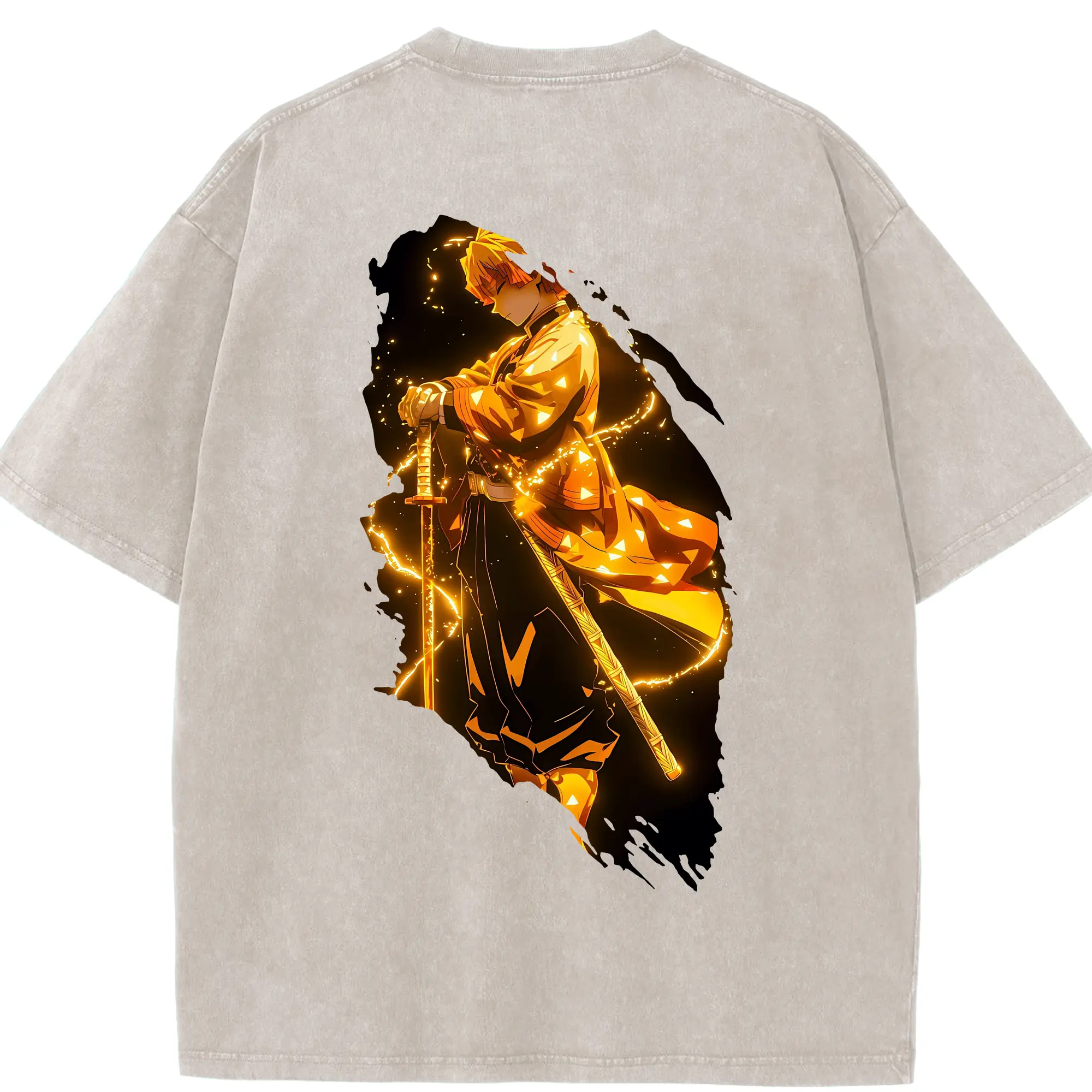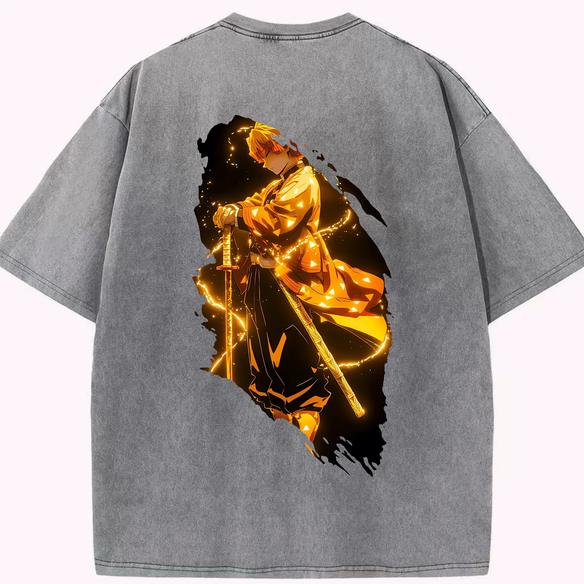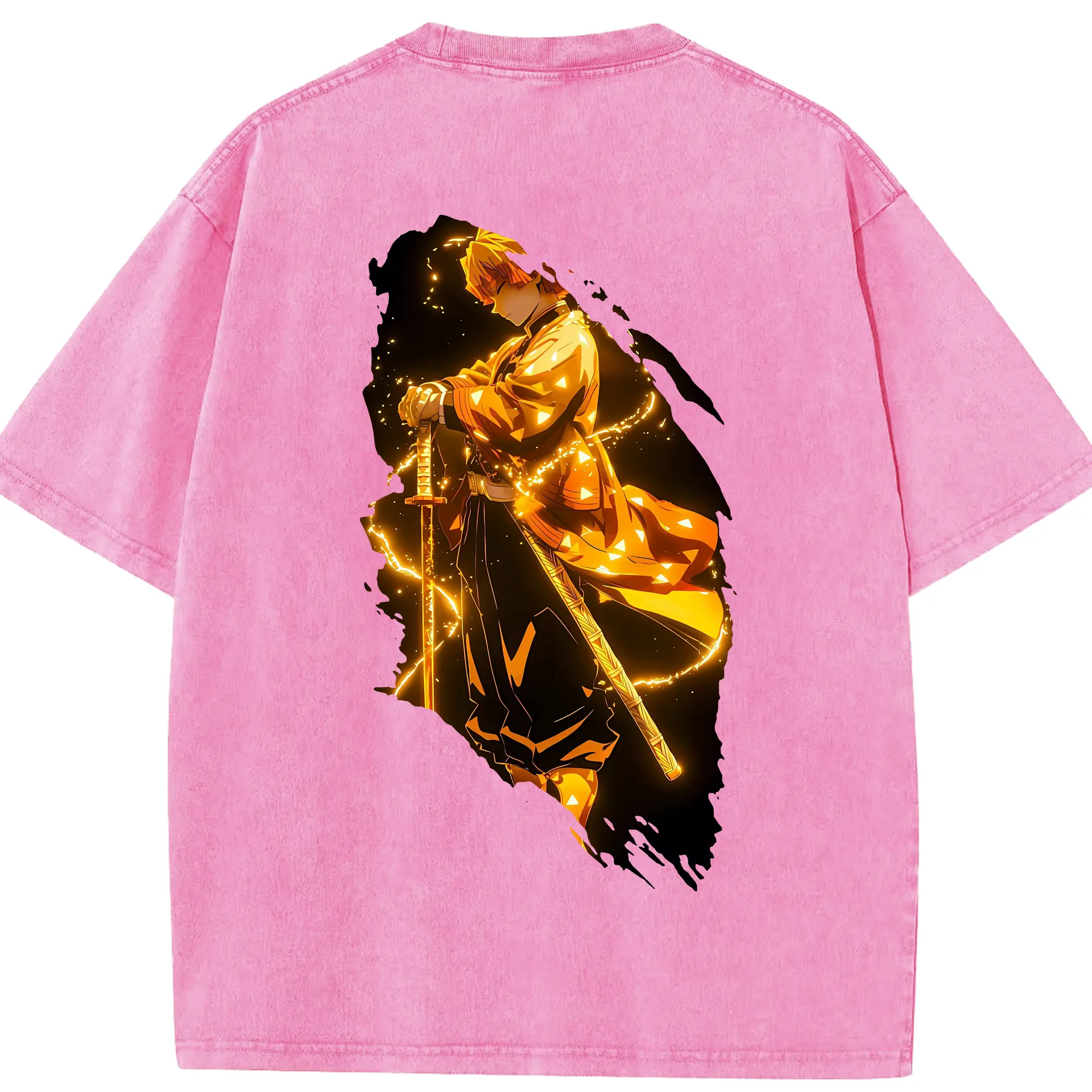 鬼滅の刃 グッズ,我妻 善逸 - 綿100% 半袖Tシャツ ・ バックプリント ・ 快適 通気性 ・ 日常使い 散歩 スポーツ用