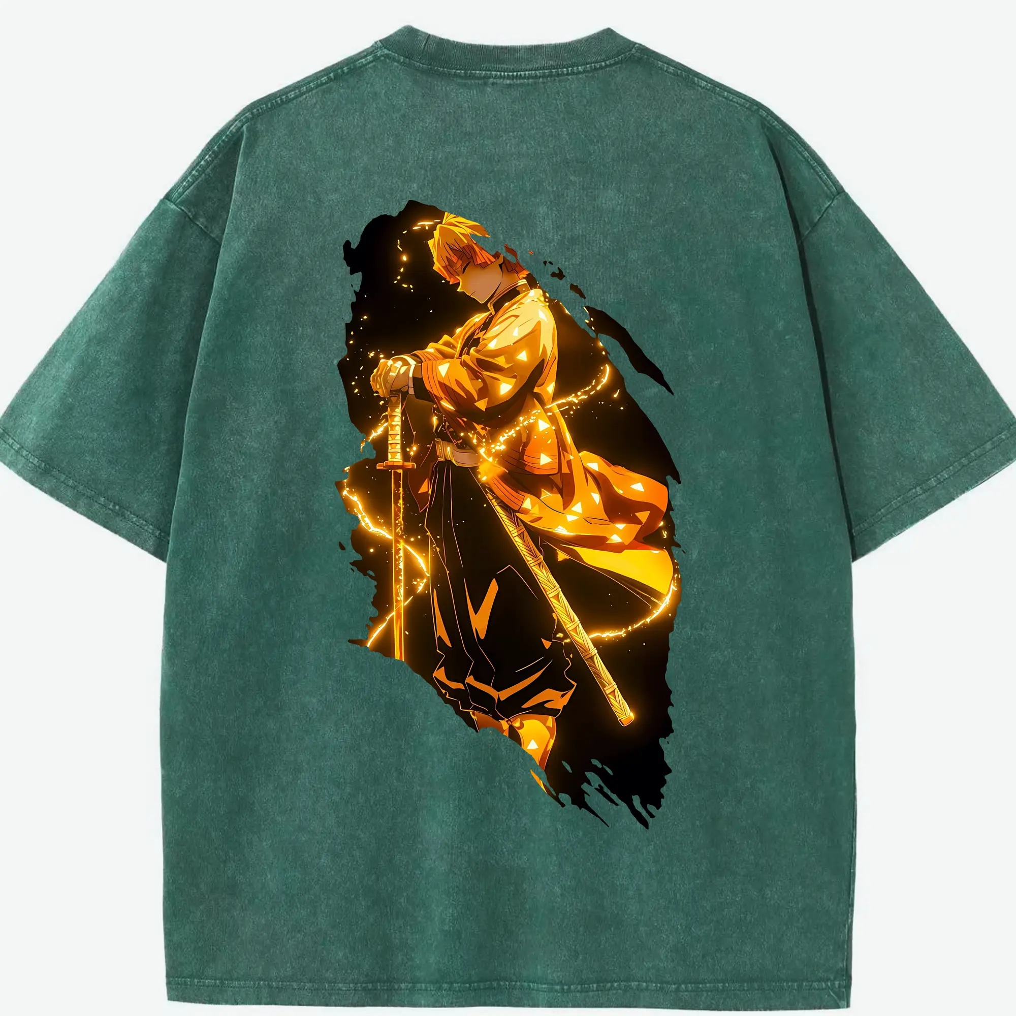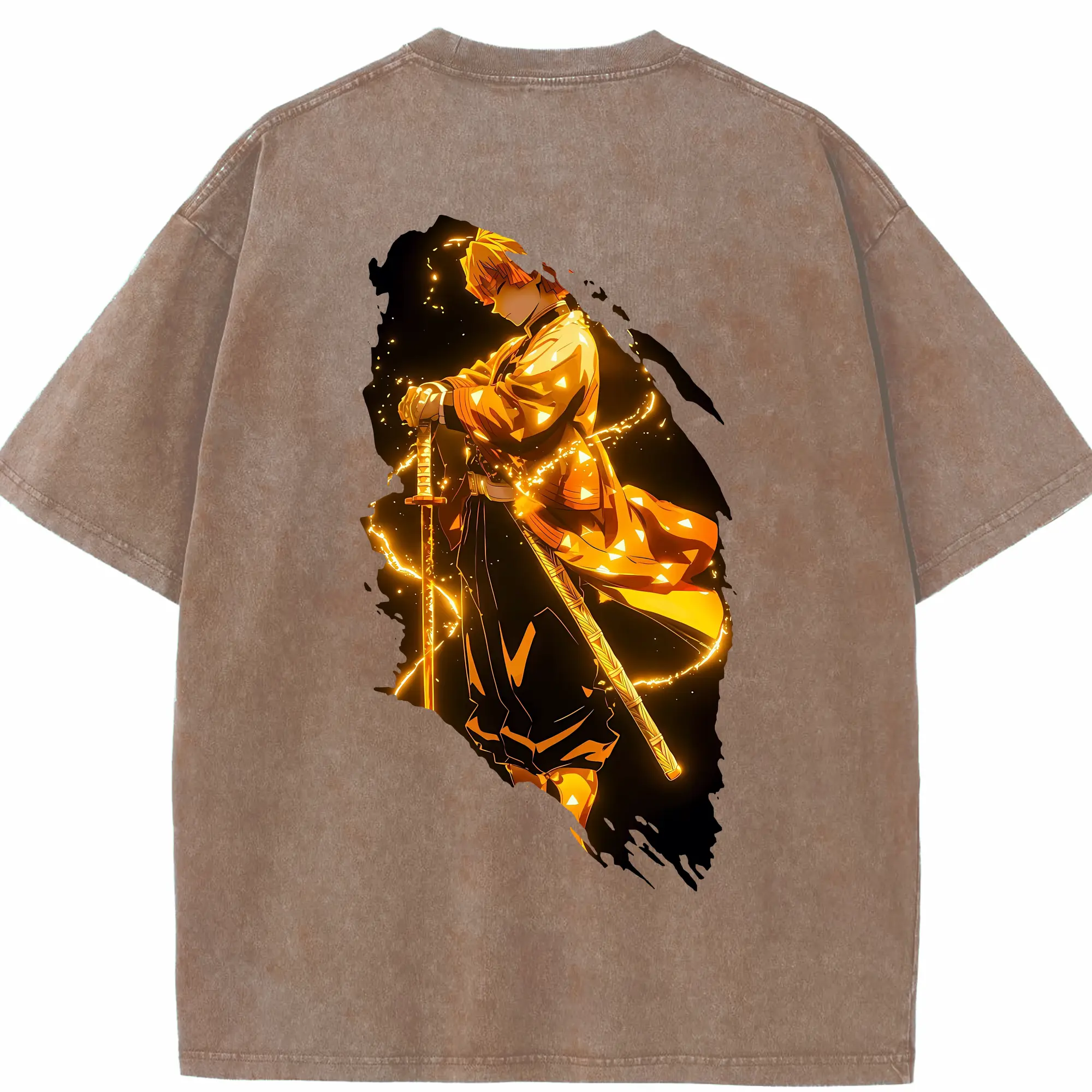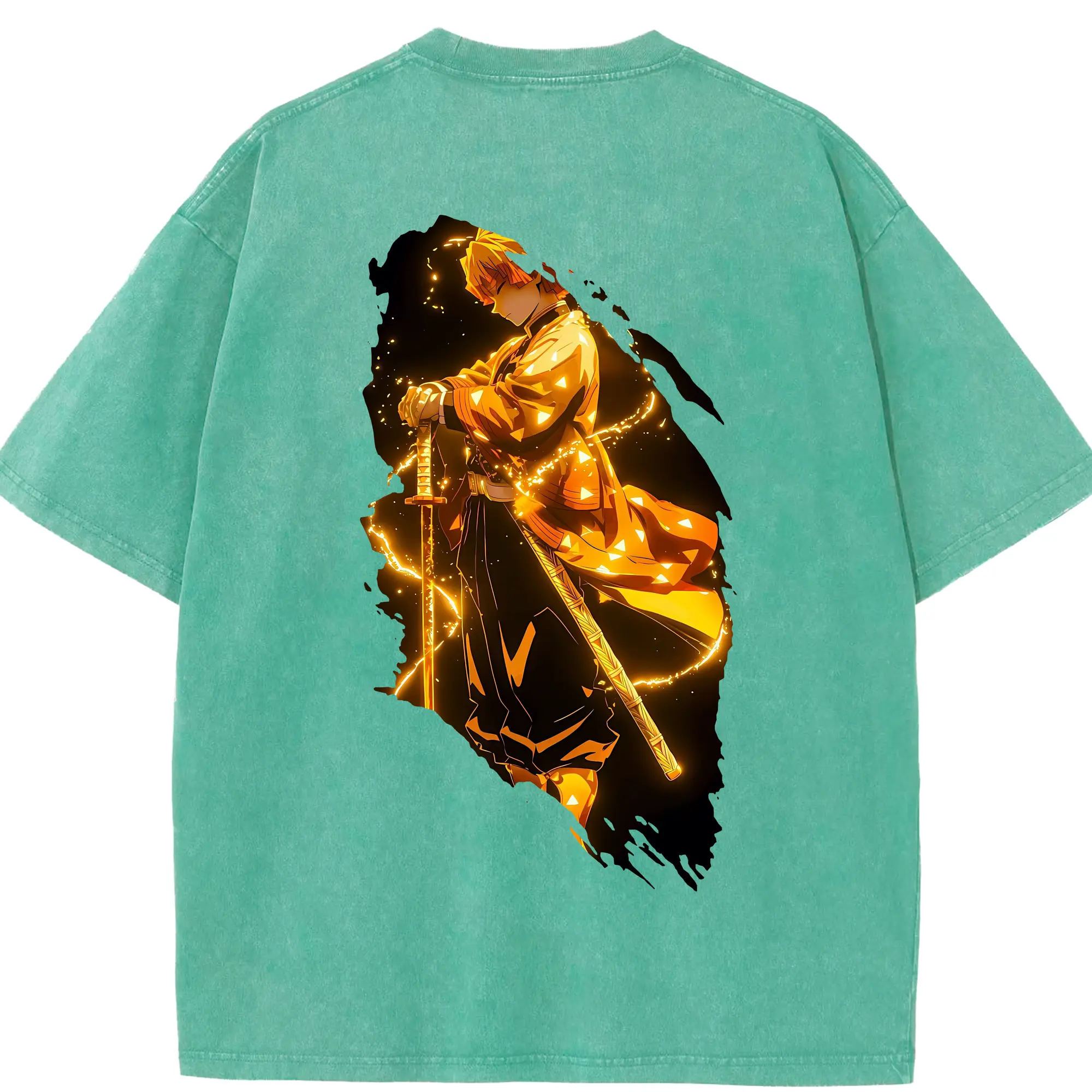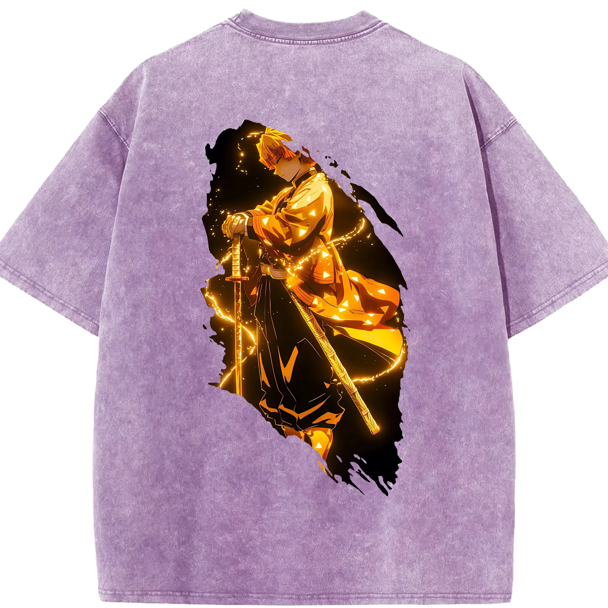 鬼滅の刃 グッズ,我妻 善逸 - 綿100% 半袖Tシャツ ・ バックプリント ・ 快適 通気性 ・ 日常使い 散歩 スポーツ用