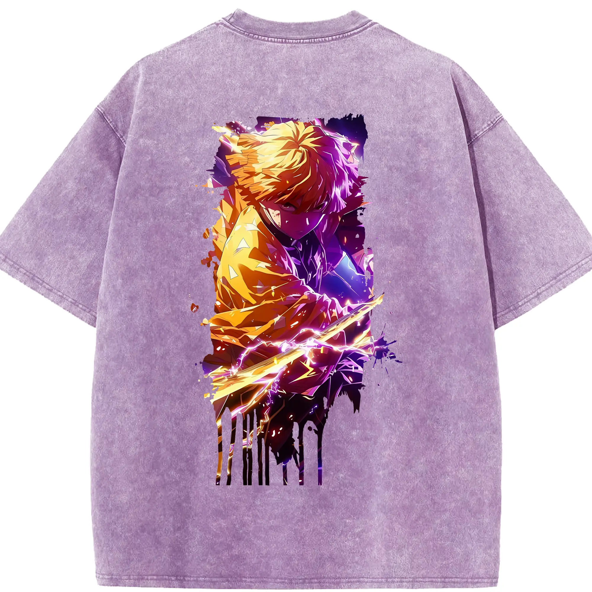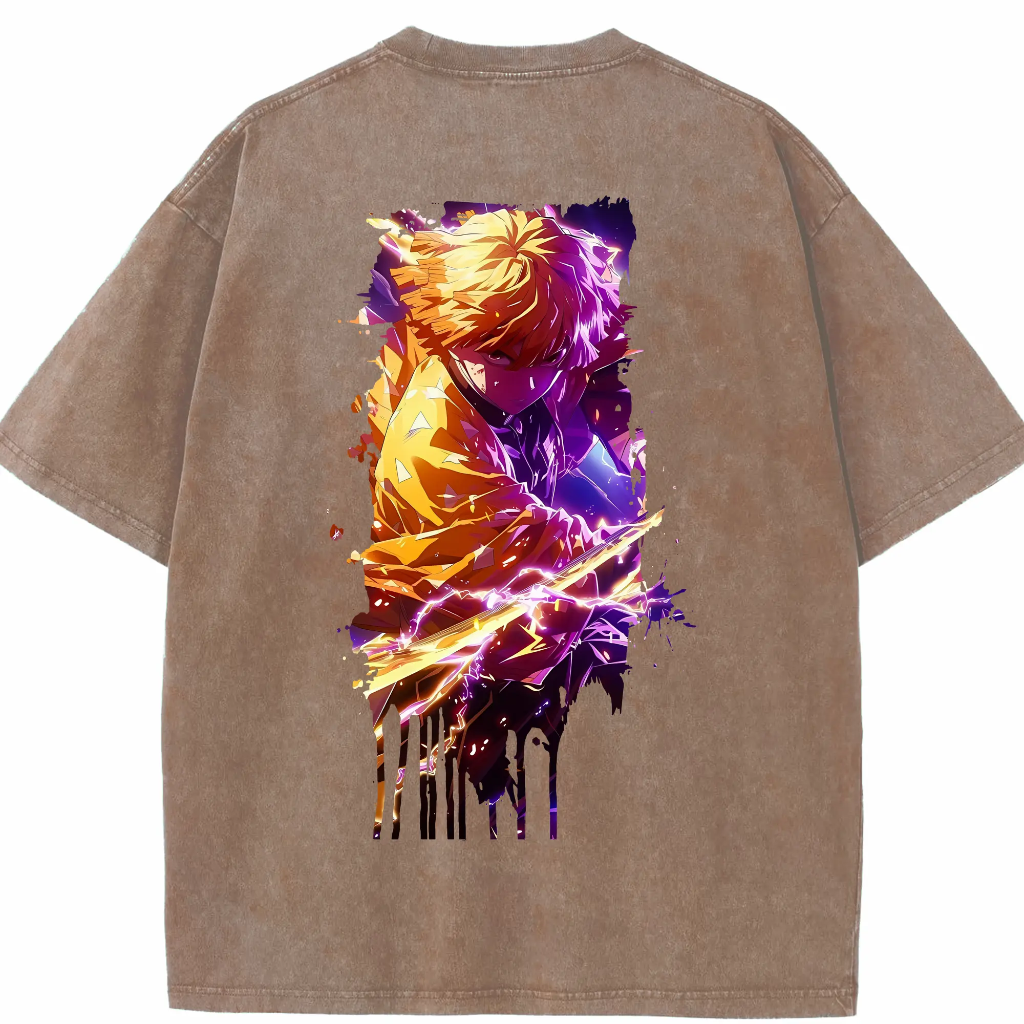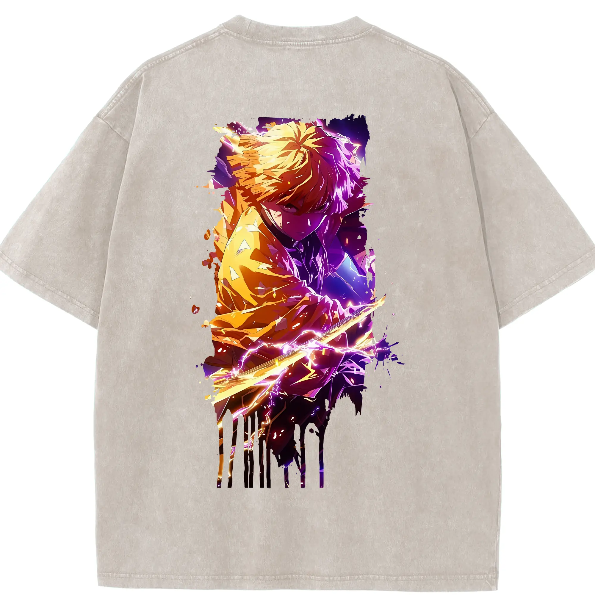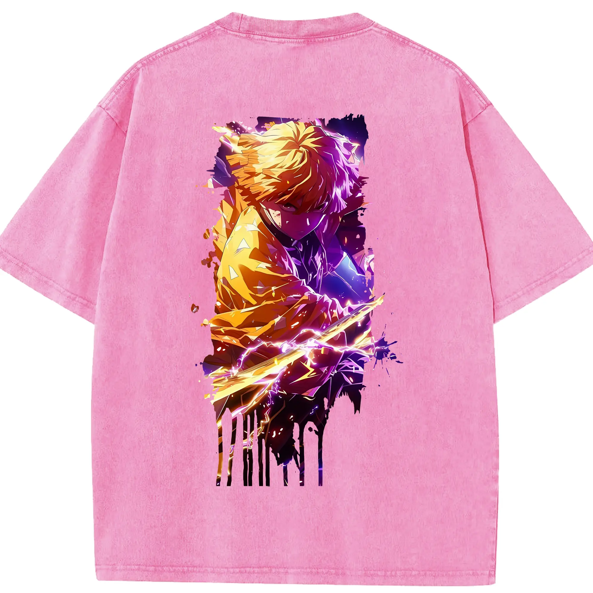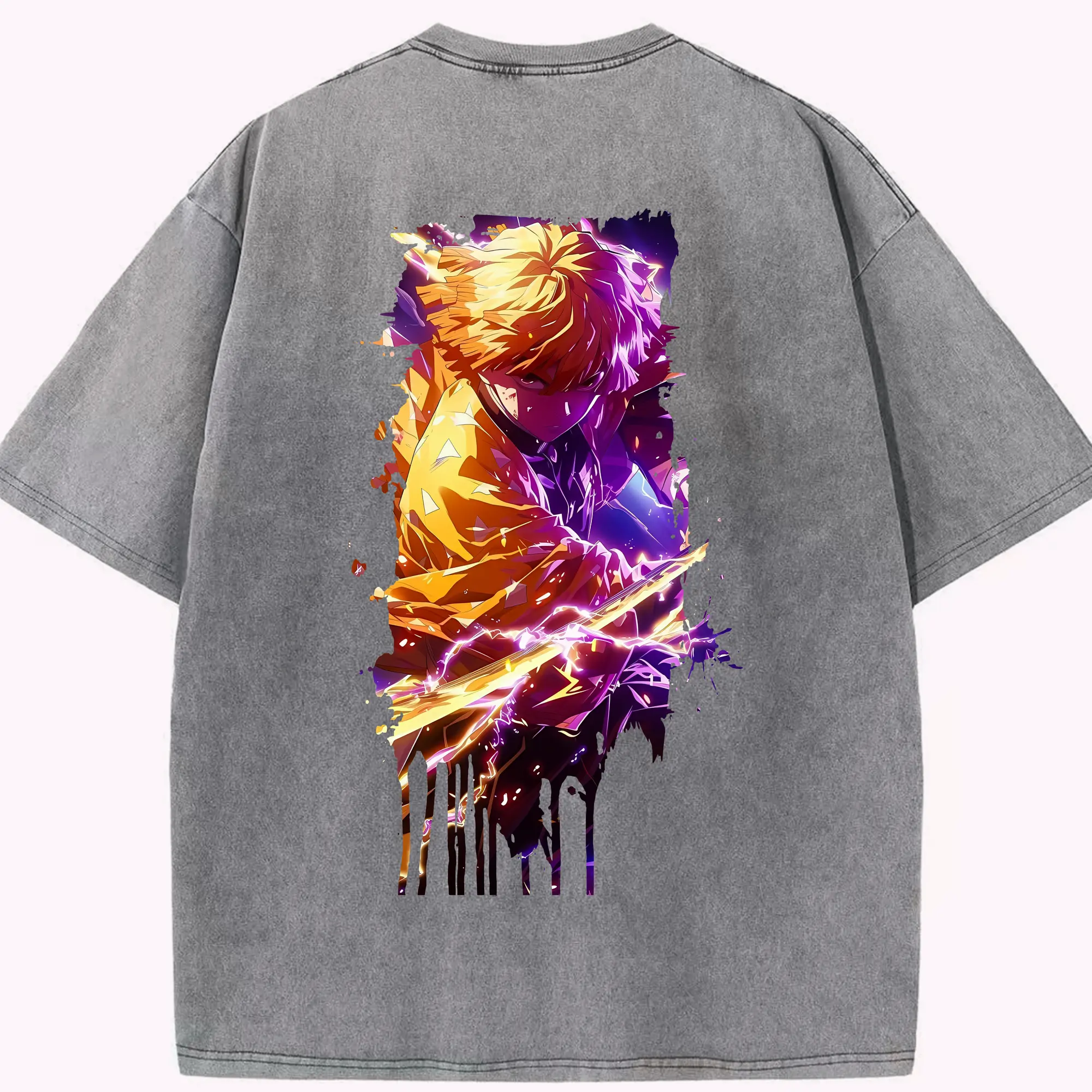 鬼滅の刃 グッズ,我妻 善逸 - 綿100% 半袖Tシャツ ・ バックプリント ・ 快適 通気性 ・ 日常使い 散歩 スポーツ用