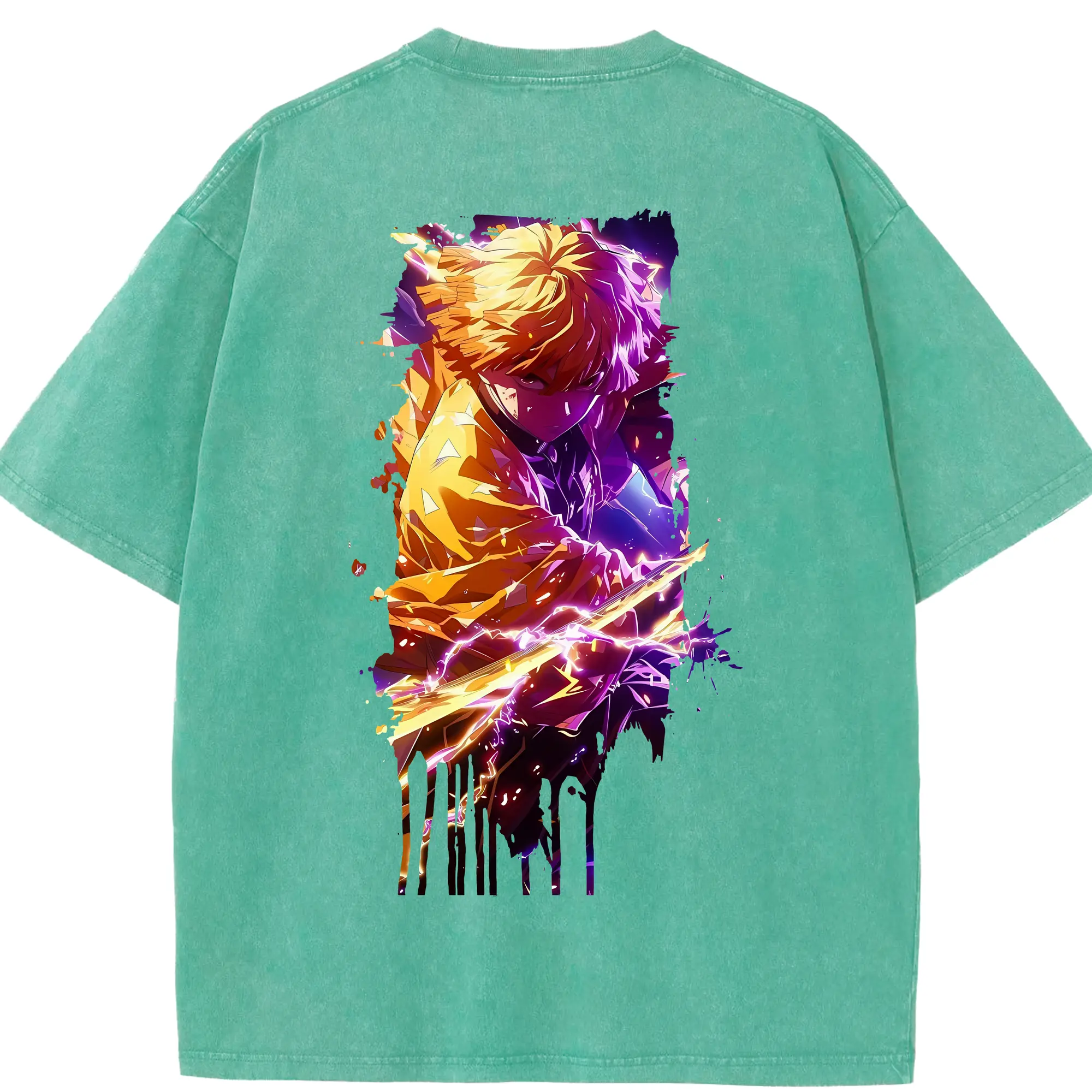 鬼滅の刃 グッズ,我妻 善逸 - 綿100% 半袖Tシャツ ・ フロントプリント ・ 快適 通気性 ・ 日常使い 散歩 スポーツ用