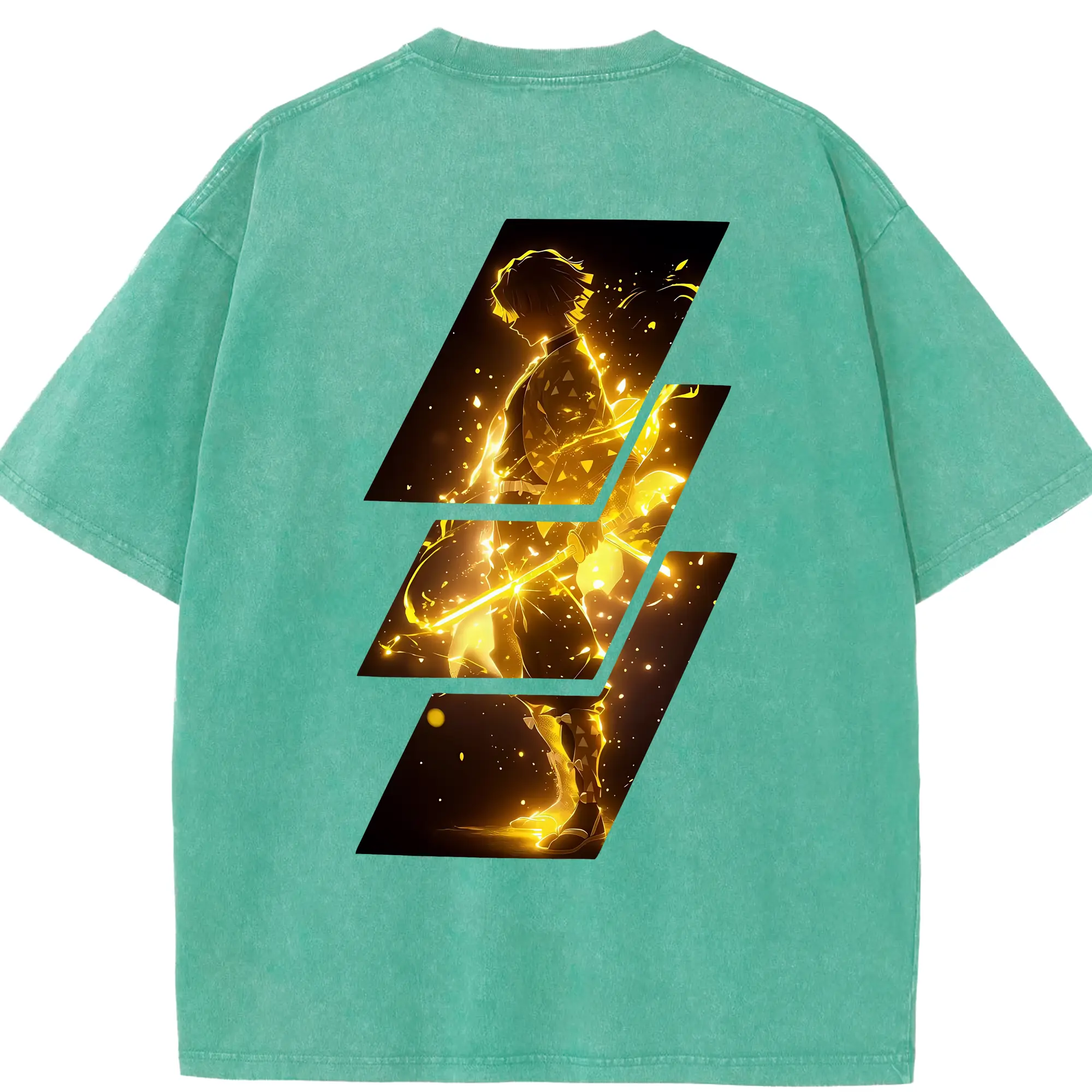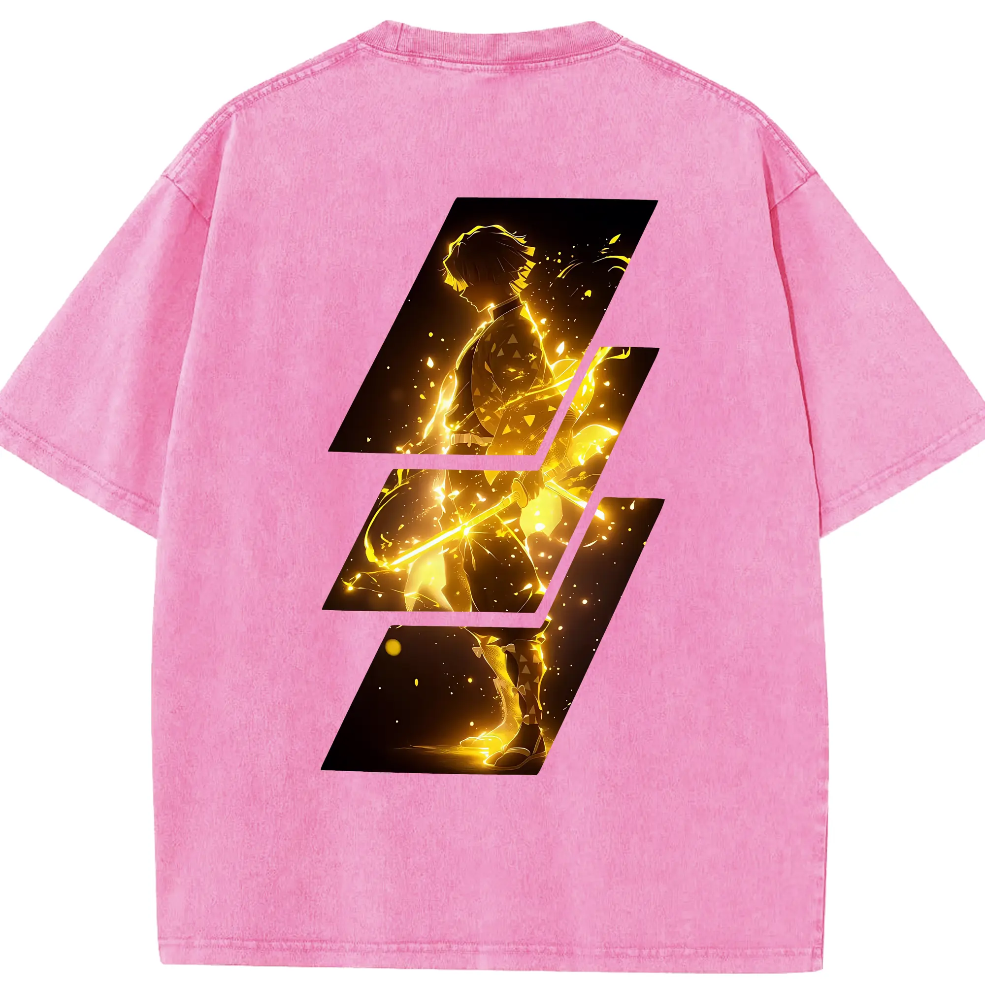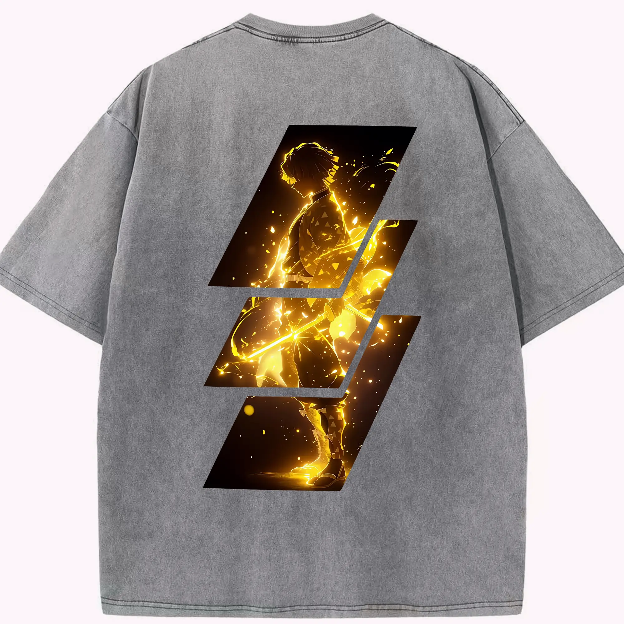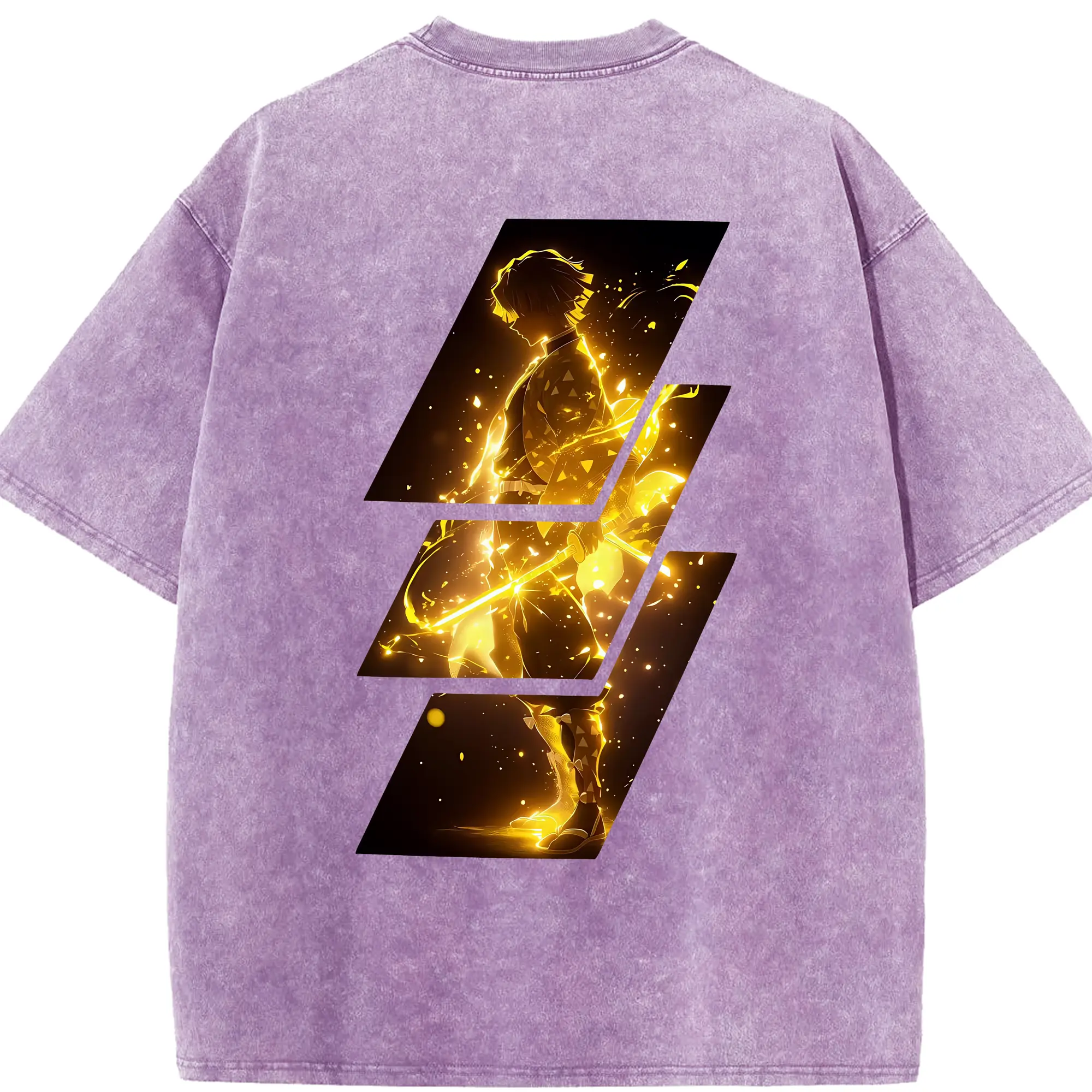 鬼滅の刃 グッズ,我妻 善逸 - 綿100% 半袖Tシャツ ・ バックプリント ・ 快適 通気性 ・ 日常使い 散歩 スポーツ用