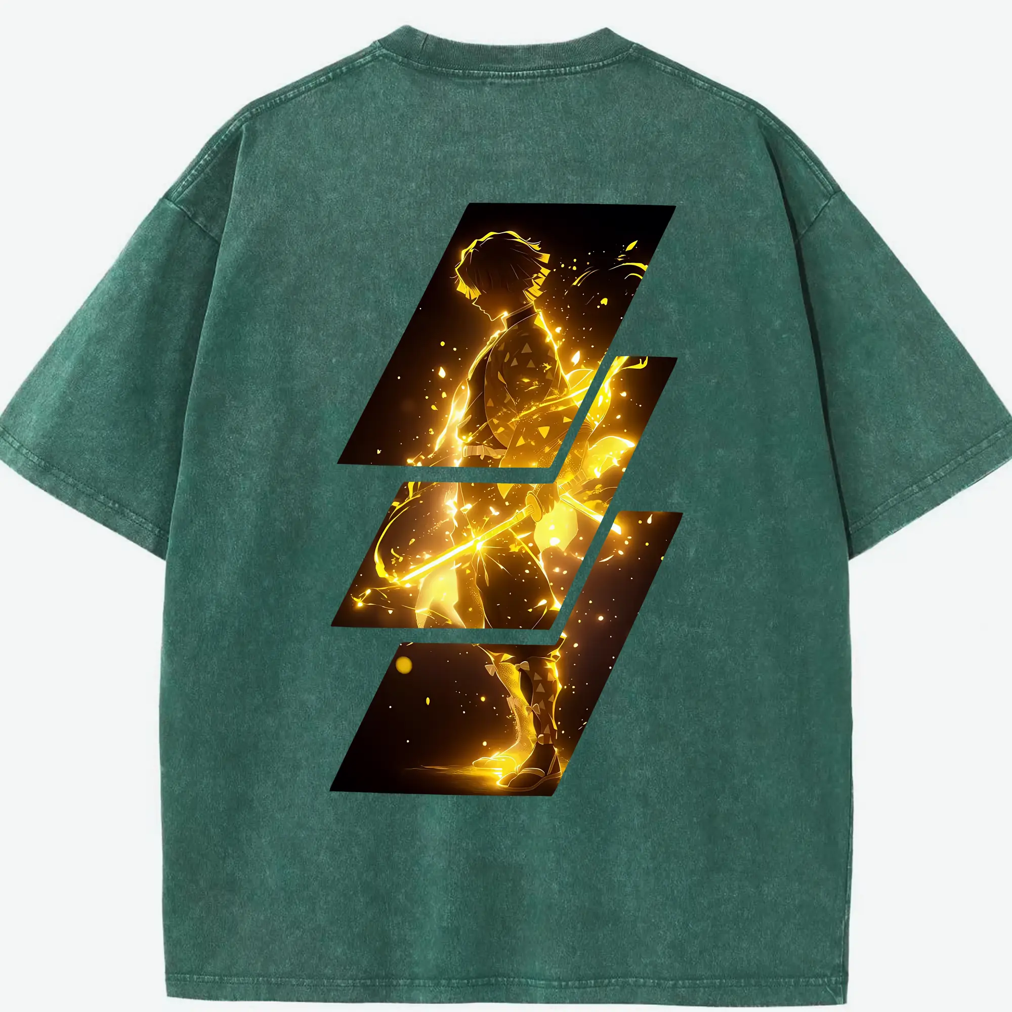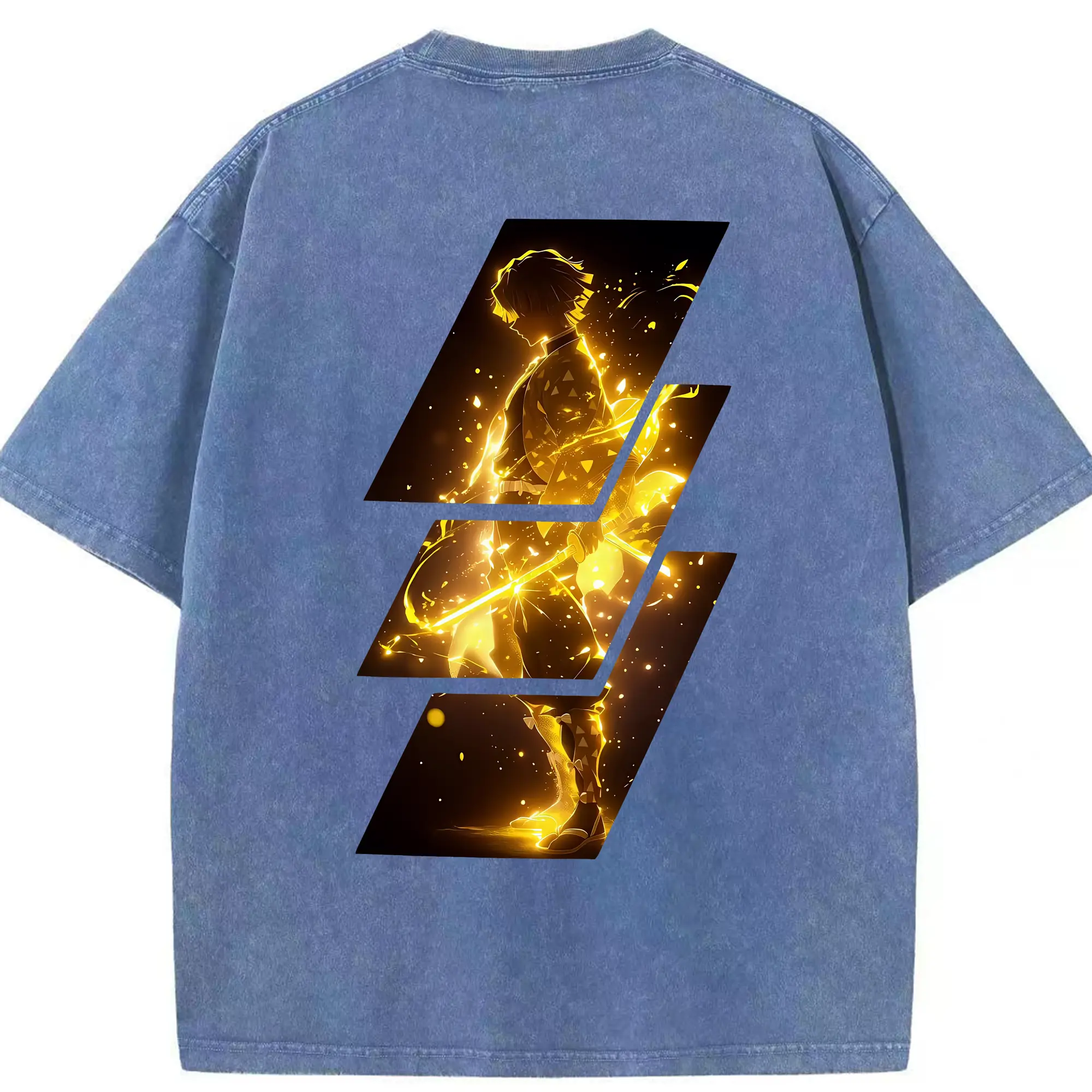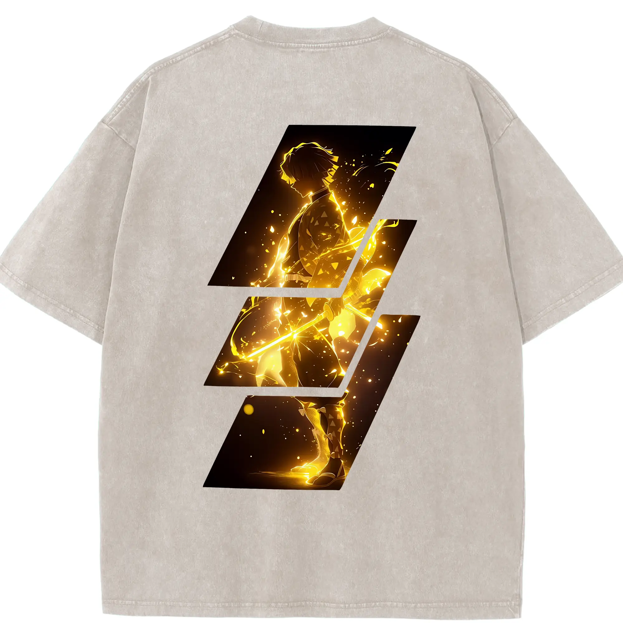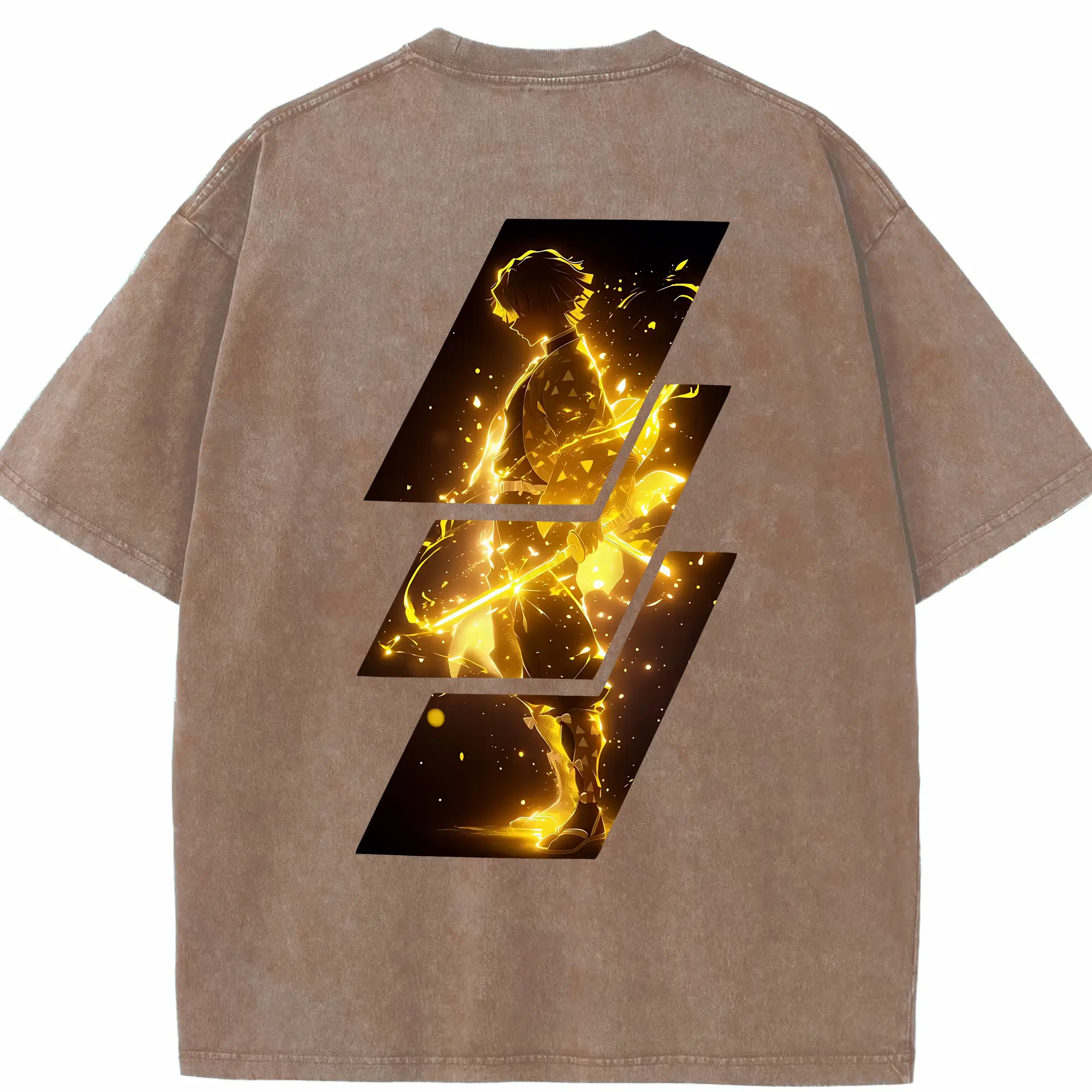 鬼滅の刃 グッズ,我妻 善逸 - 綿100% 半袖Tシャツ ・ バックプリント ・ 快適 通気性 ・ 日常使い 散歩 スポーツ用