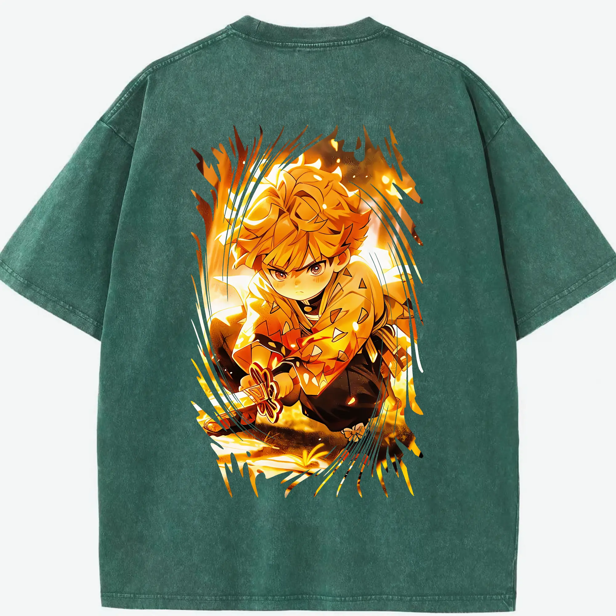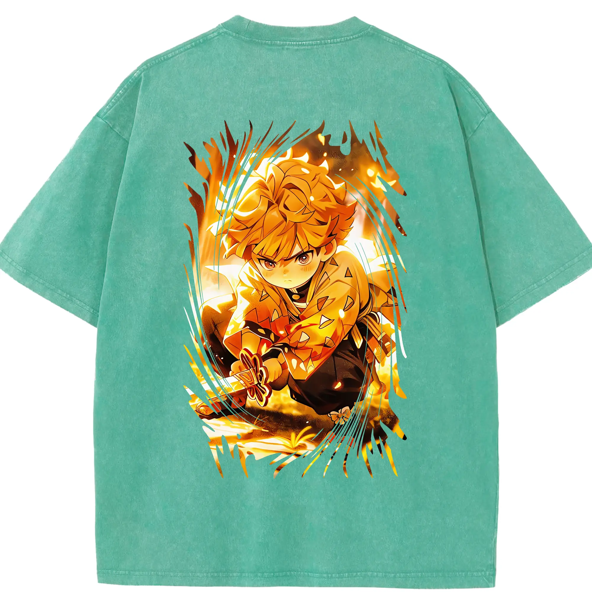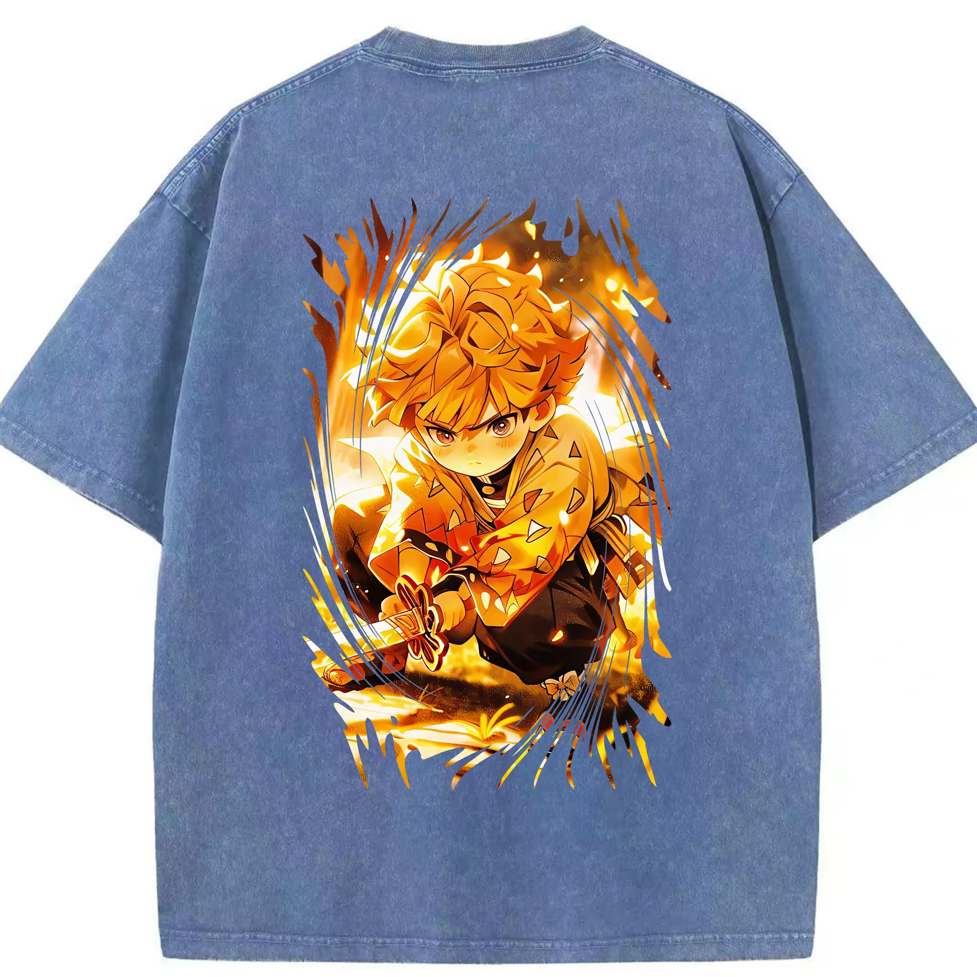 鬼滅の刃 グッズ,我妻 善逸 - 綿100% 半袖Tシャツ ・ フロントプリント ・ 快適 通気性 ・ 日常使い 散歩 スポーツ用