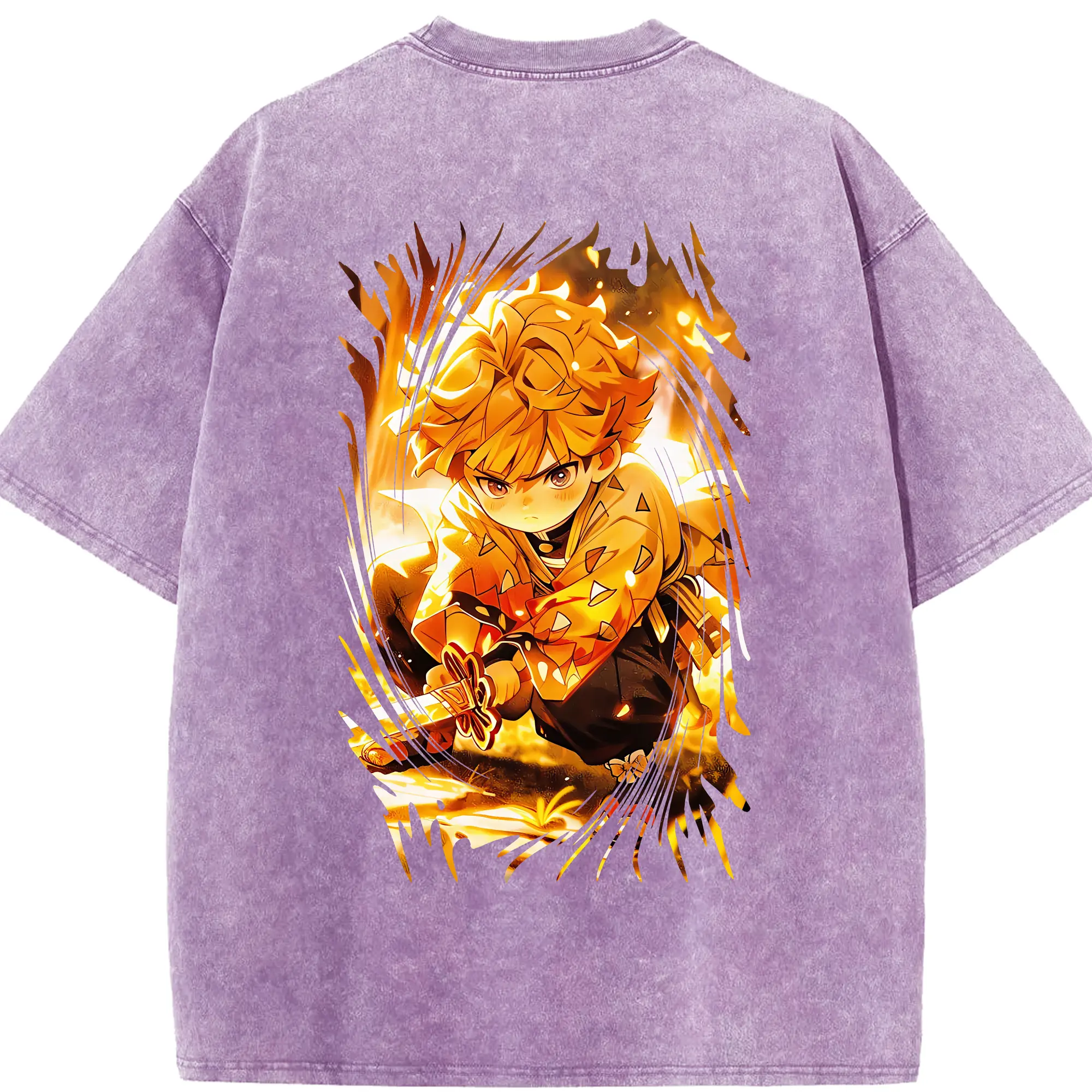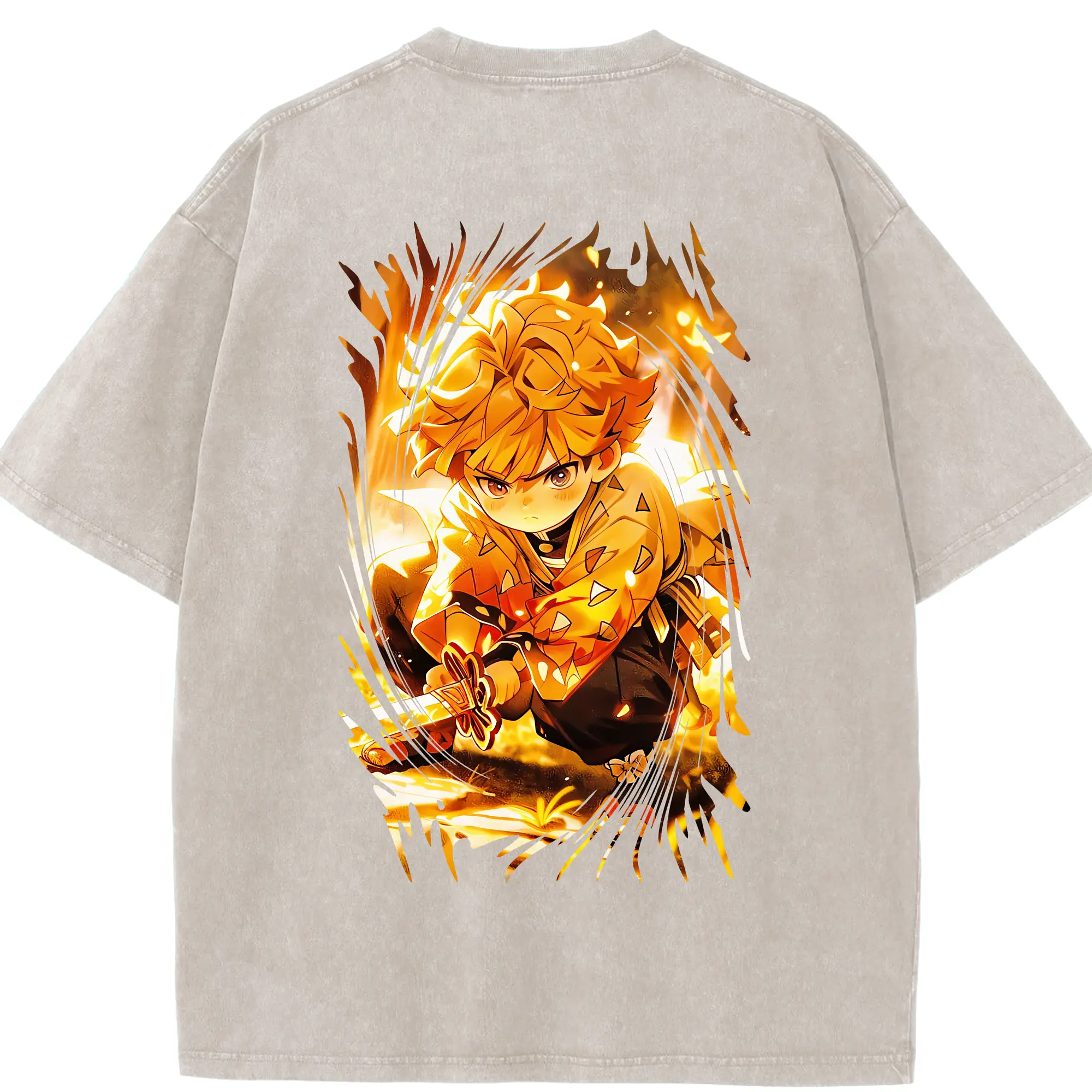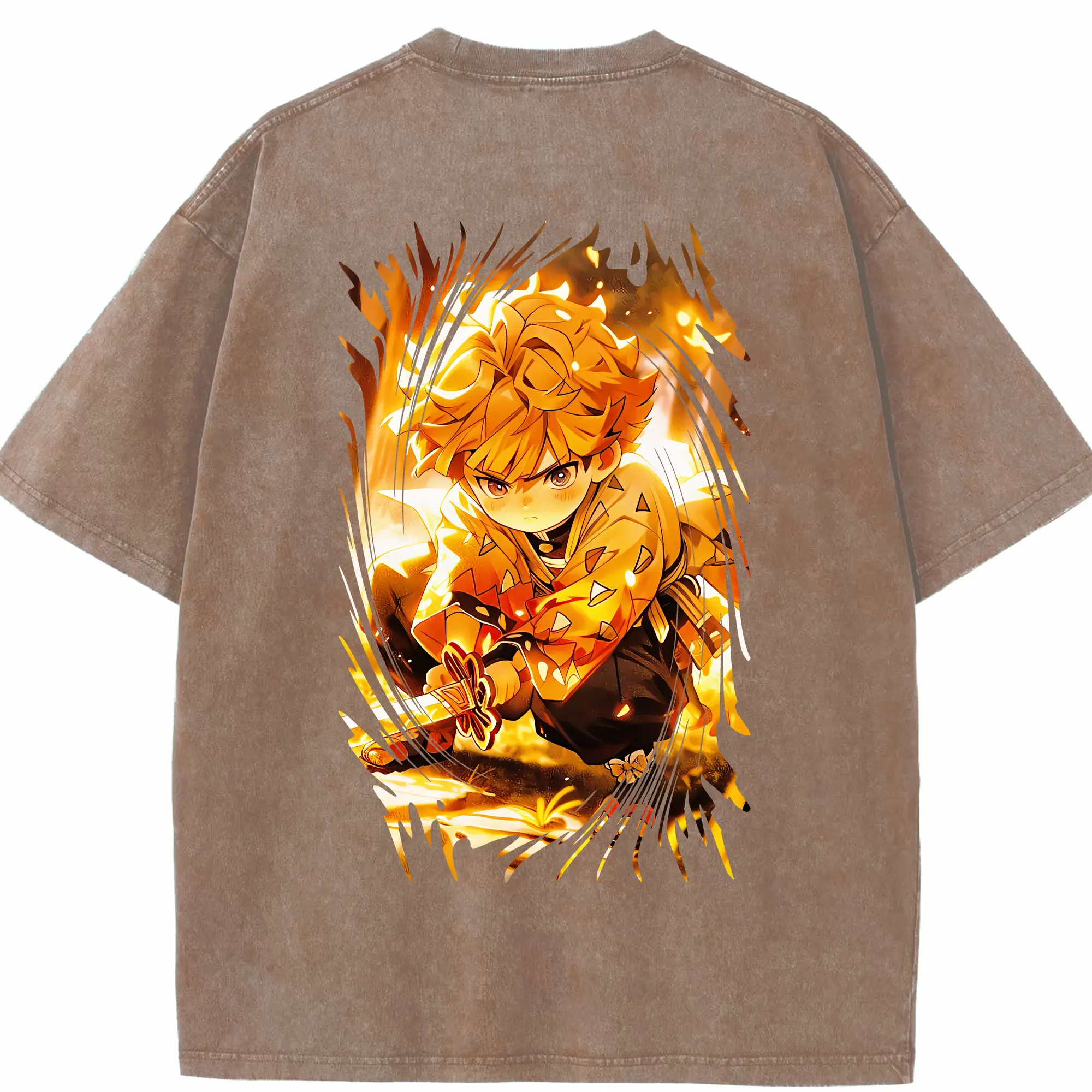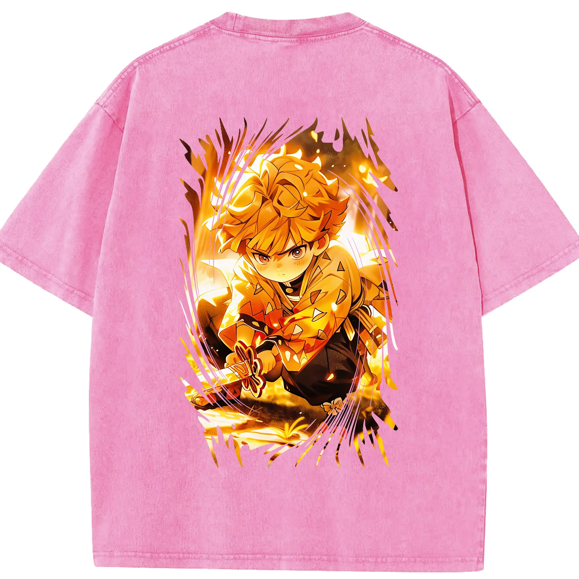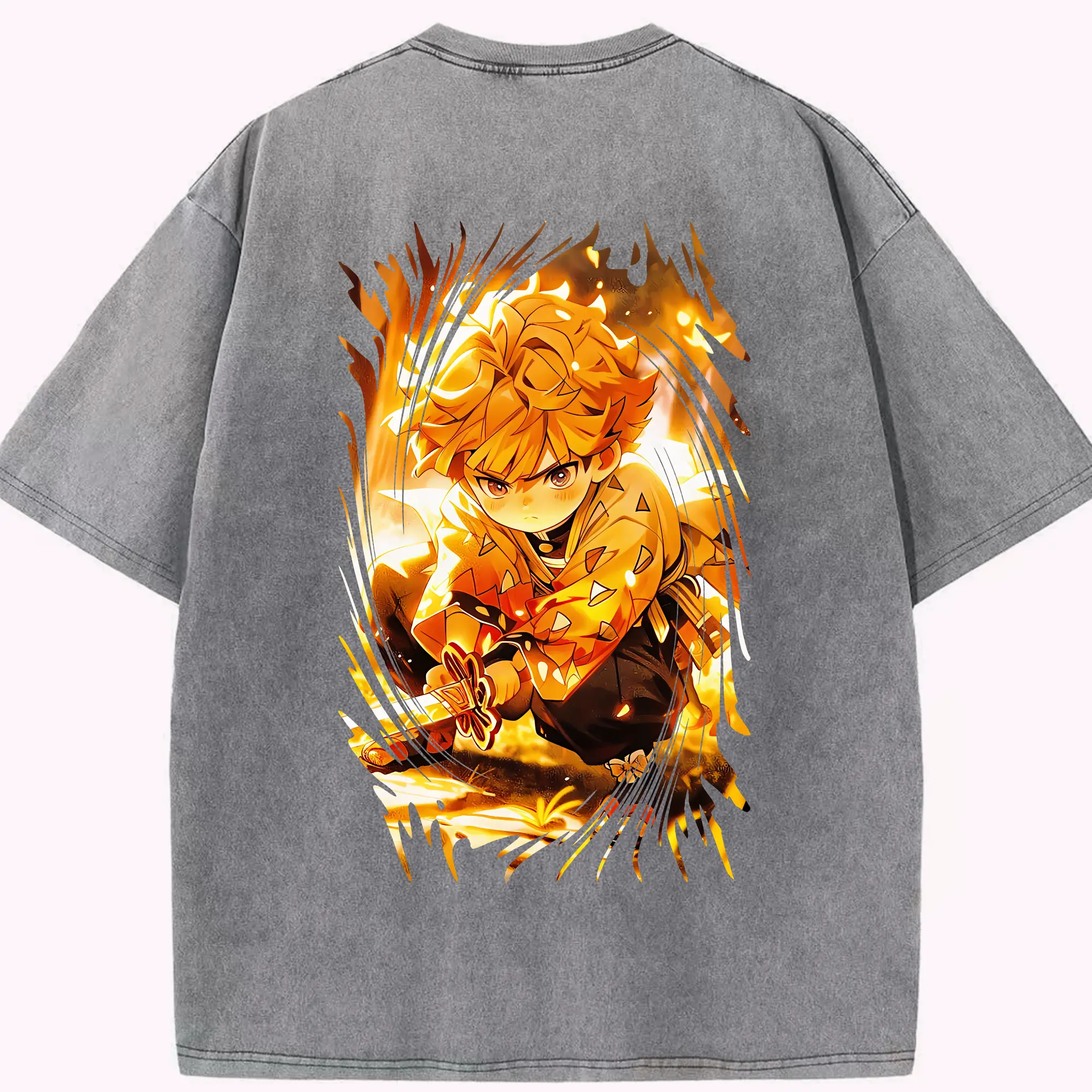 鬼滅の刃 グッズ,我妻 善逸 - 綿100% 半袖Tシャツ ・ バックプリント ・ 快適 通気性 ・ 日常使い 散歩 スポーツ用