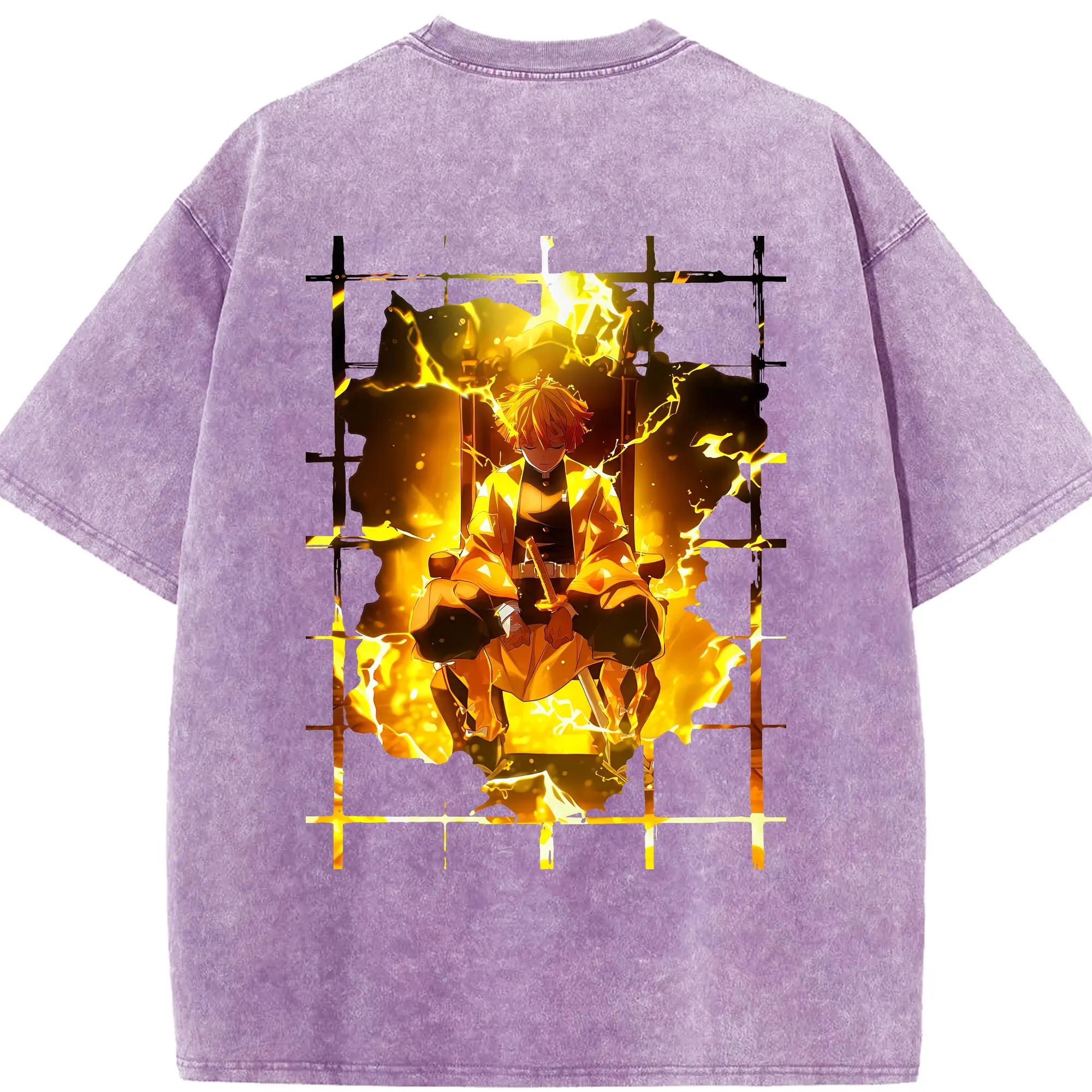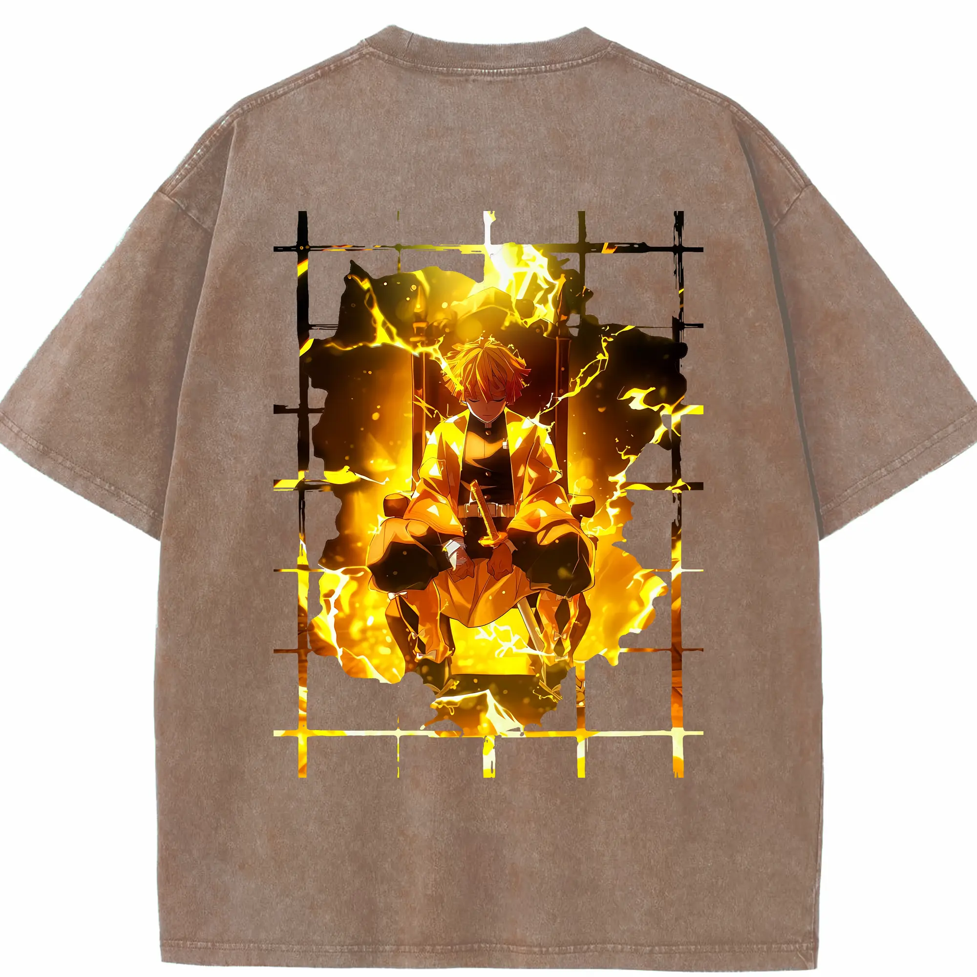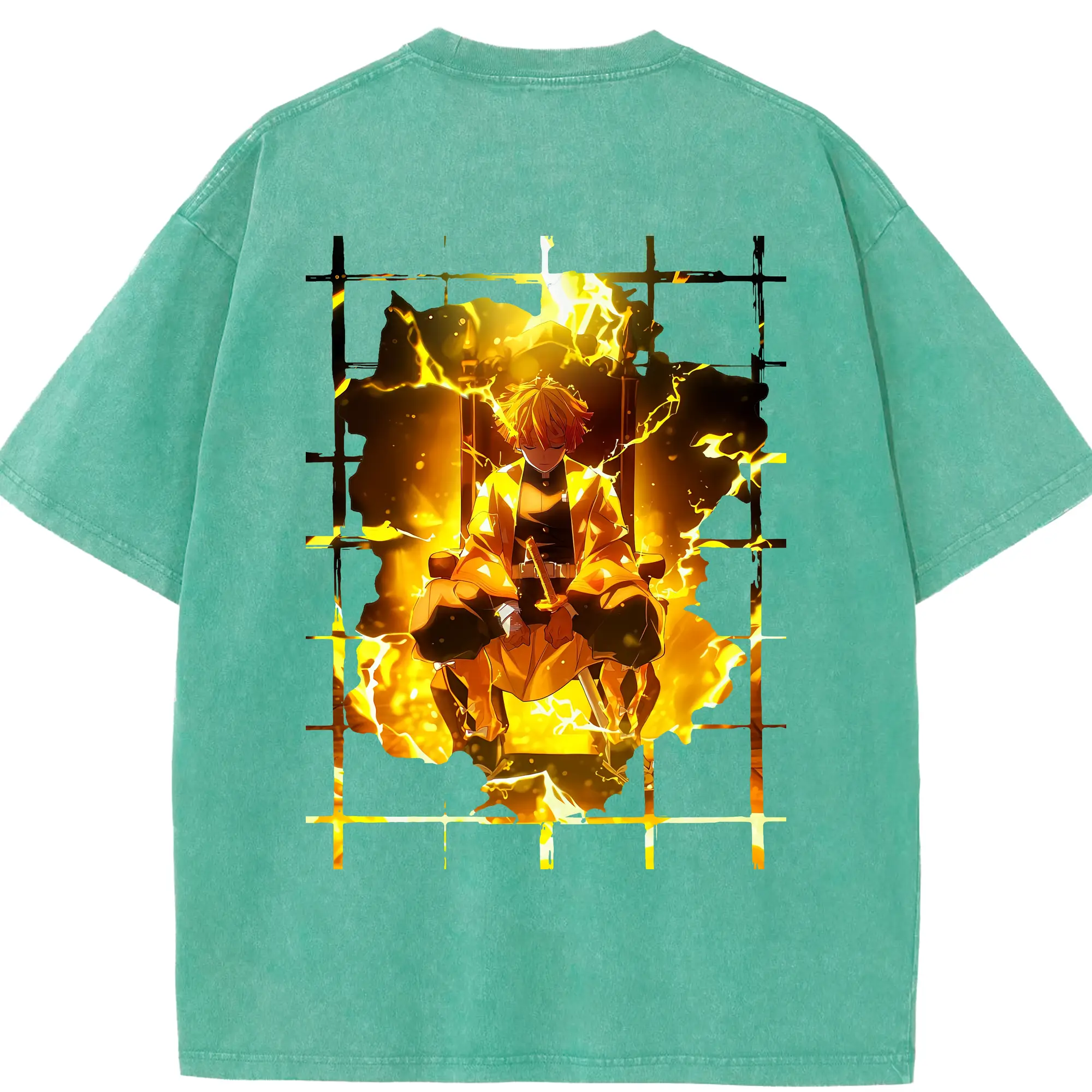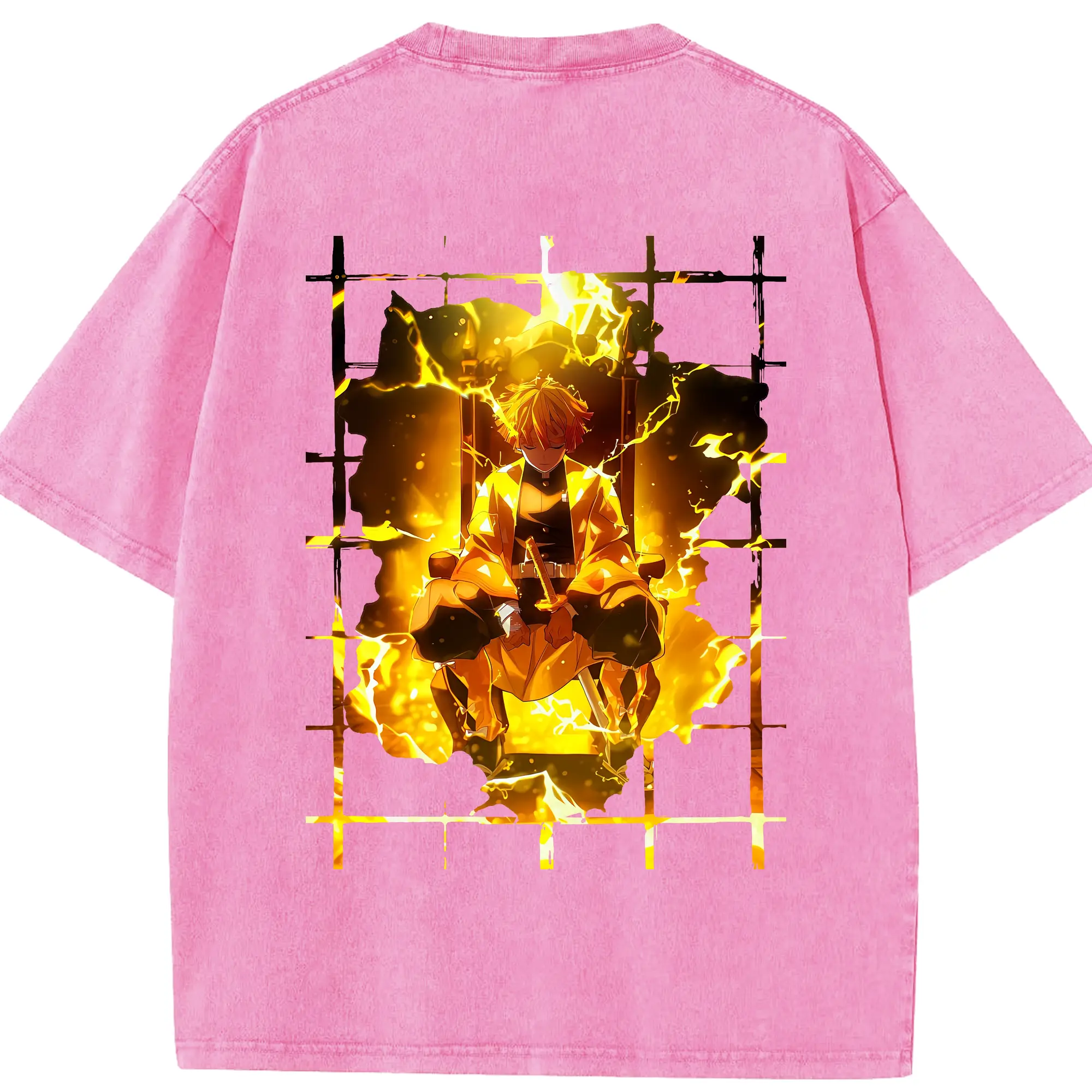 鬼滅の刃 グッズ,我妻 善逸 - 綿100% 半袖Tシャツ ・ バックプリント ・ 快適 通気性 ・ 日常使い 散歩 スポーツ用