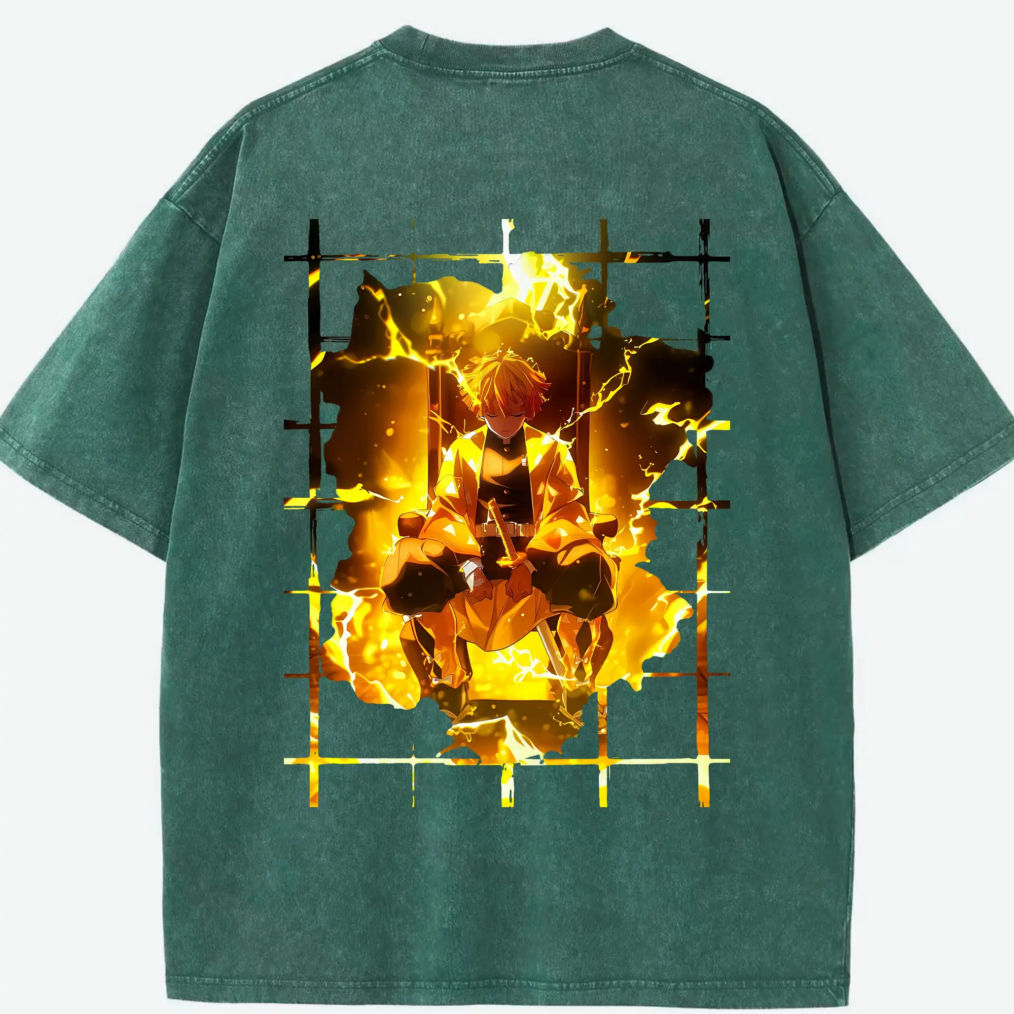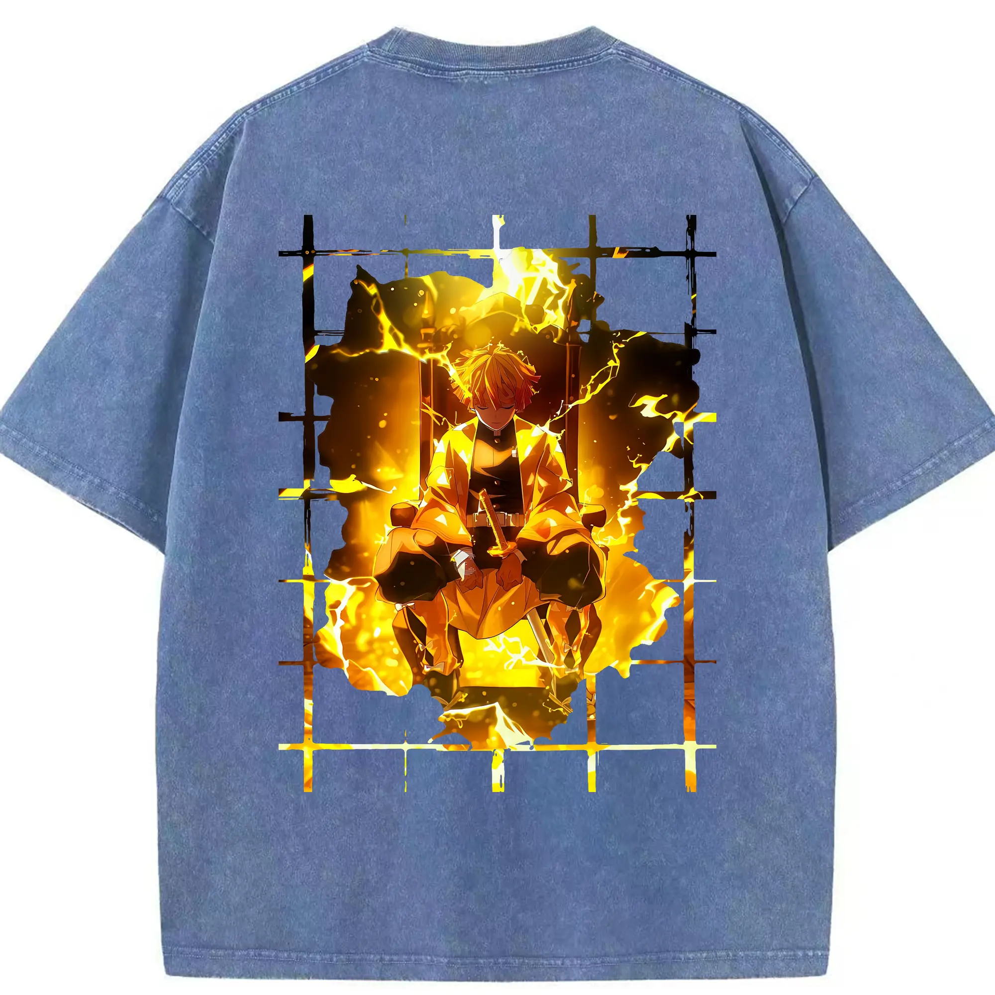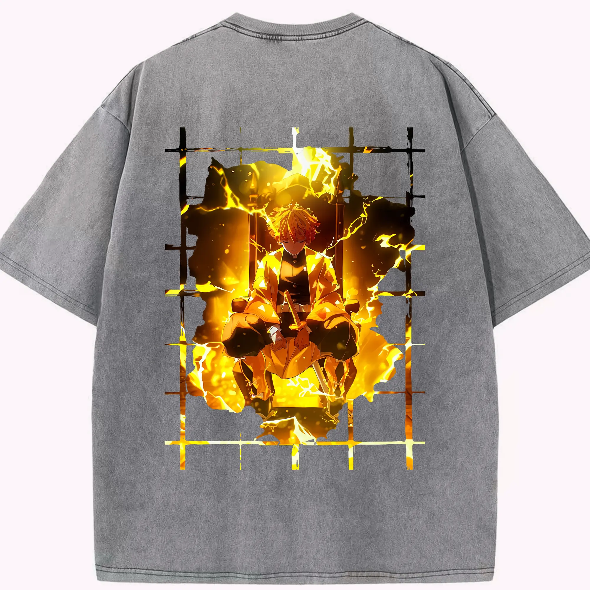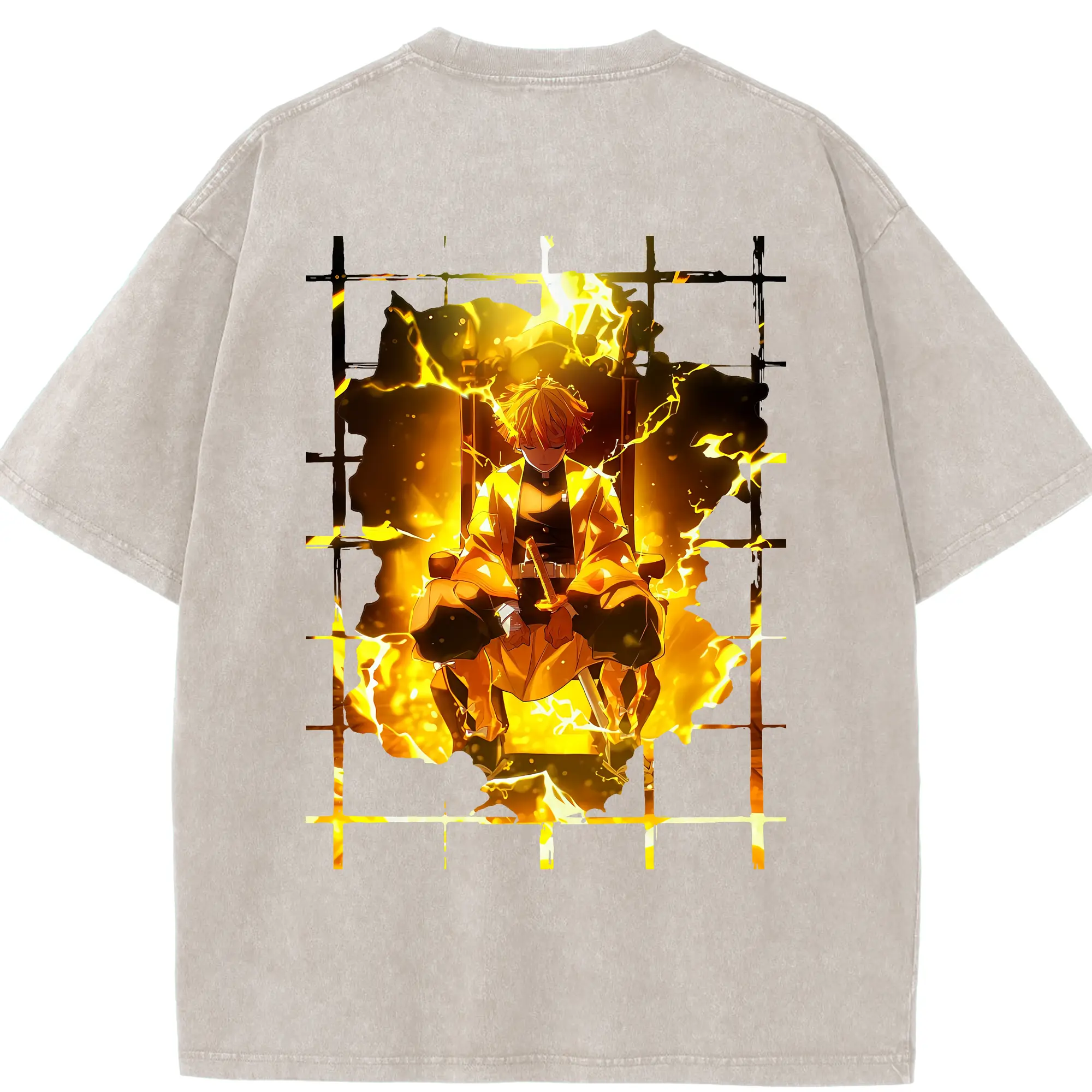 鬼滅の刃 グッズ,我妻 善逸 - 綿100% 半袖Tシャツ ・ バックプリント ・ 快適 通気性 ・ 日常使い 散歩 スポーツ用