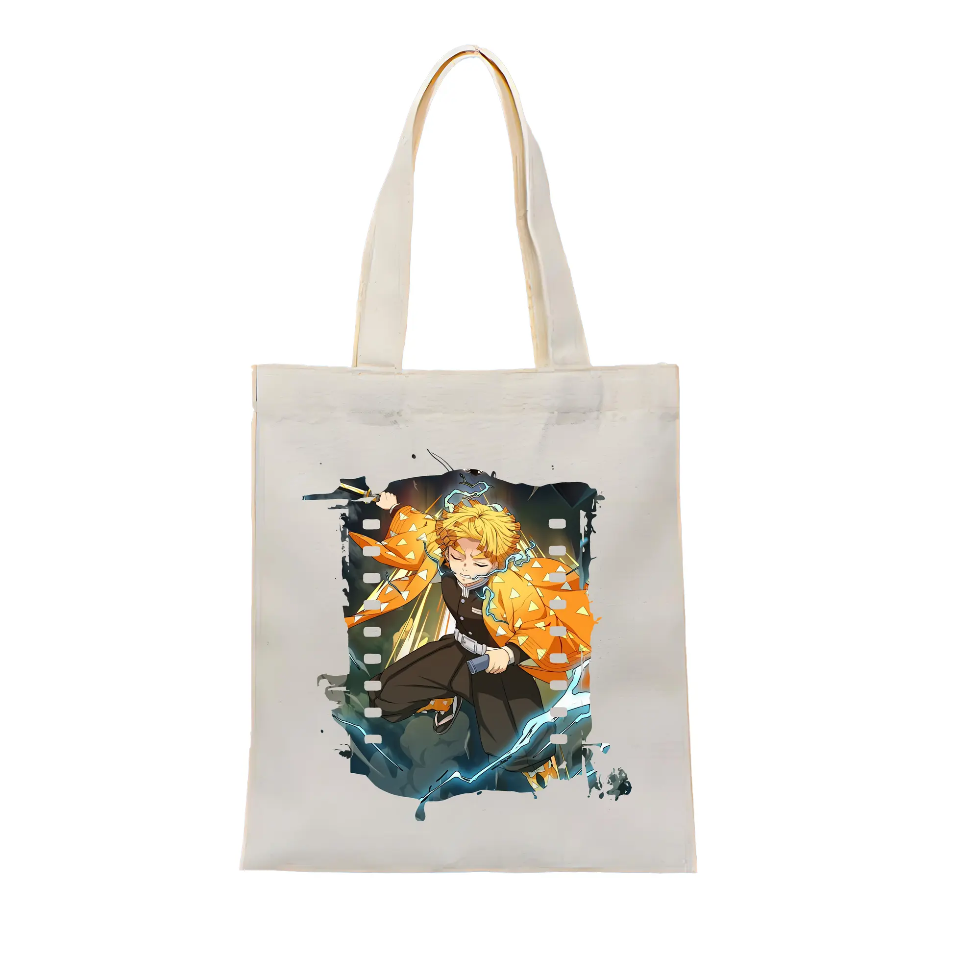 鬼滅の刃 グッズ,我妻 善逸 - 縦型キャンバス手提げバッグ(トートバッグ) ・ キャンバス素材 ・ ショッピング用 ・ 軽量 丈夫 お手入れ簡単