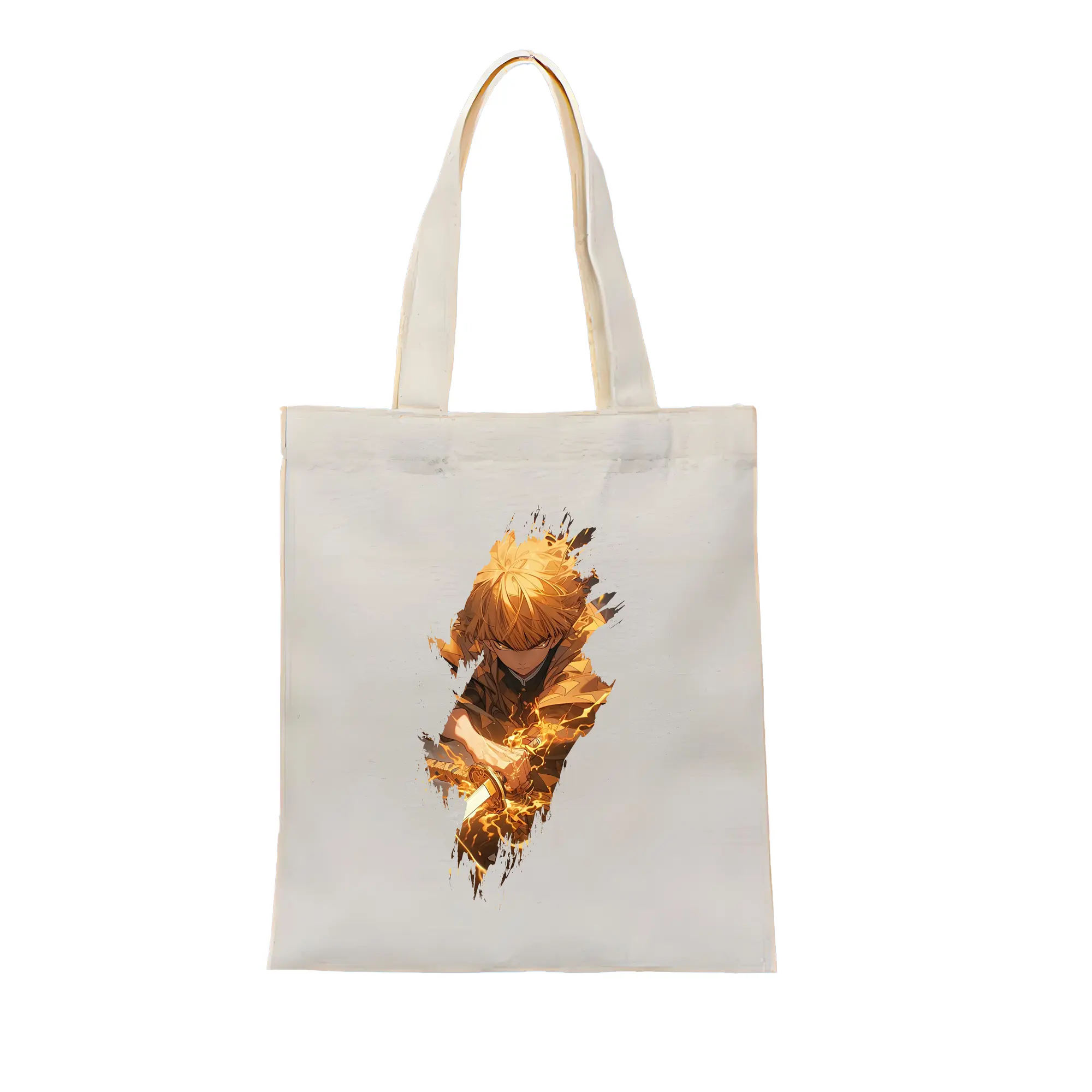 鬼滅の刃 グッズ,我妻 善逸 - 縦型キャンバス手提げバッグ(トートバッグ) ・ キャンバス素材 ・ ショッピング用 ・ 軽量 丈夫 お手入れ簡単