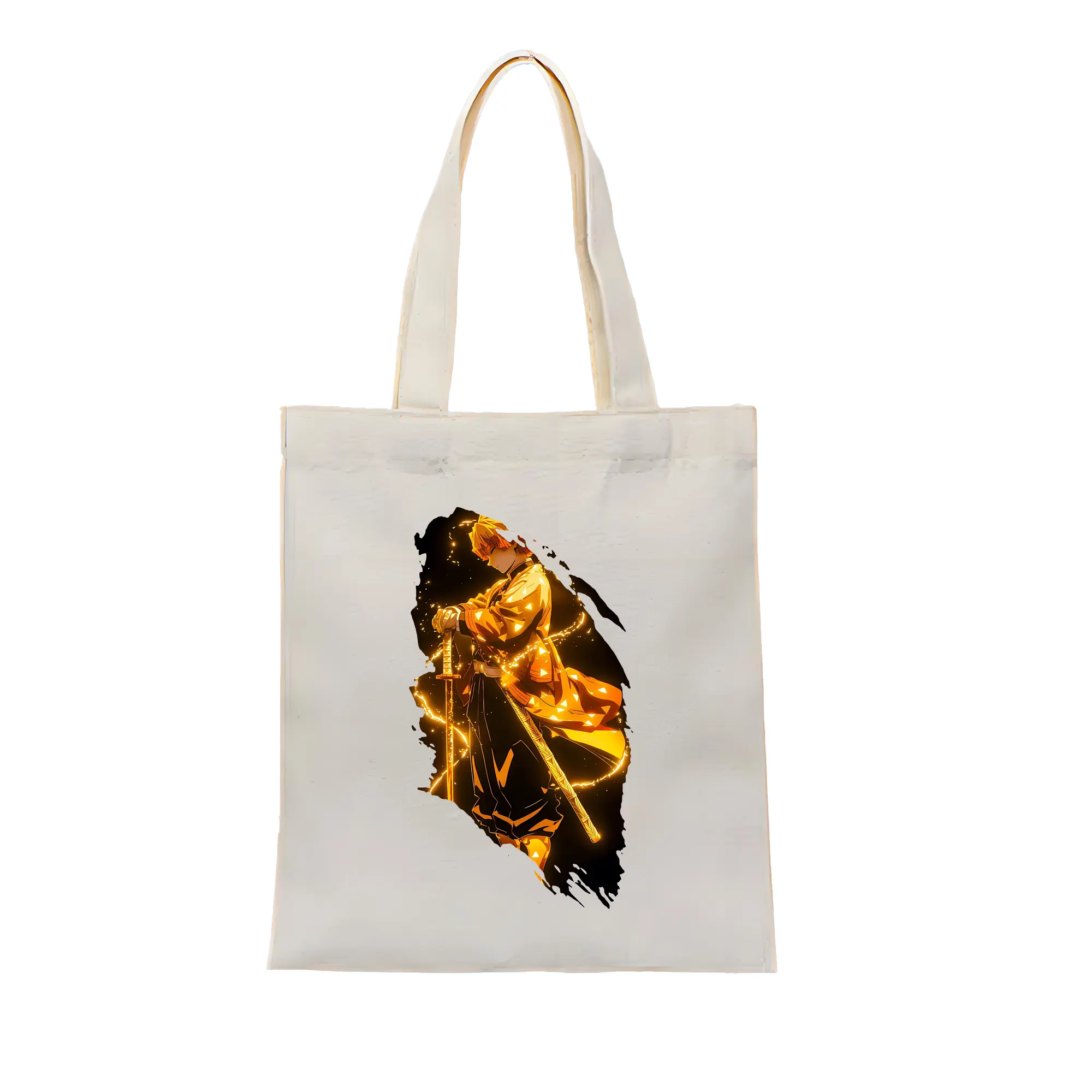鬼滅の刃 グッズ,我妻 善逸 - 縦型キャンバス手提げバッグ(トートバッグ) ・ キャンバス素材 ・ ショッピング用 ・ 軽量 丈夫 お手入れ簡単