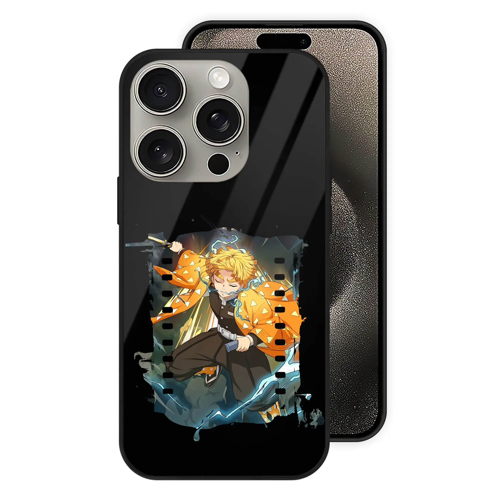 鬼滅の刃 グッズ,我妻 善逸 - IPhone15Pro対応 ・ スマホケース ・ 背面ガラス ・ TPU+強化ガラス ・ 耐衝撃 ・ 黄変防止 ・ ワイヤレス充電対応 ・ 3D立体ボタン