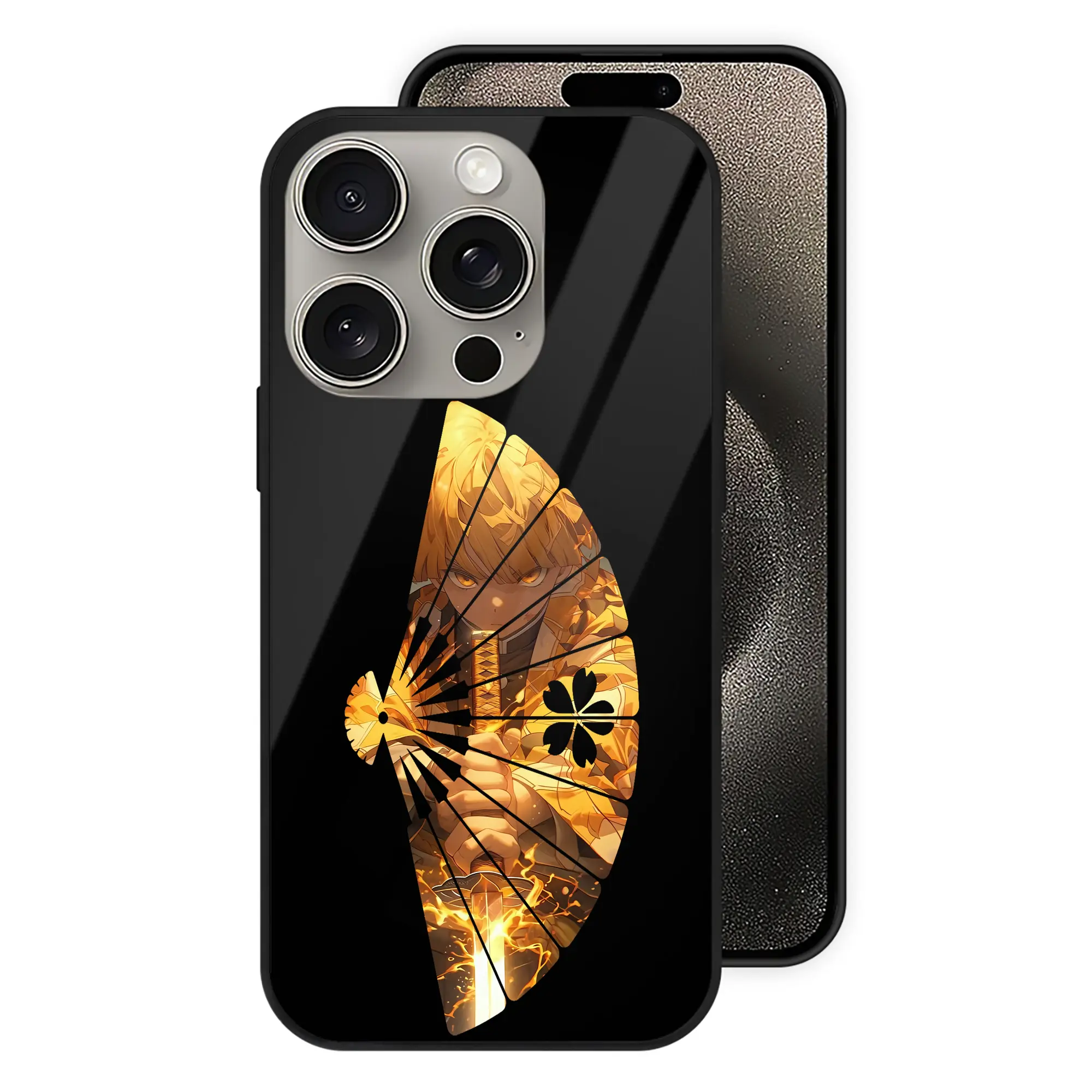 鬼滅の刃 グッズ,我妻 善逸 - IPhone15Pro対応 ・ スマホケース ・ 背面ガラス ・ TPU+強化ガラス ・ 耐衝撃 ・ 黄変防止 ・ ワイヤレス充電対応 ・ 3D立体ボタン