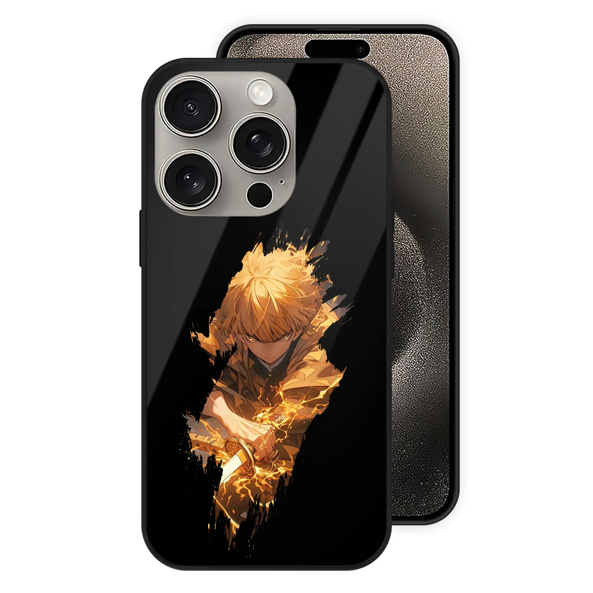 鬼滅の刃 グッズ,我妻 善逸 - IPhone15Pro対応 ・ スマホケース ・ 背面ガラス ・ TPU+強化ガラス ・ 耐衝撃 ・ 黄変防止 ・ ワイヤレス充電対応 ・ 3D立体ボタン