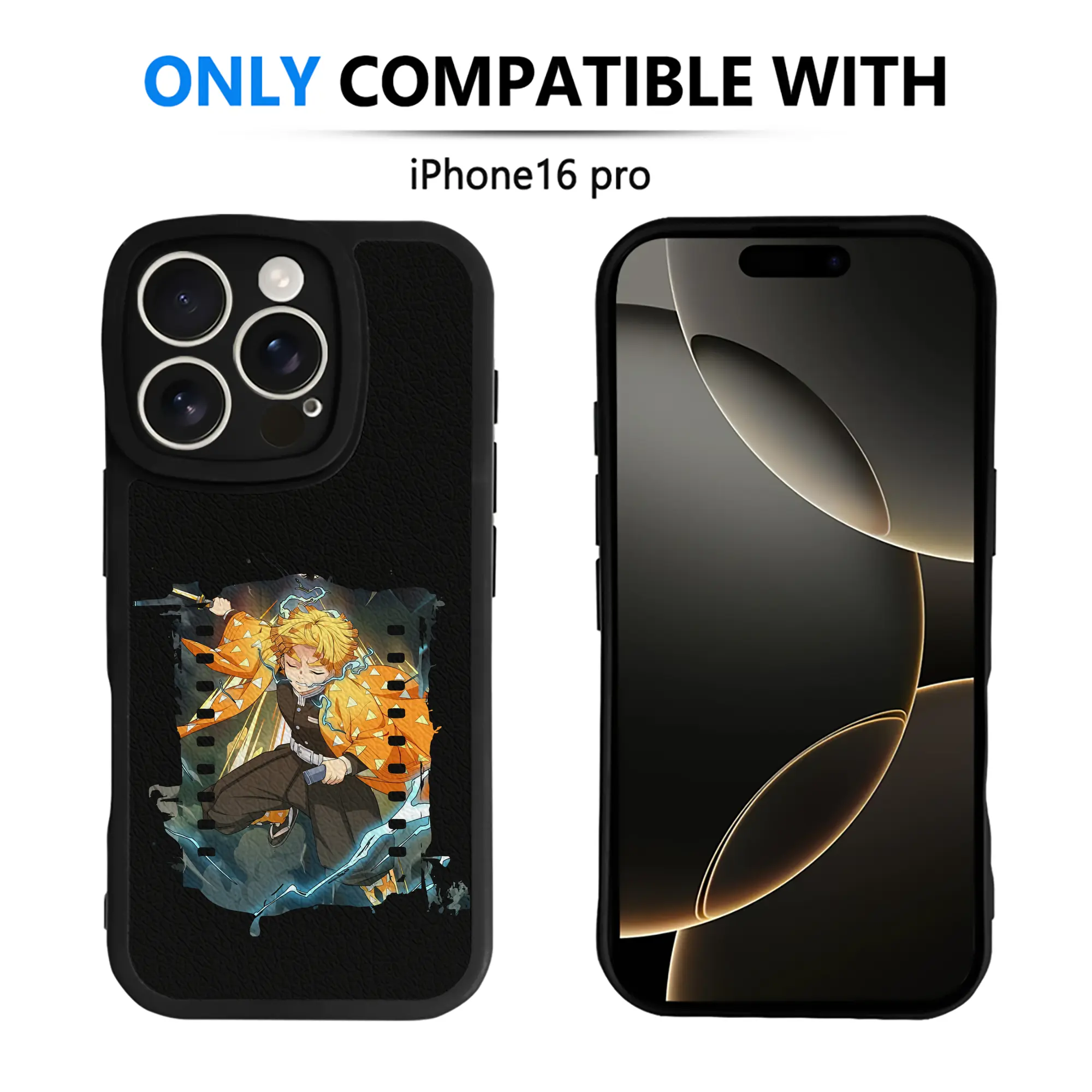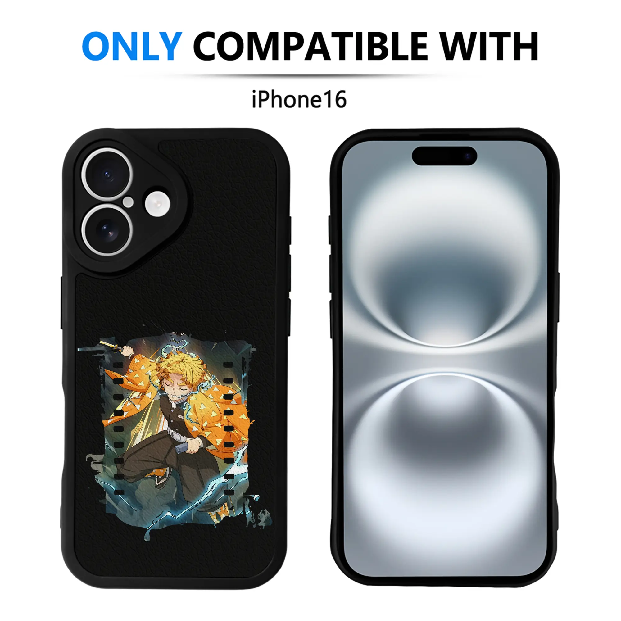 鬼滅の刃 グッズ,我妻 善逸 - IPhone 16シリーズ対応 ・ シリコンスマホケース ・ レザー調 ・ 高精度フィット ・ 耐衝撃 ・ ワイヤレス充電対応 ・ 精密カット