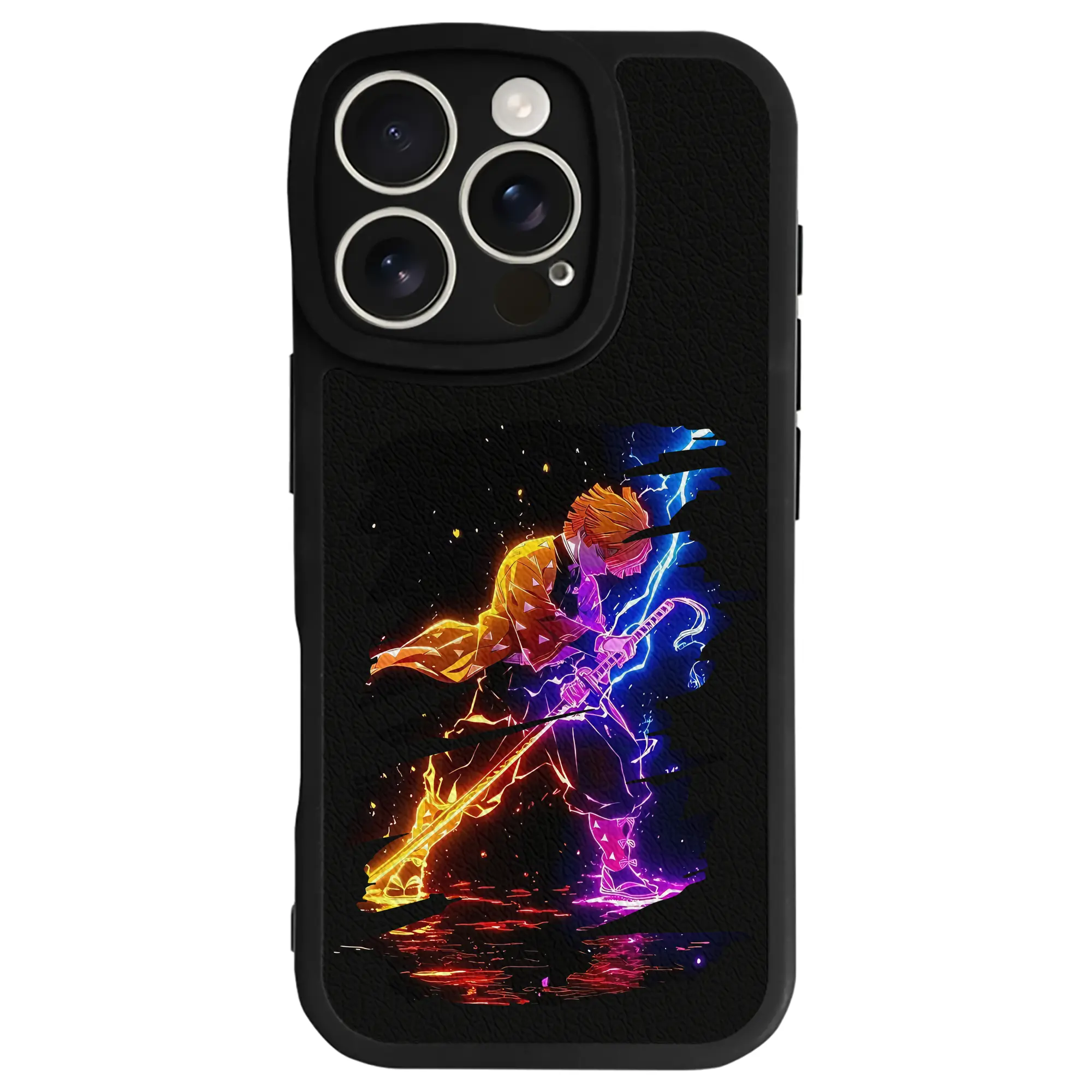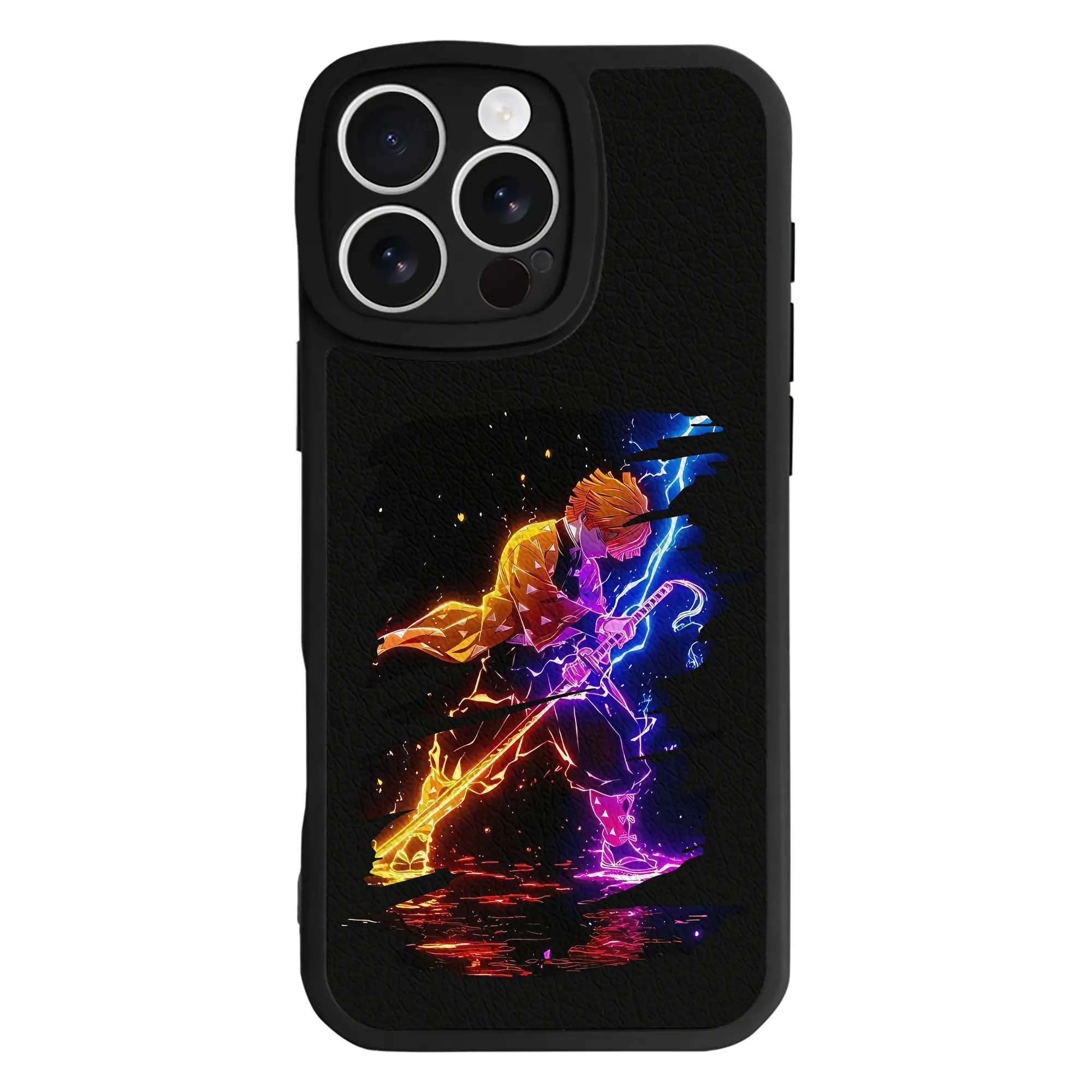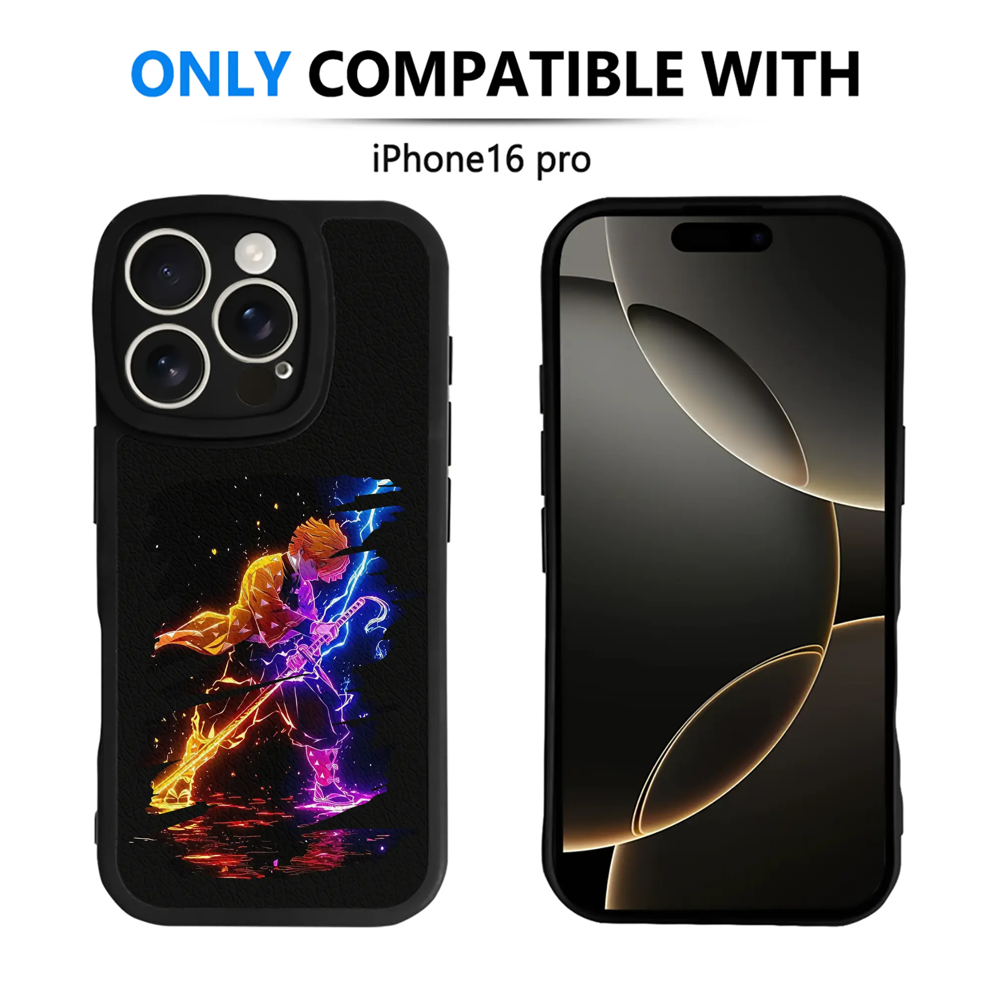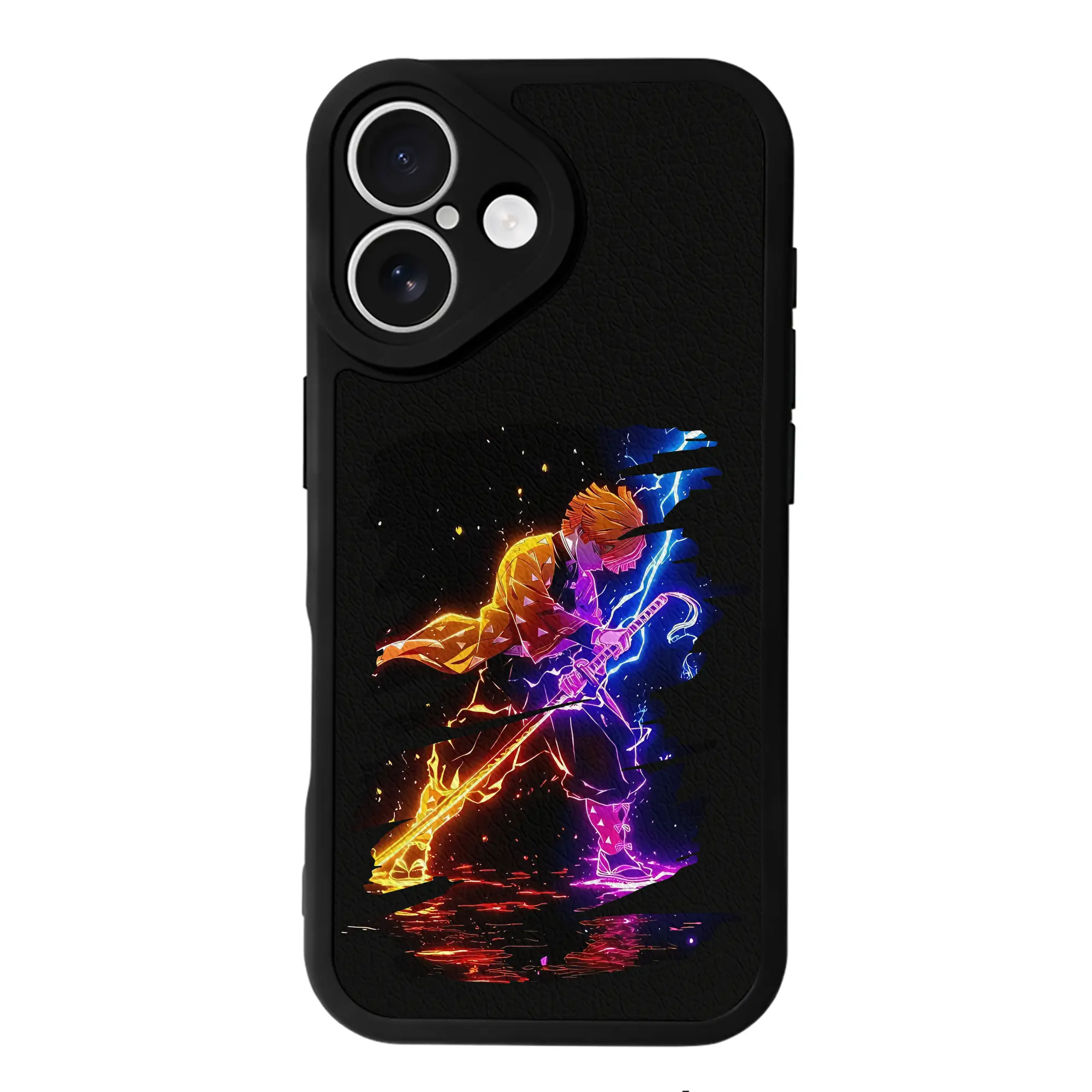 鬼滅の刃 グッズ,我妻 善逸 - IPhone 16シリーズ対応 ・ シリコンスマホケース ・ レザー調 ・ 高精度フィット ・ 耐衝撃 ・ ワイヤレス充電対応 ・ 精密カット