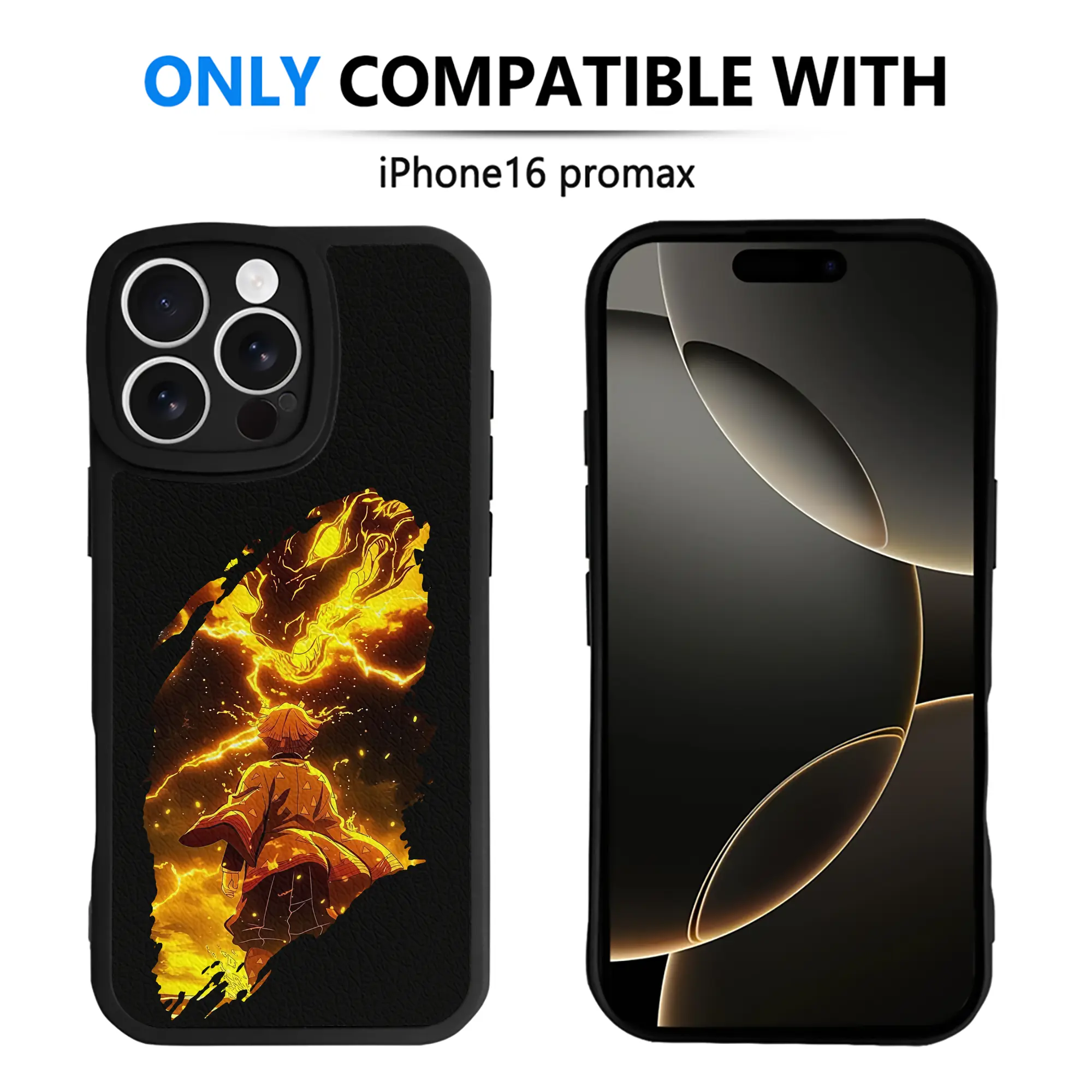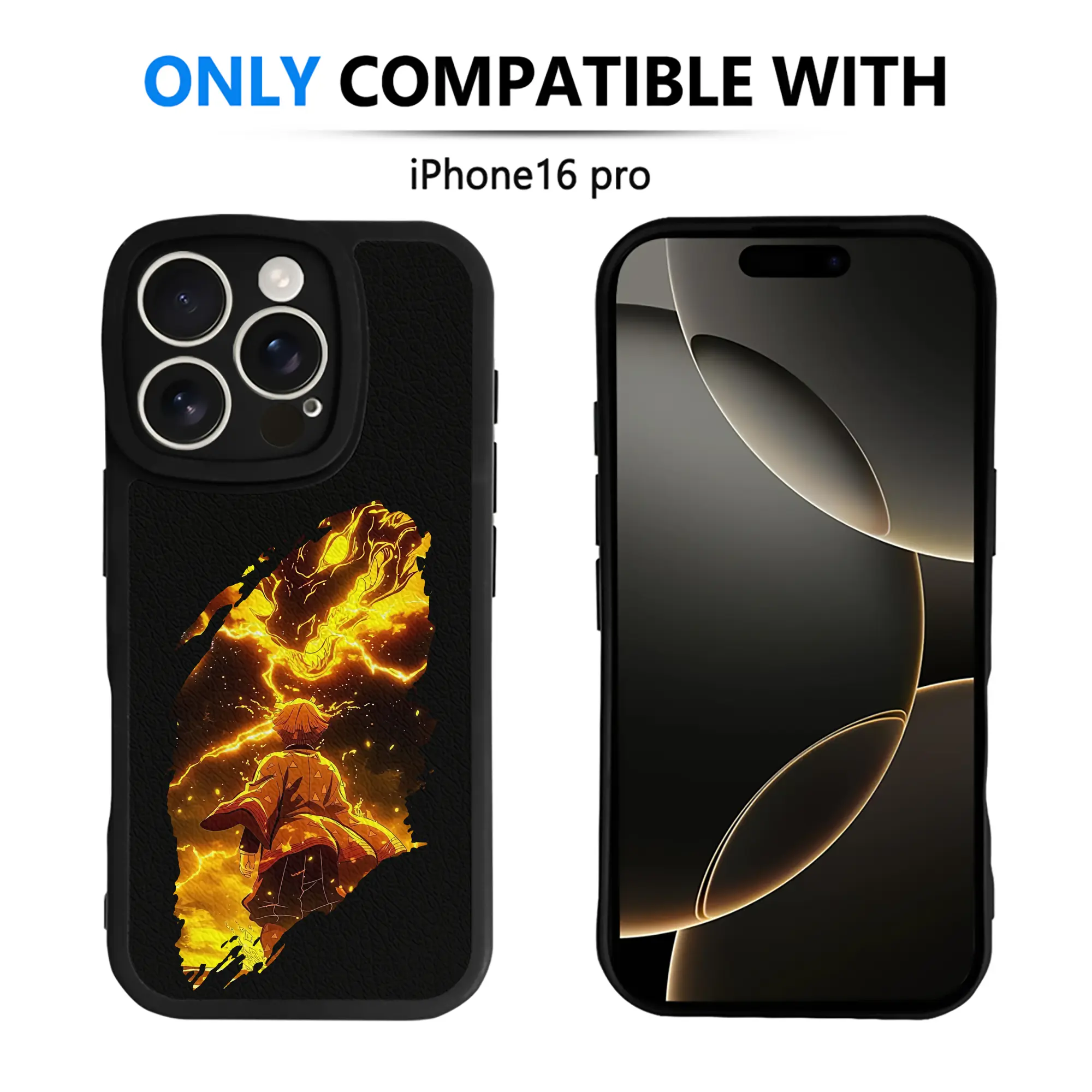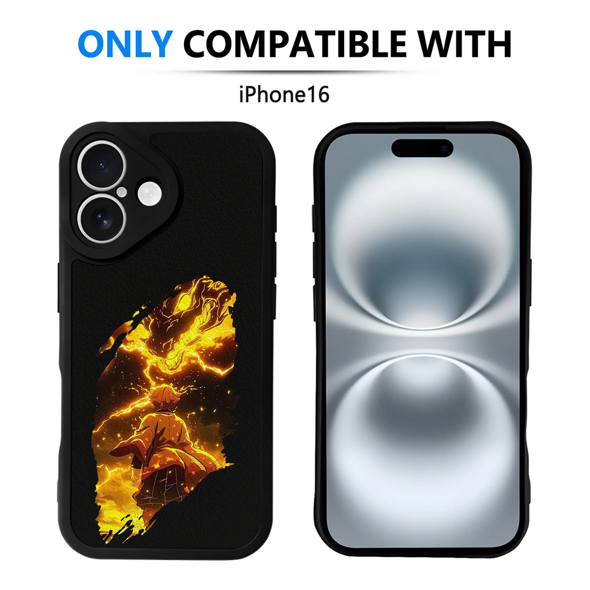 鬼滅の刃 グッズ,我妻 善逸 - IPhone 16シリーズ対応 ・ シリコンスマホケース ・ レザー調 ・ 高精度フィット ・ 耐衝撃 ・ ワイヤレス充電対応 ・ 精密カット