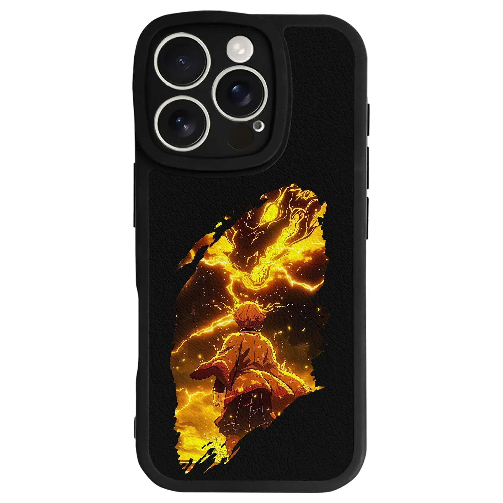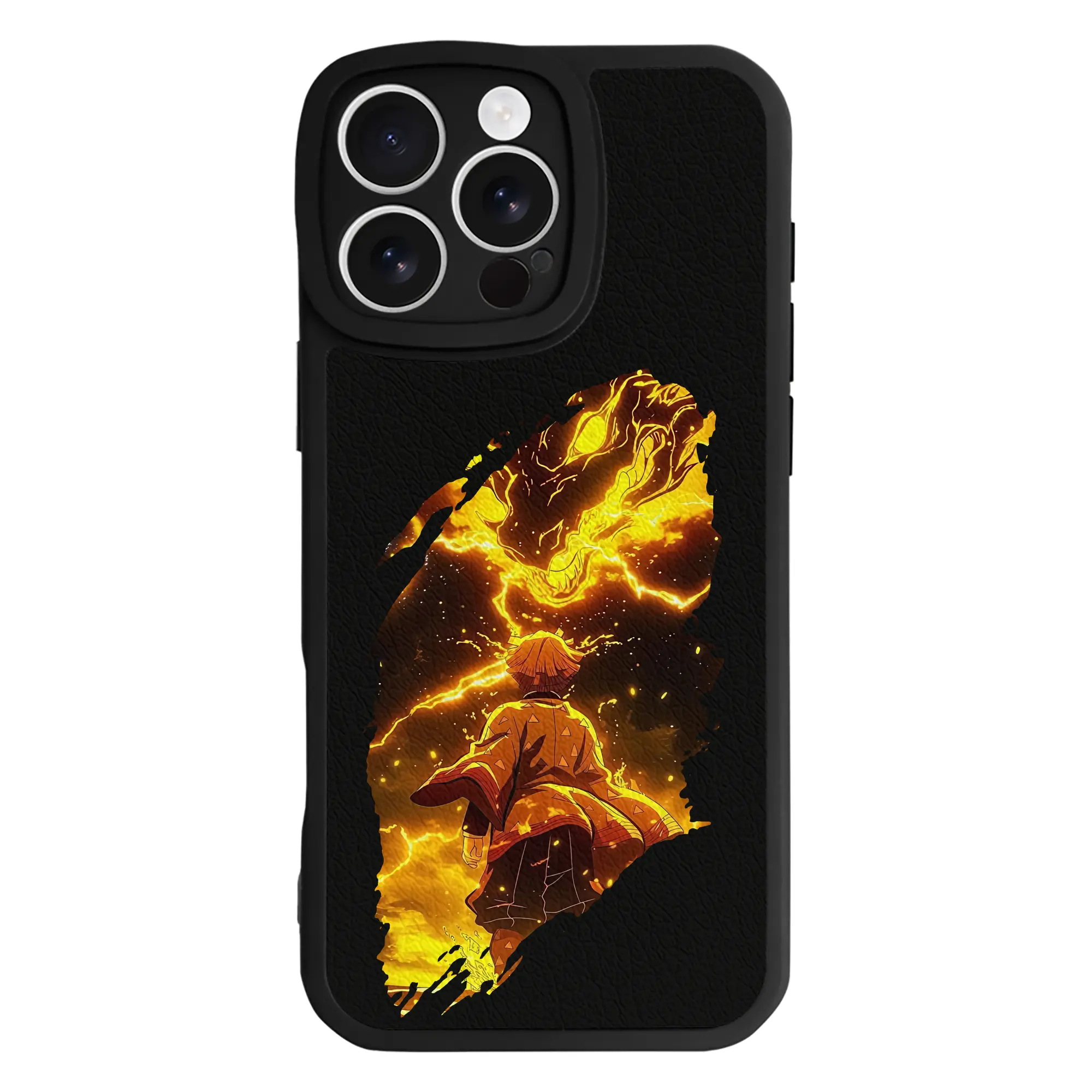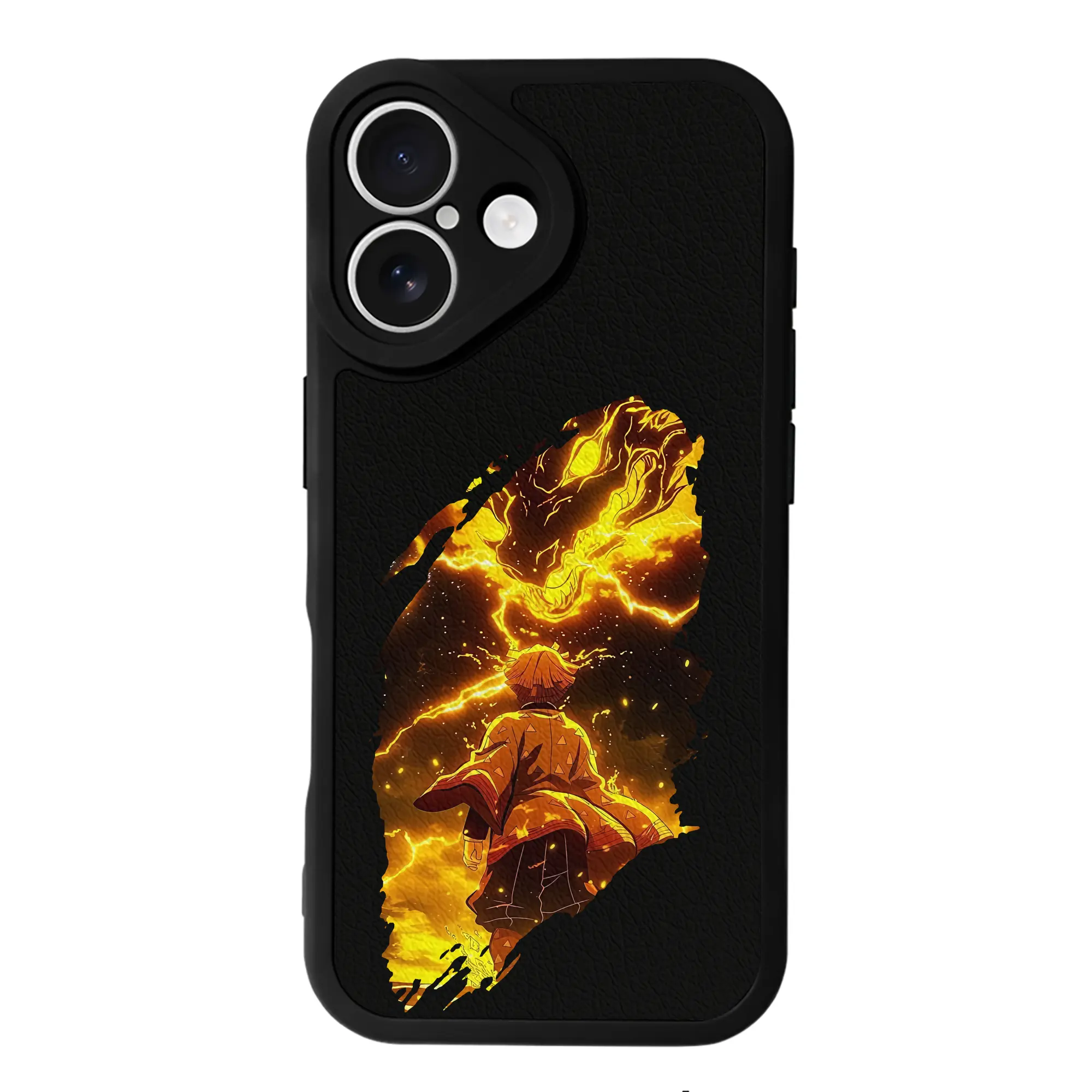 鬼滅の刃 グッズ,我妻 善逸 - IPhone 16シリーズ対応 ・ シリコンスマホケース ・ レザー調 ・ 高精度フィット ・ 耐衝撃 ・ ワイヤレス充電対応 ・ 精密カット