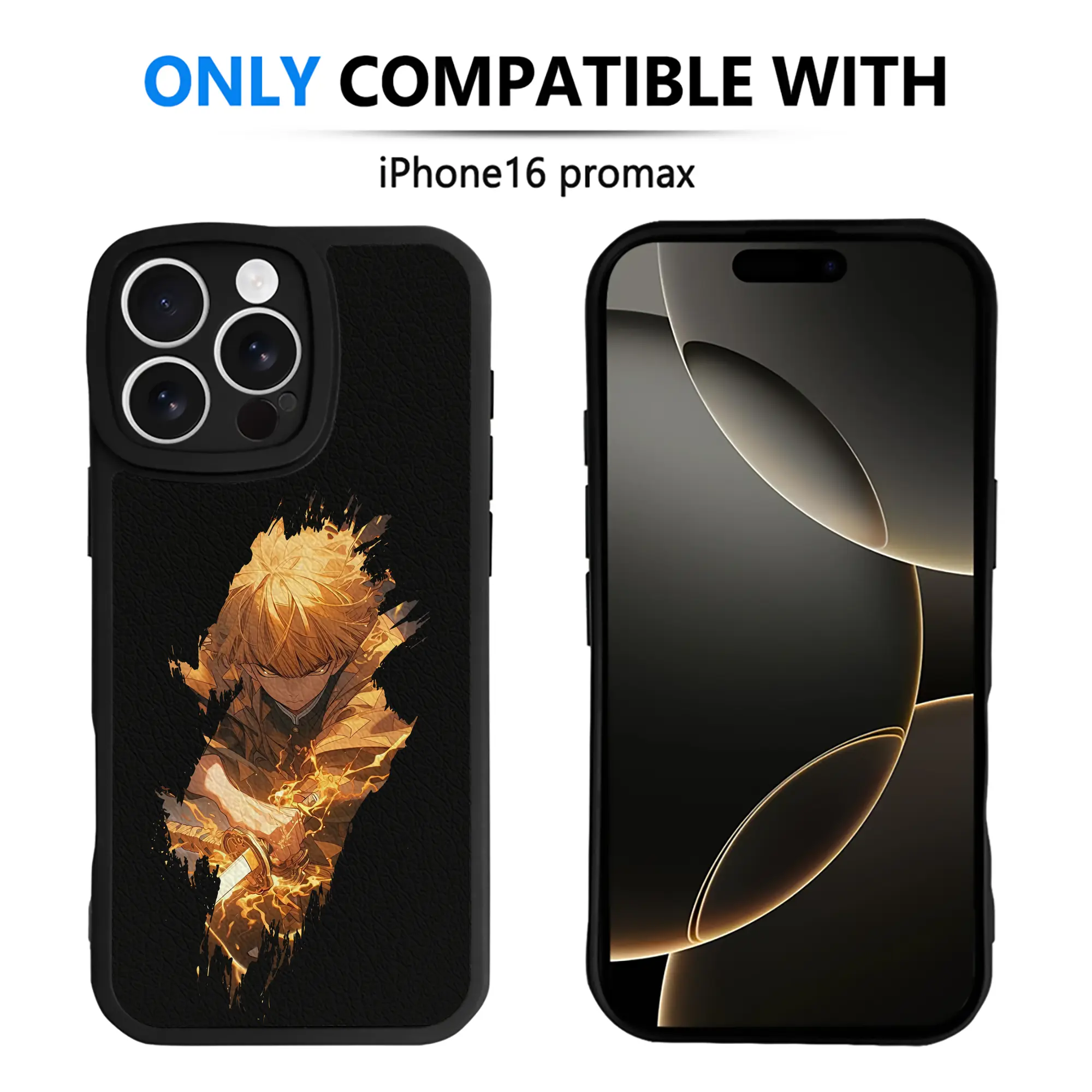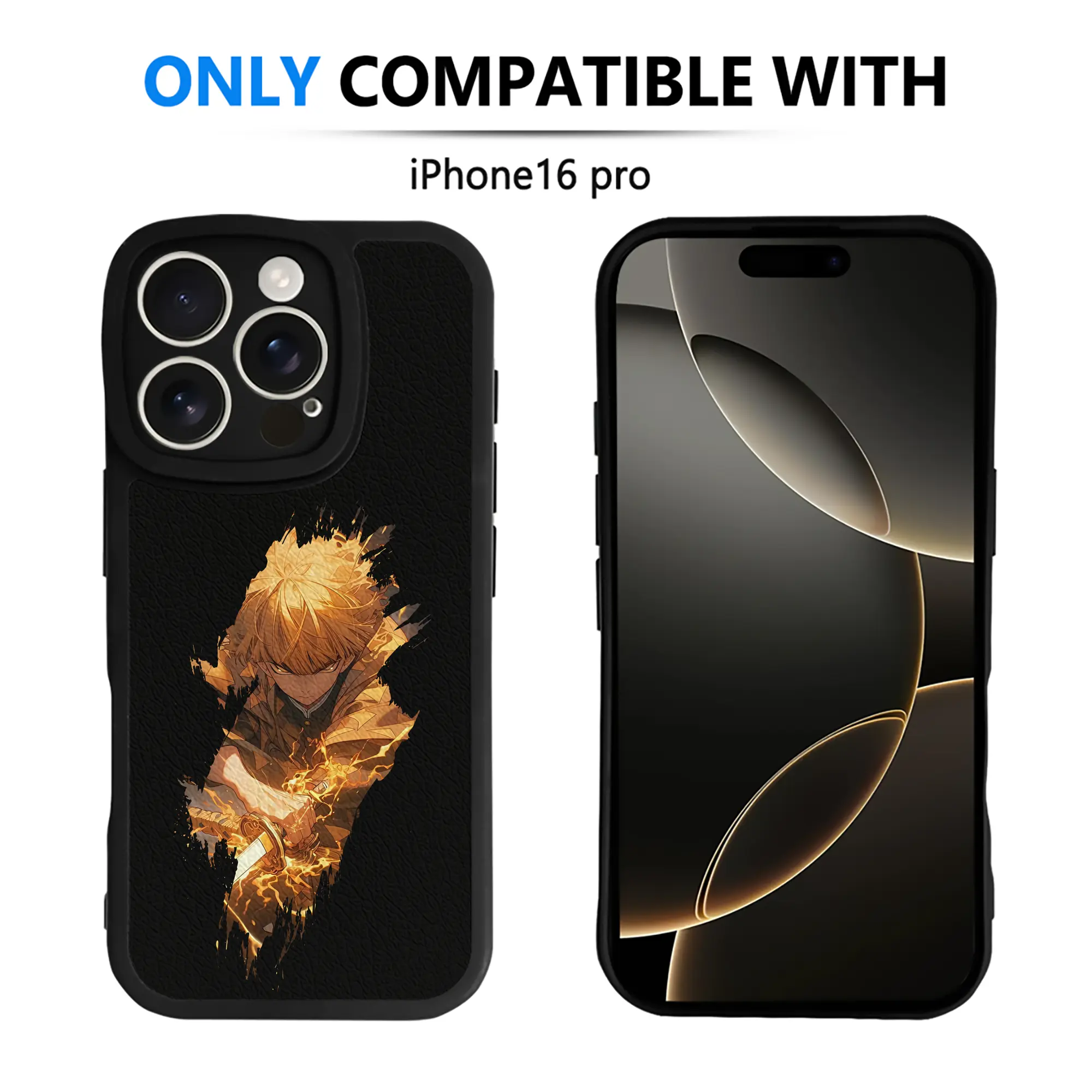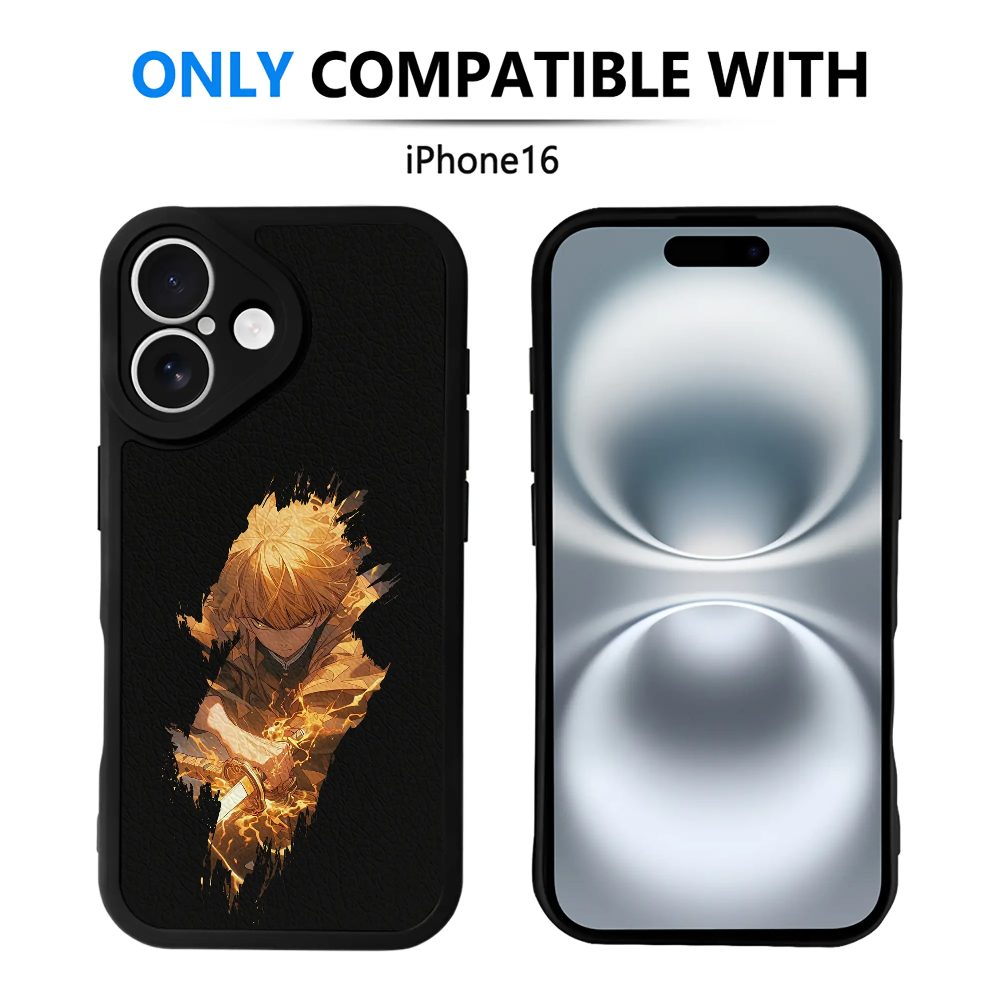 鬼滅の刃 グッズ,我妻 善逸 - IPhone 16シリーズ対応 ・ シリコンスマホケース ・ レザー調 ・ 高精度フィット ・ 耐衝撃 ・ ワイヤレス充電対応 ・ 精密カット
